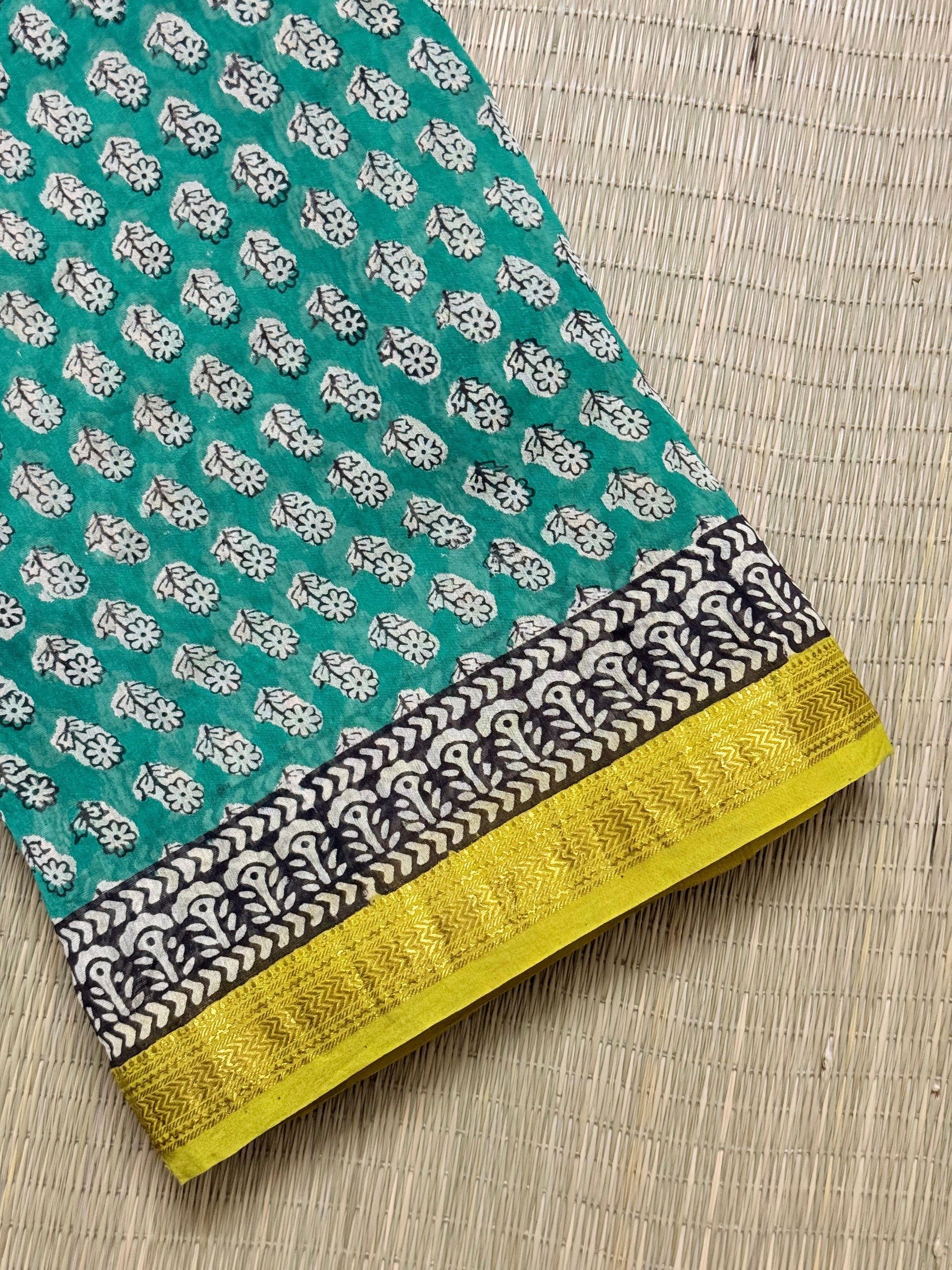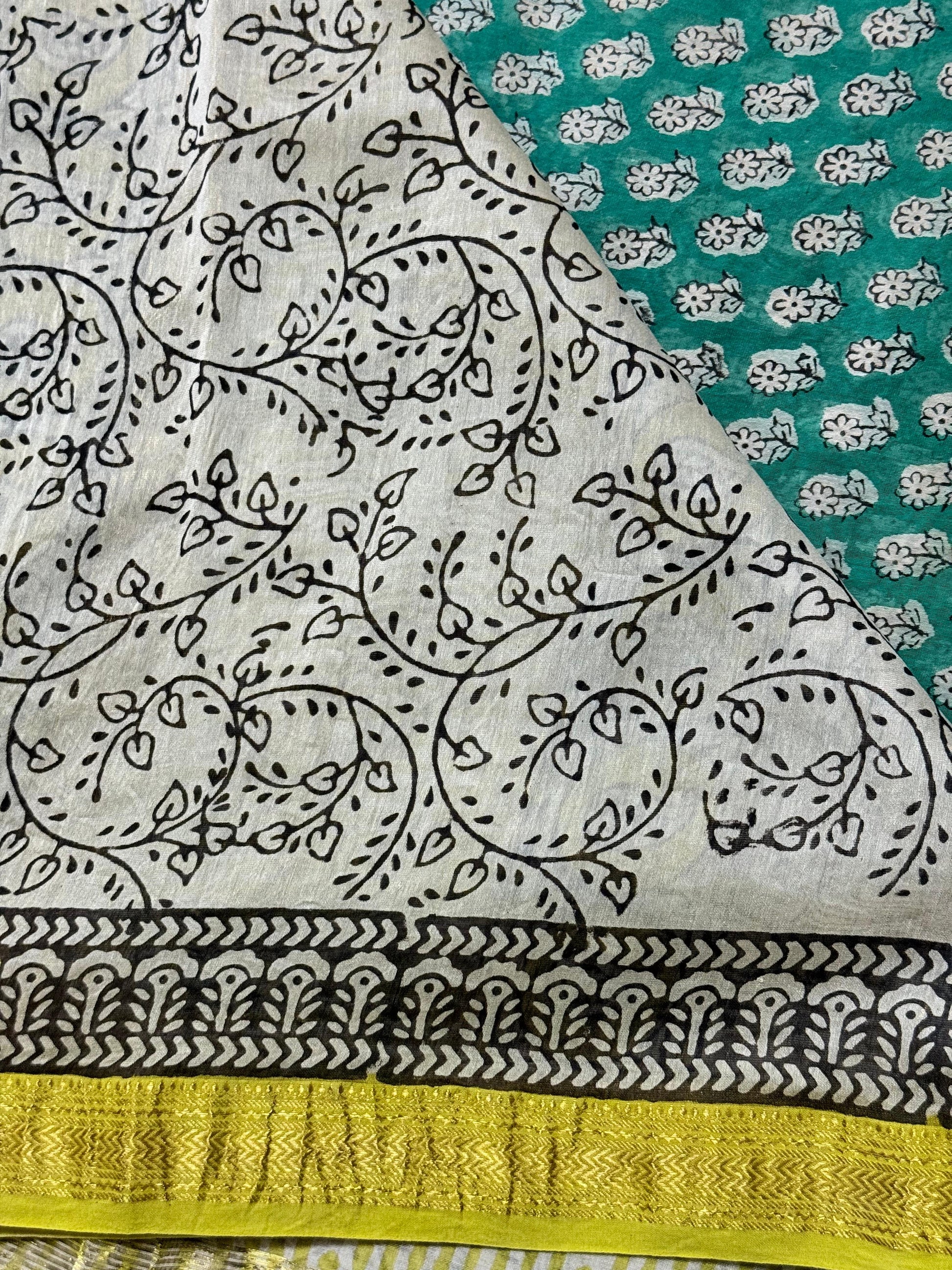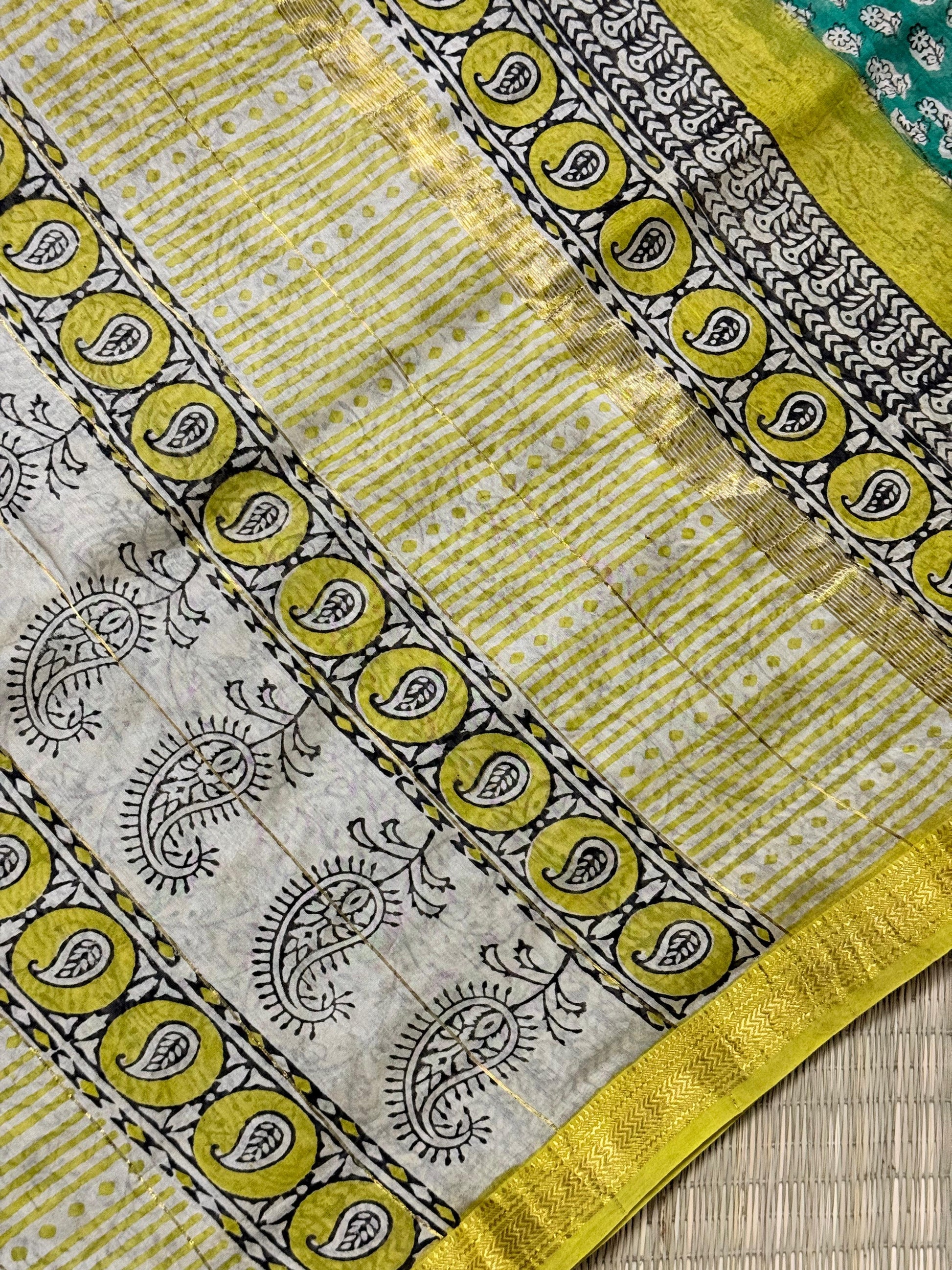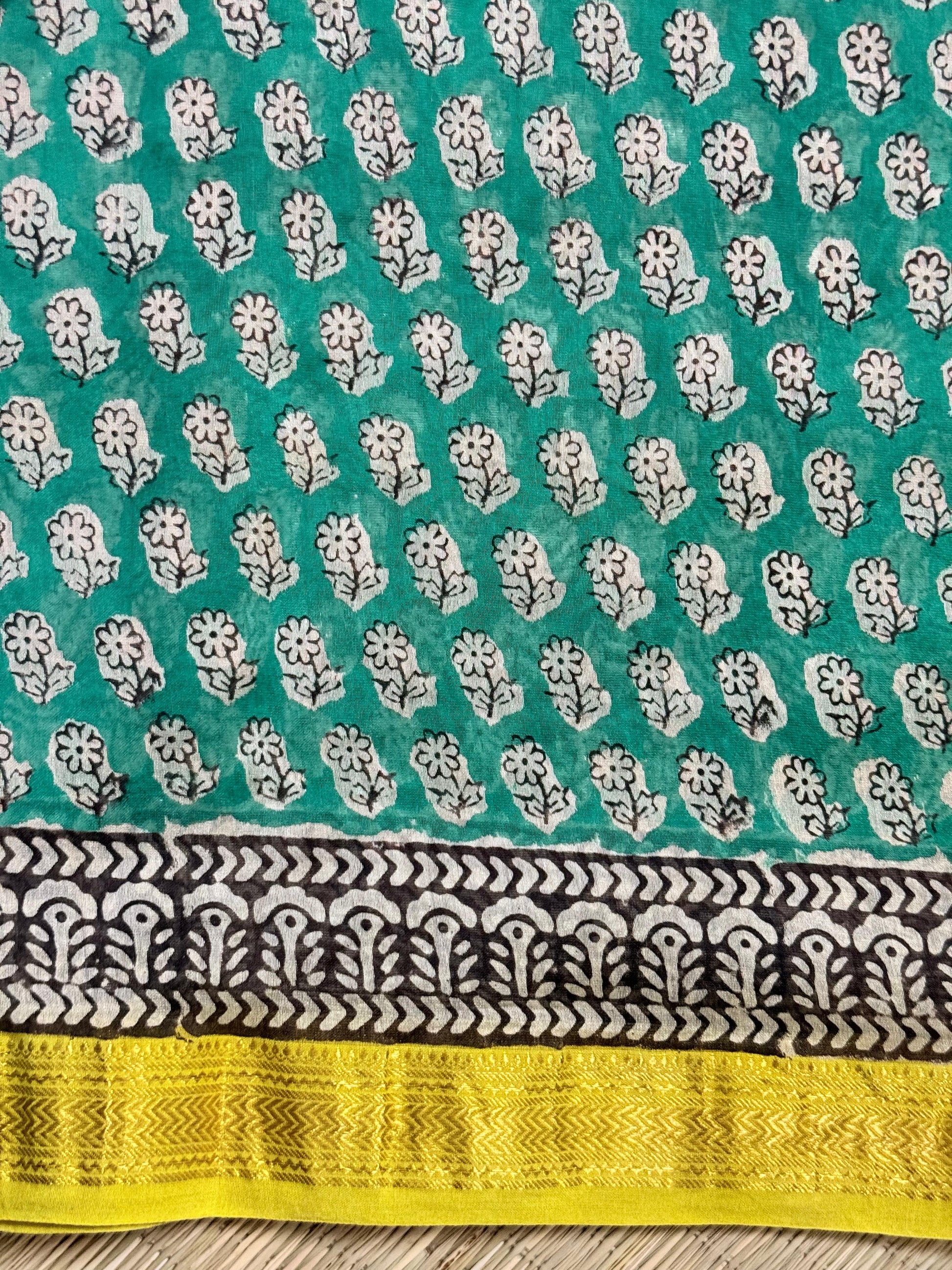 Margazhi | Green and Yellow Block Printed Maheshwari Saree