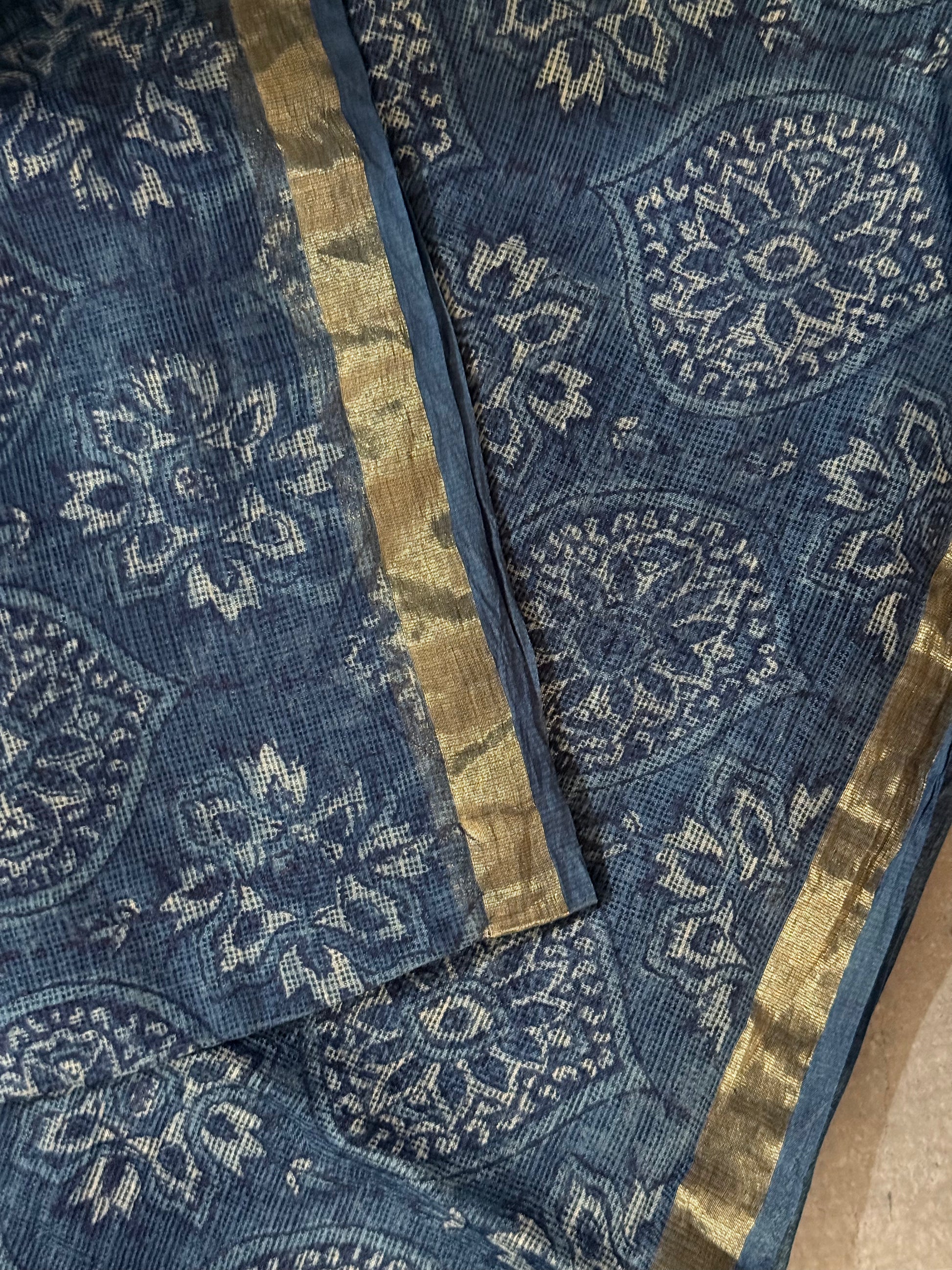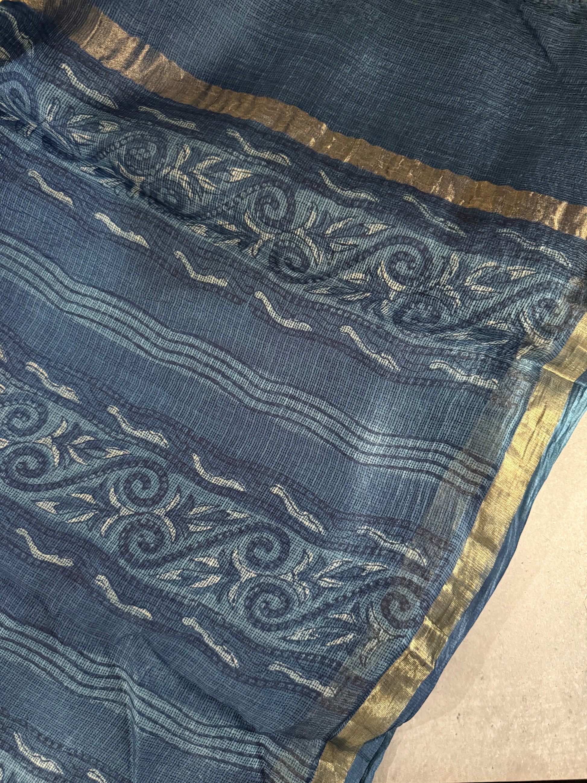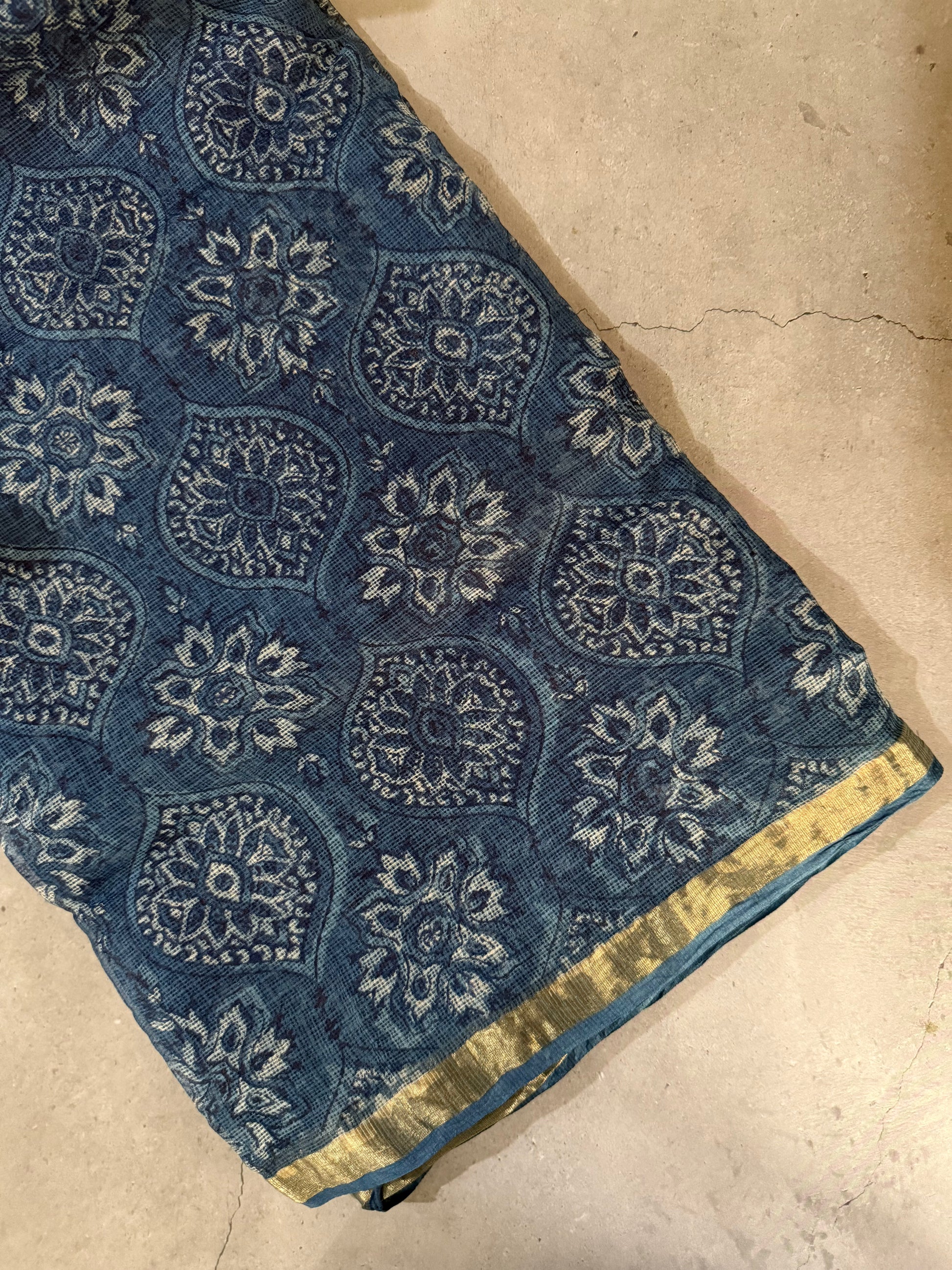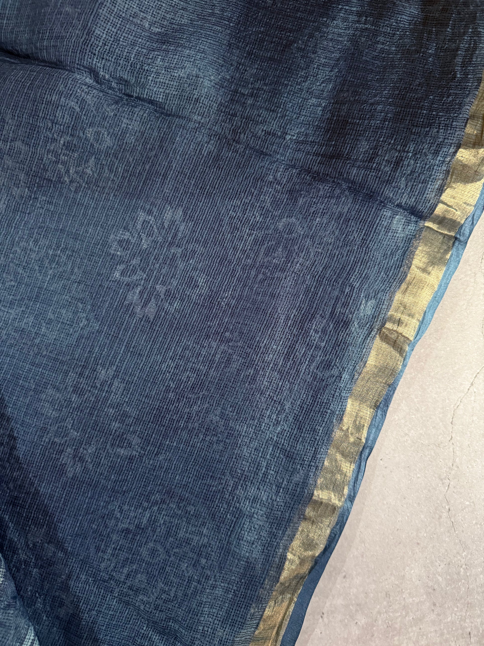 Meghavarna | Indigo Block Printed Kota Silk Saree