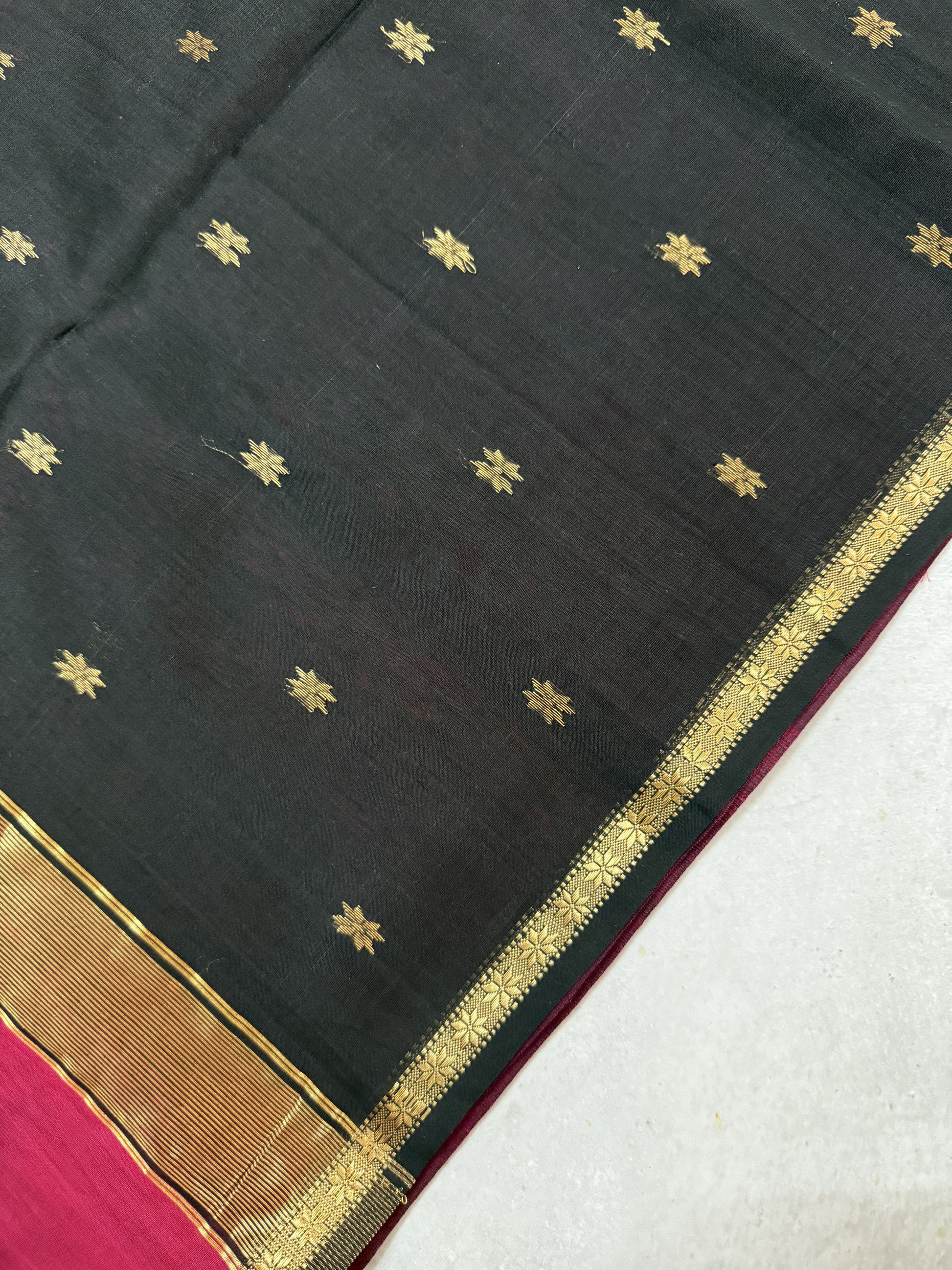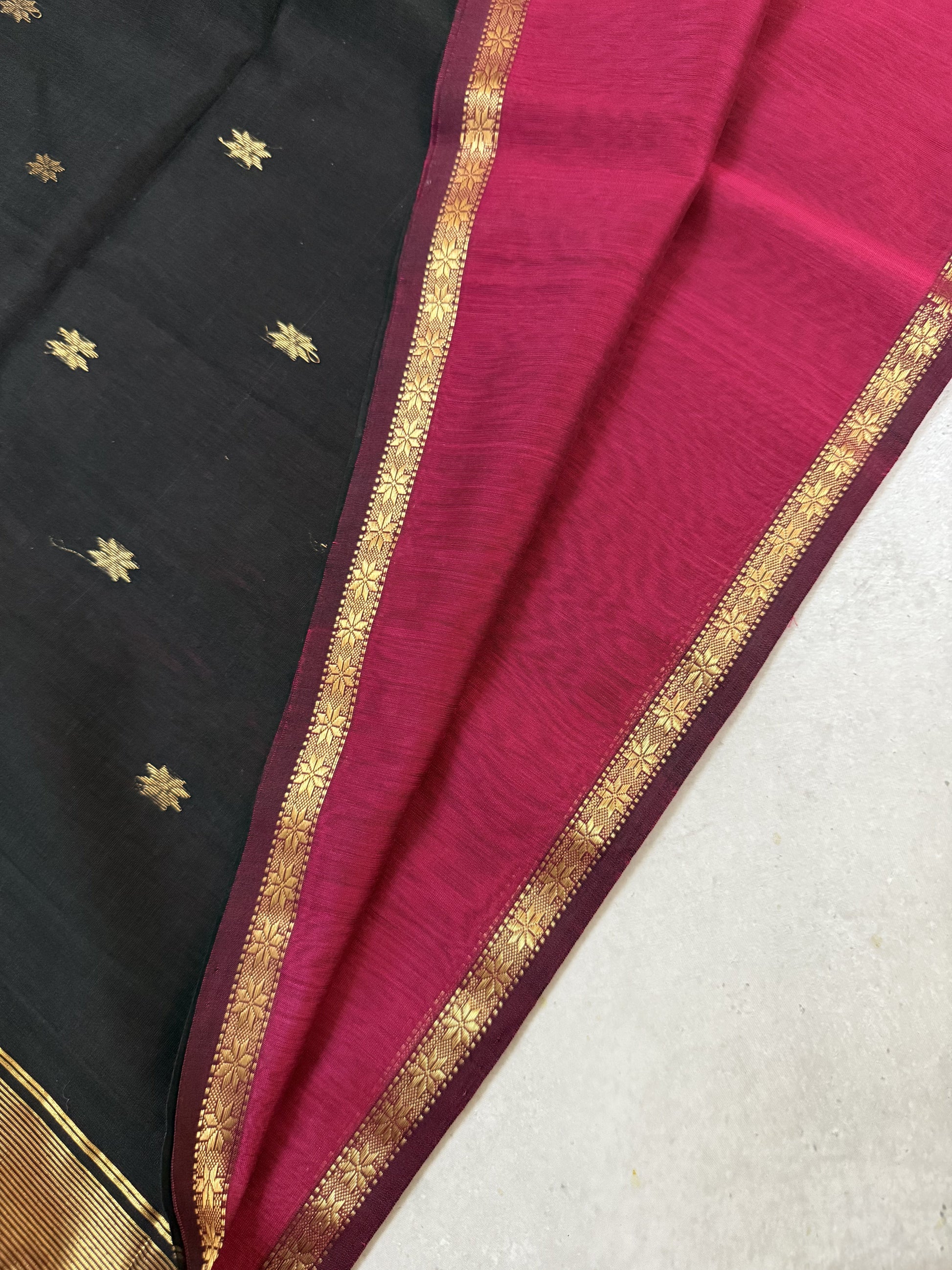 Menaka | Pink And Black Maheshwari Silk Cotton Saree