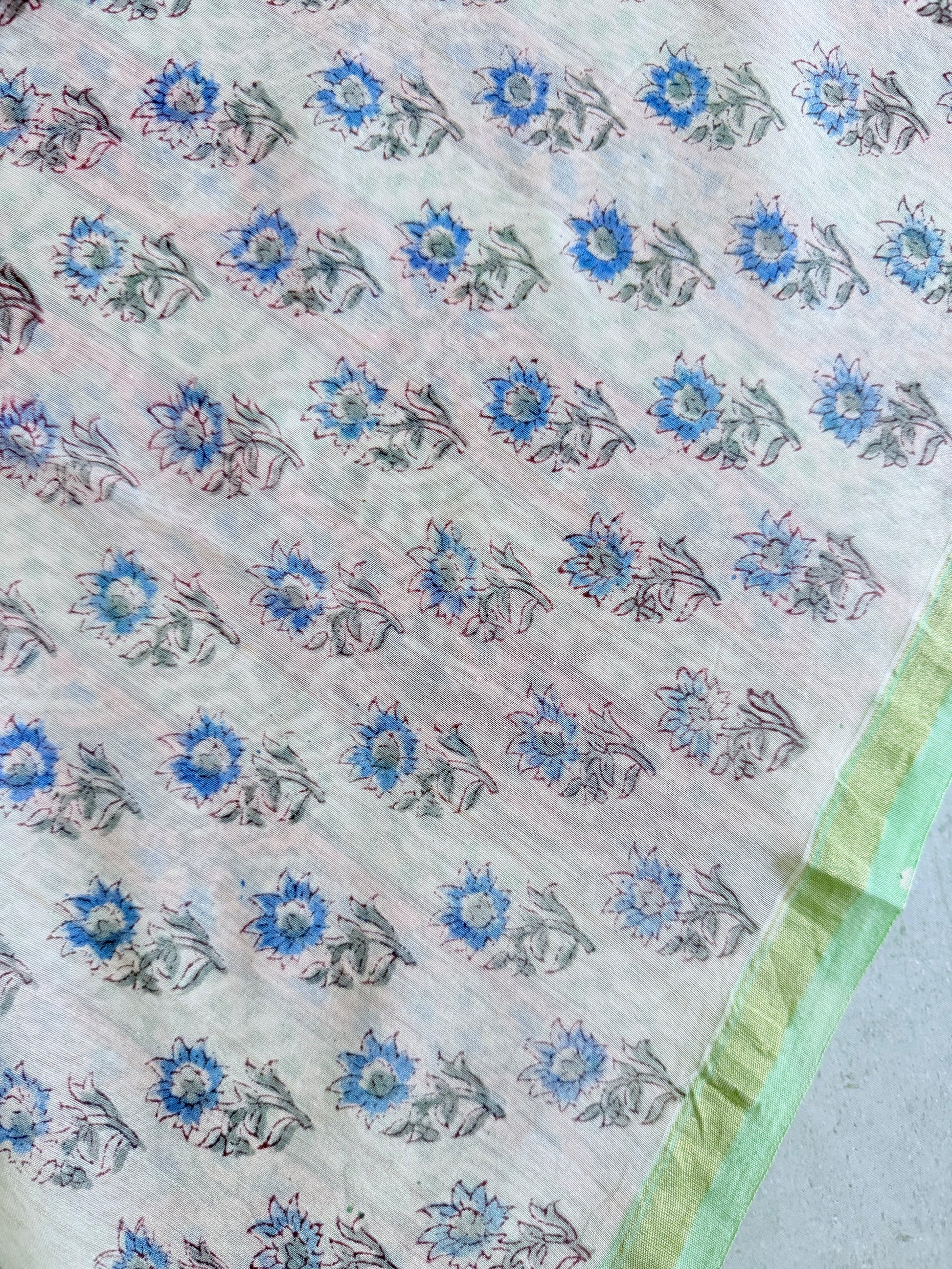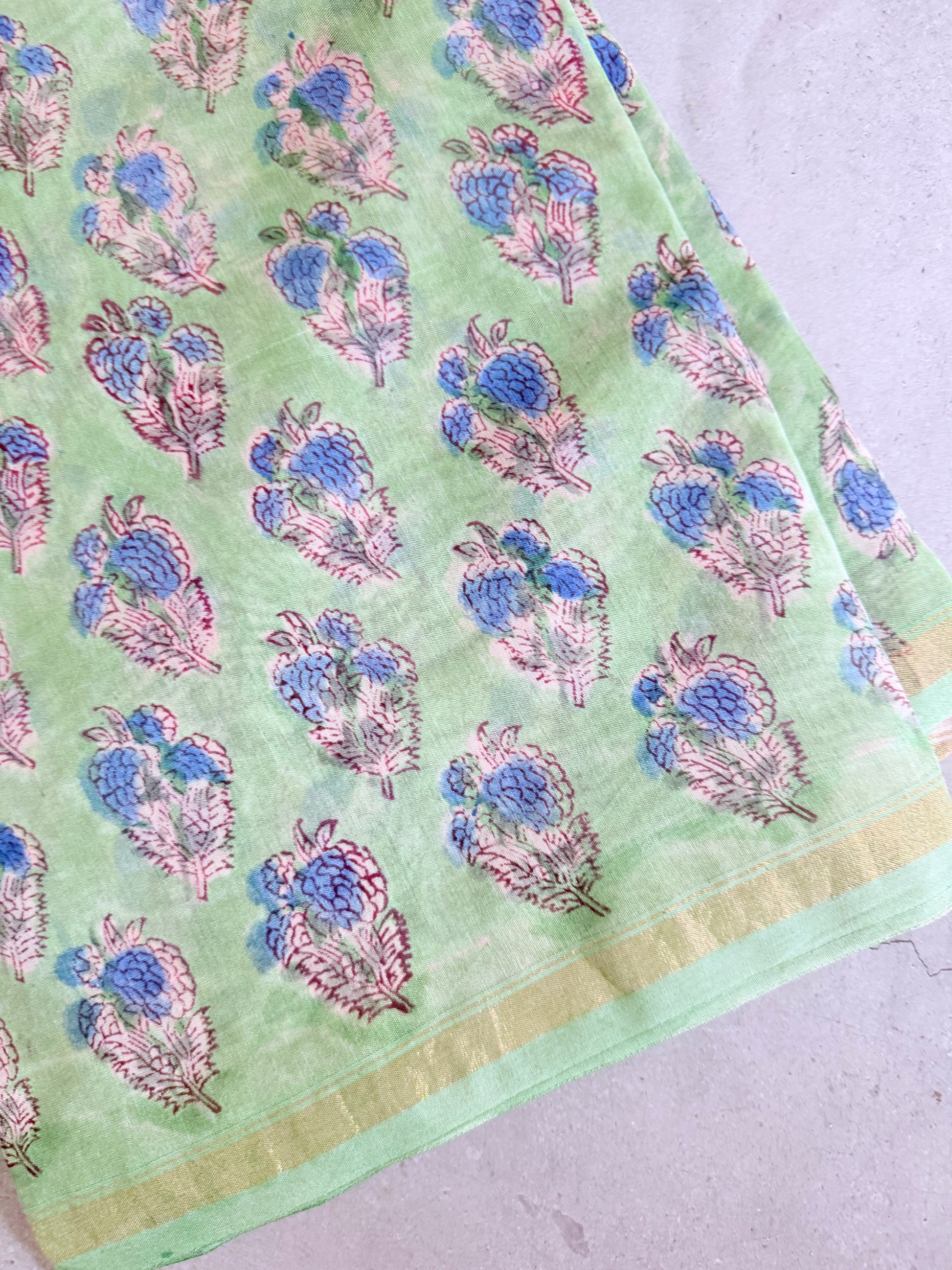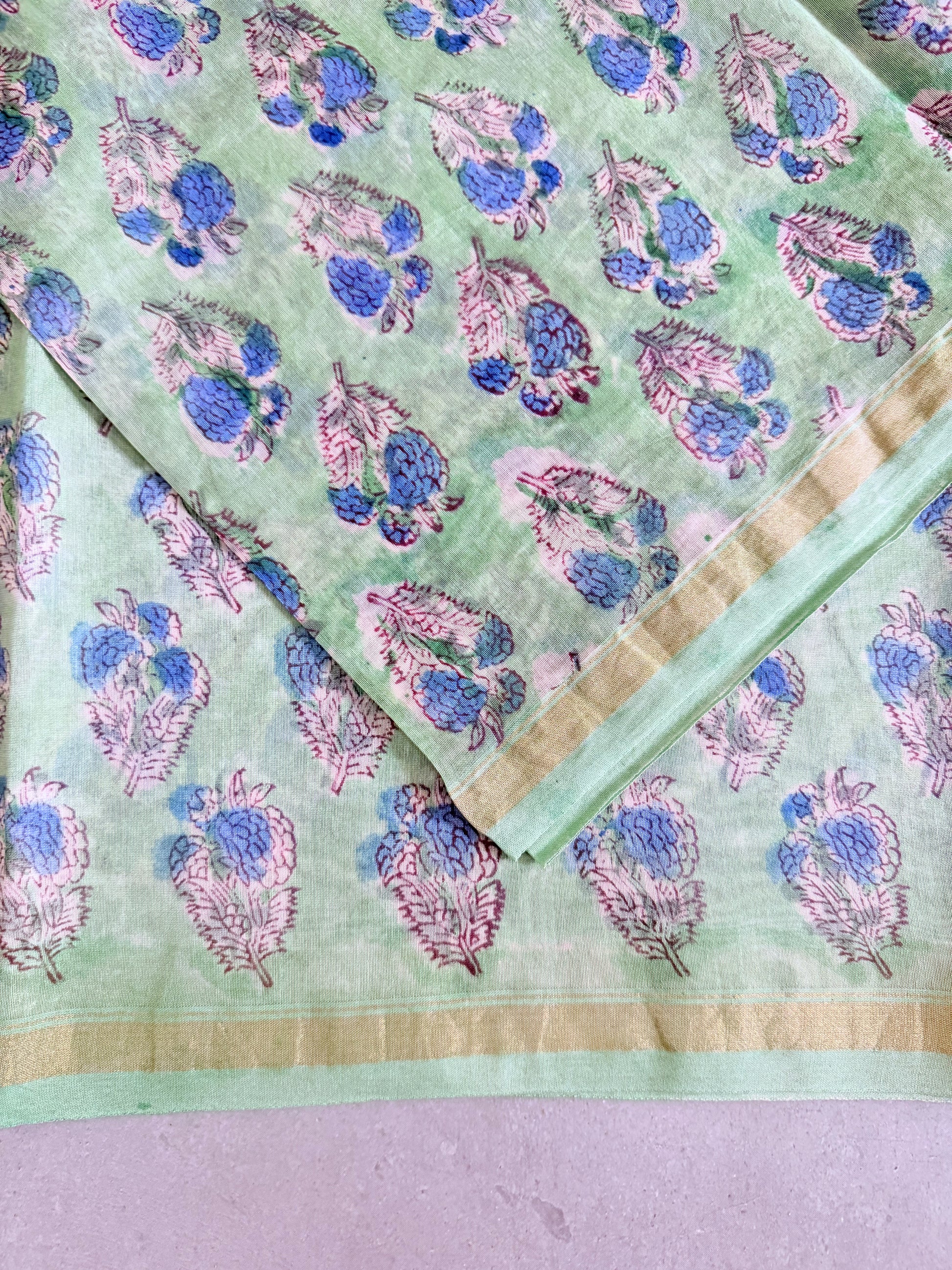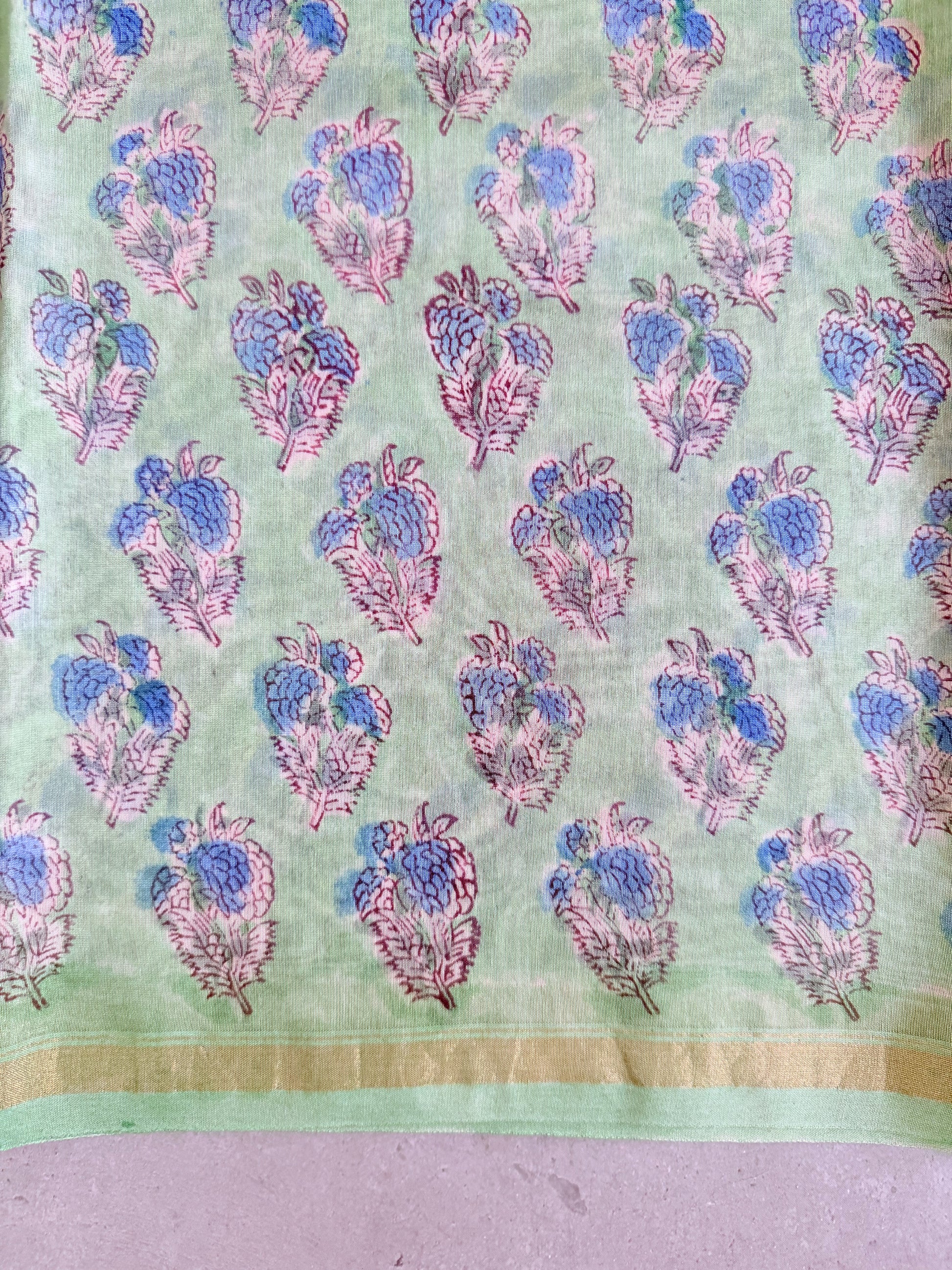 Mogra | Pastle Green Floral Block Printed Chanderi Saree