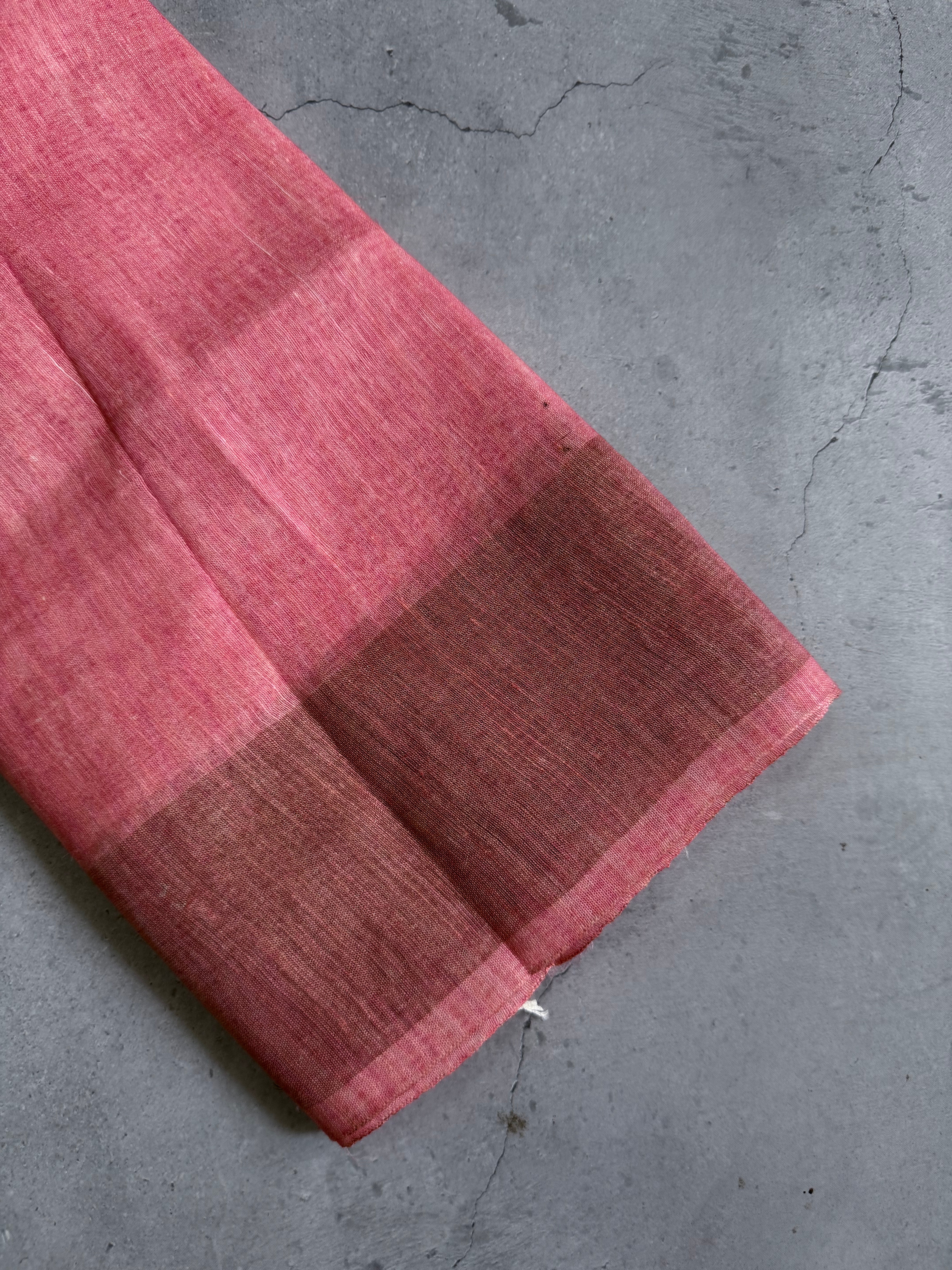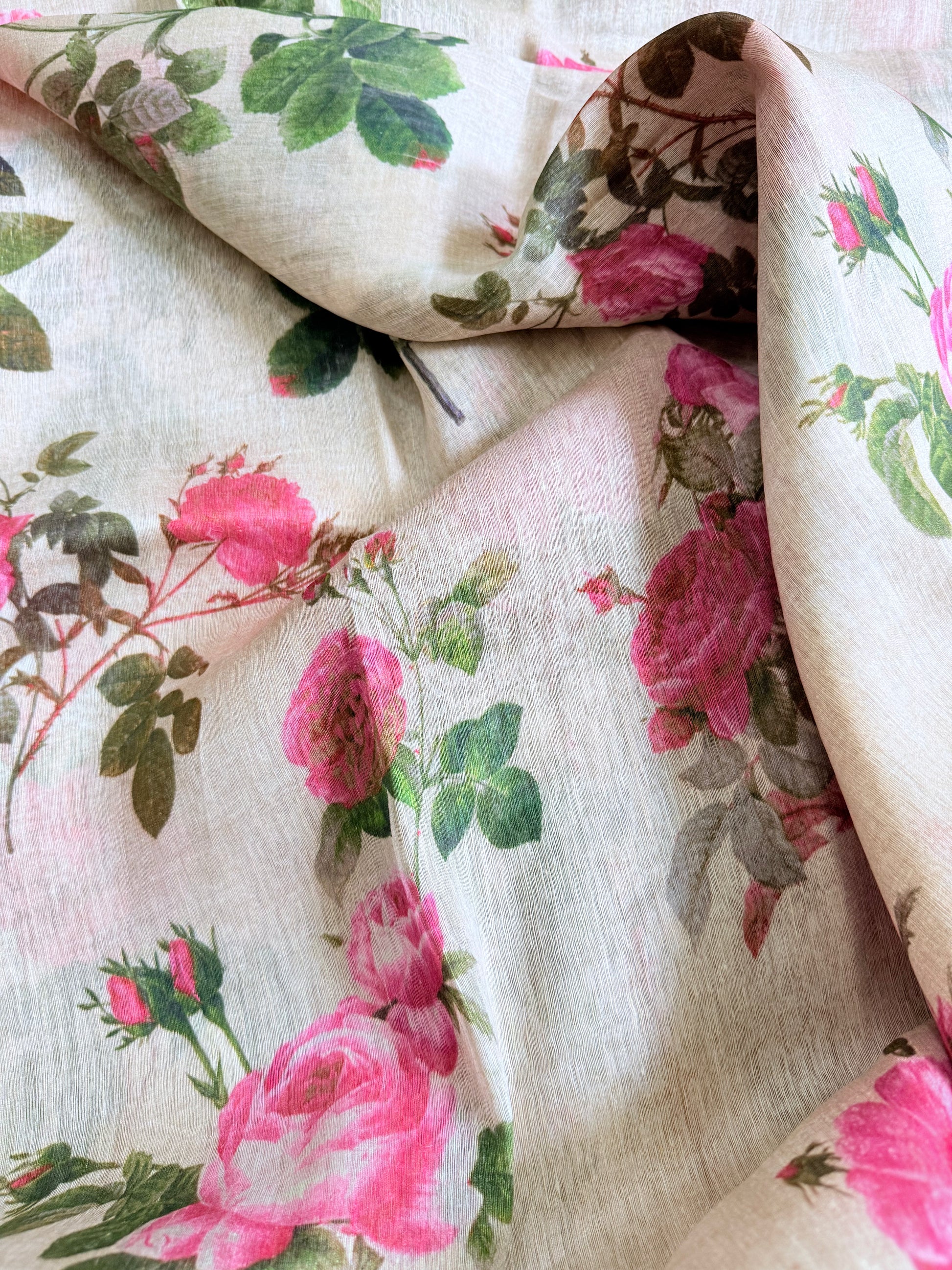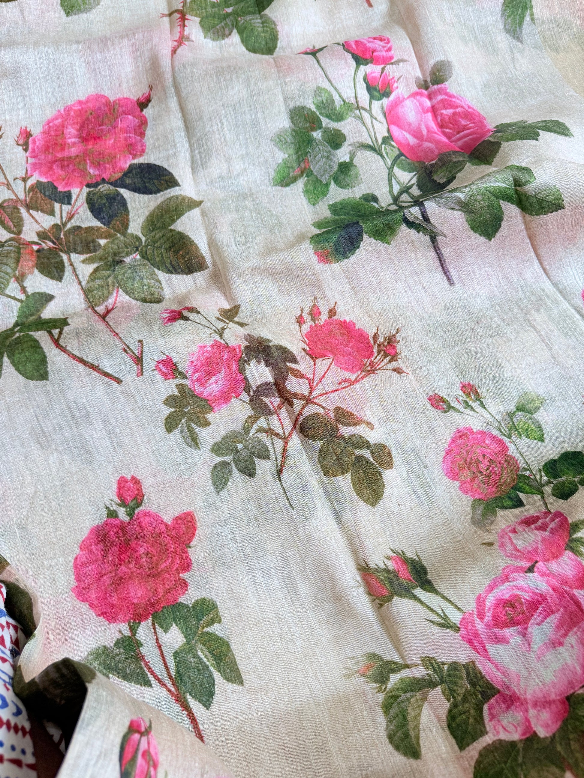 Mridula | Beige and Pink Floral Printed Linen Silk Saree