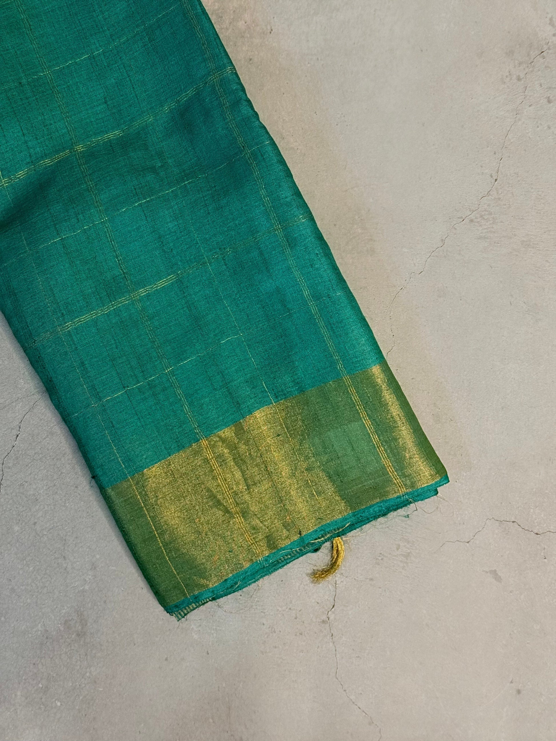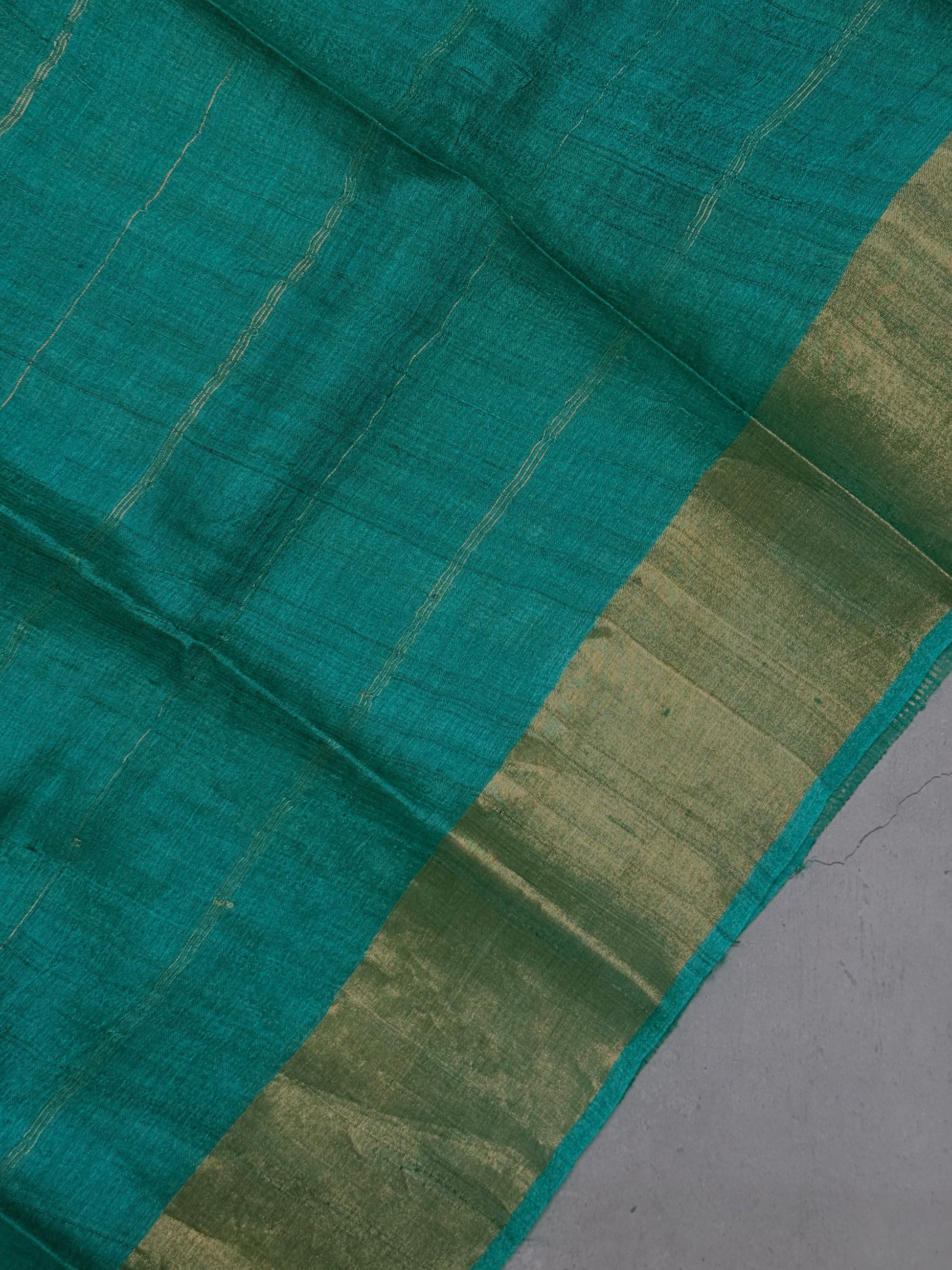 Handcrafted by skilled artisans using the finest quality Tussar silk, the saree boasts a rich texture and a gentle natural sheen. Its golden undertones, traditional motifs, and intricate borders speak of legacy and refined taste. Whether you're attending a wedding or marking a moment that matters, this drape offers unmatched elegance and a deeply rooted connection to India’s handloom tradition.