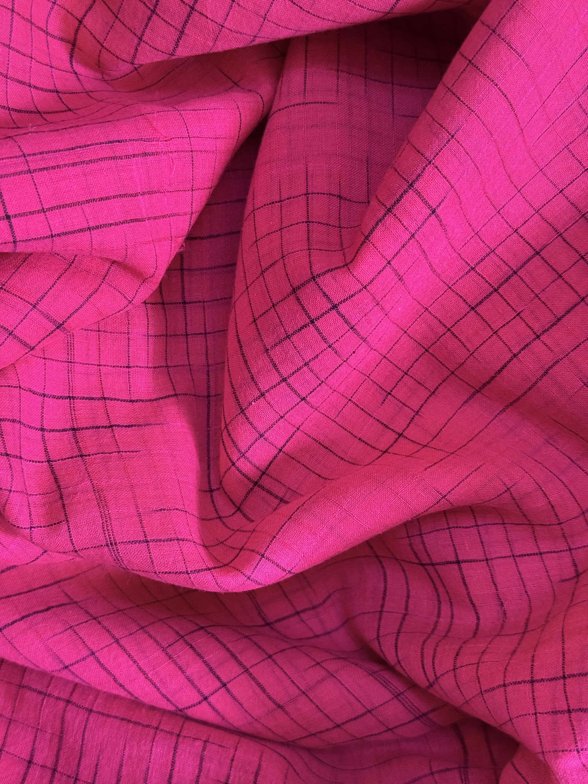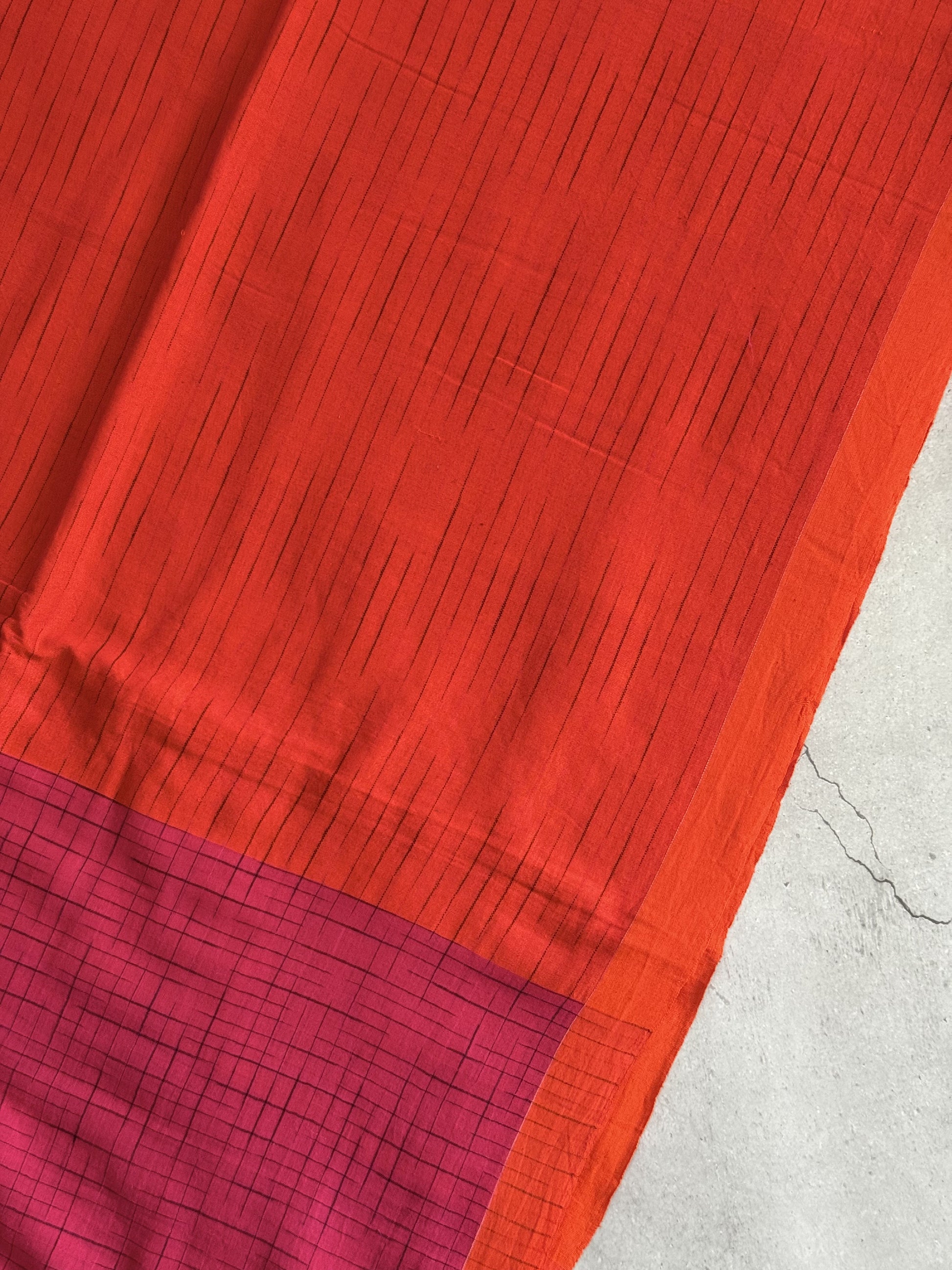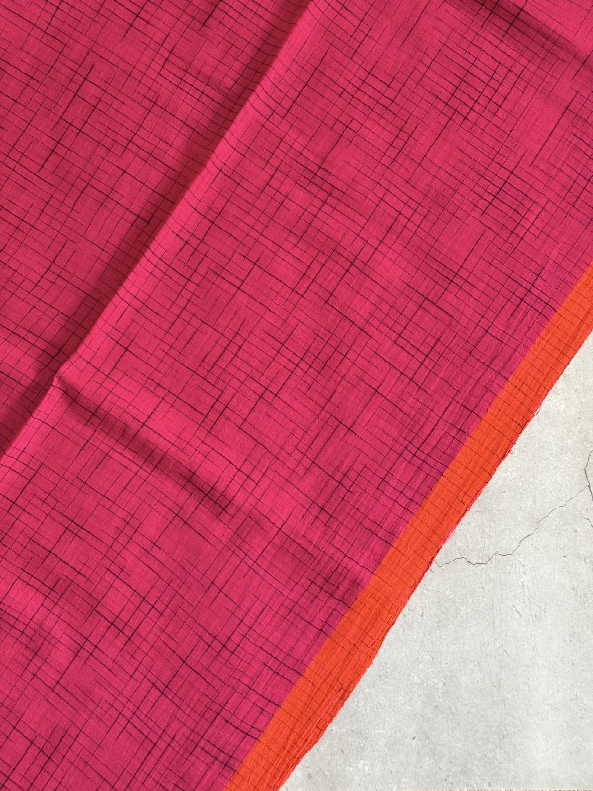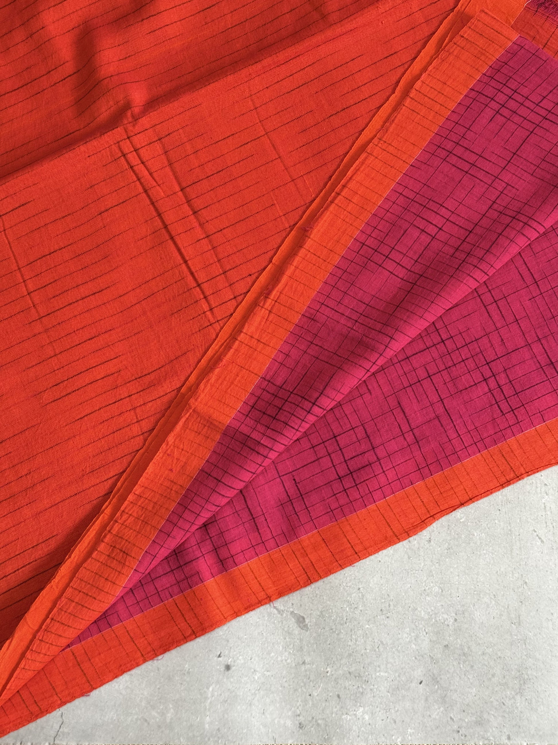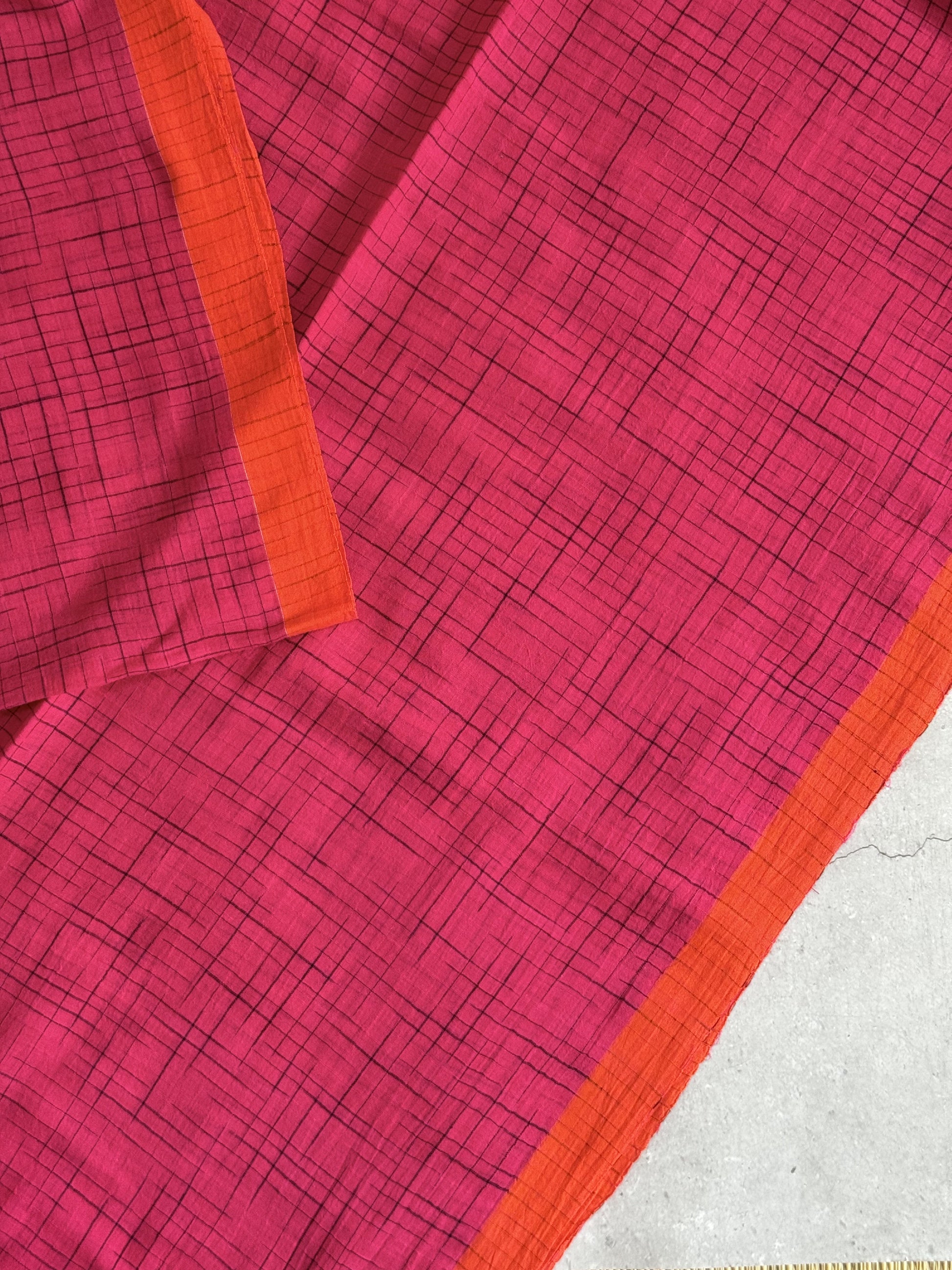 Mrinalini | Pink and Orange Broken Checks Bengal Cotton Saree