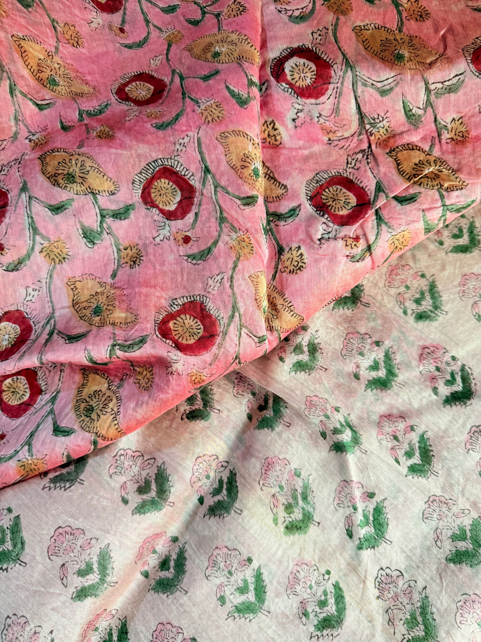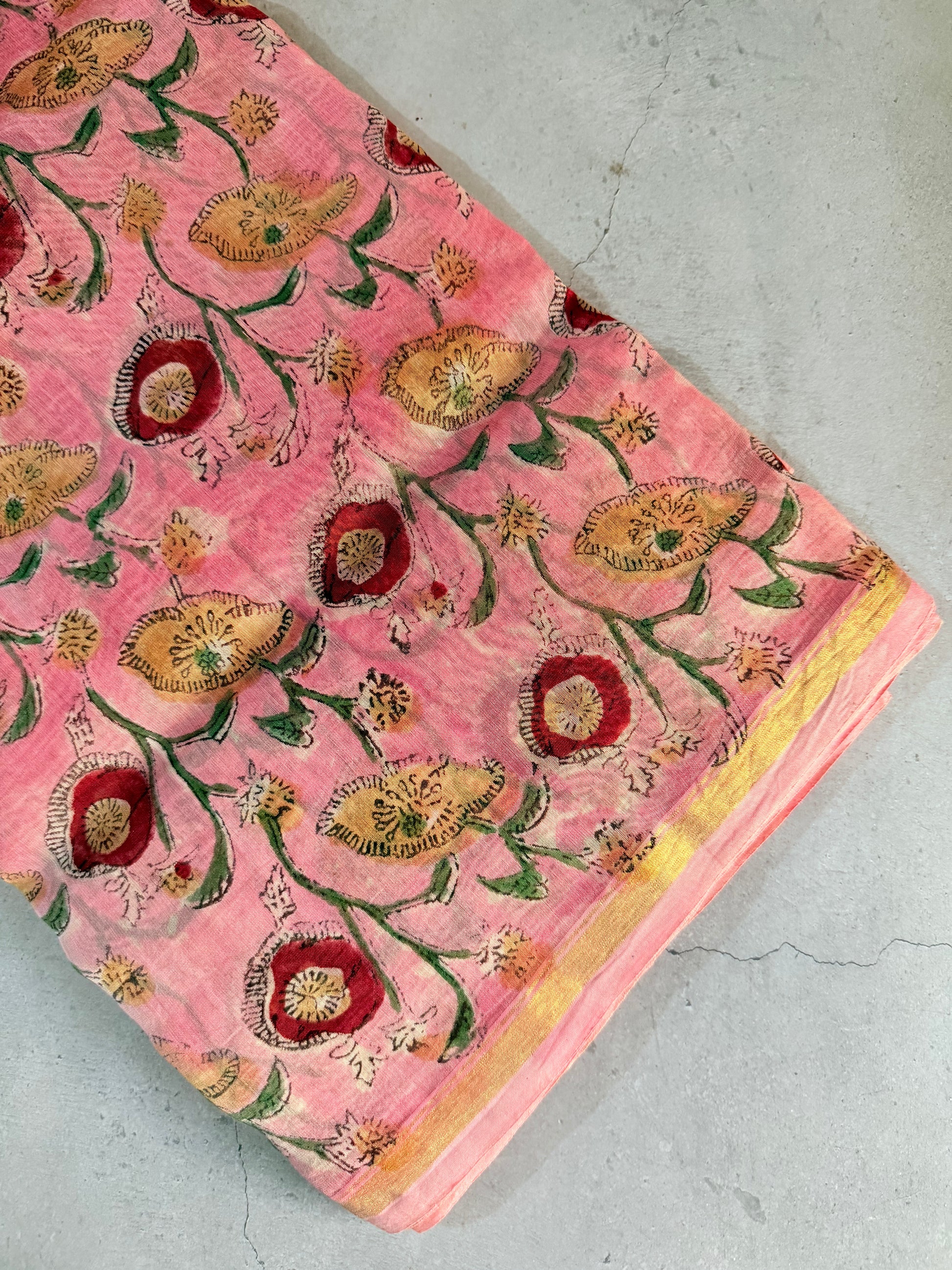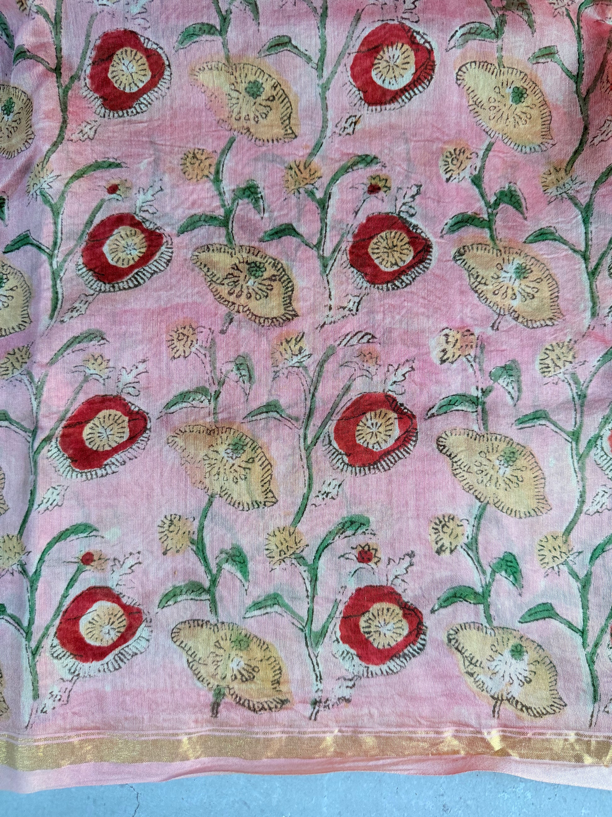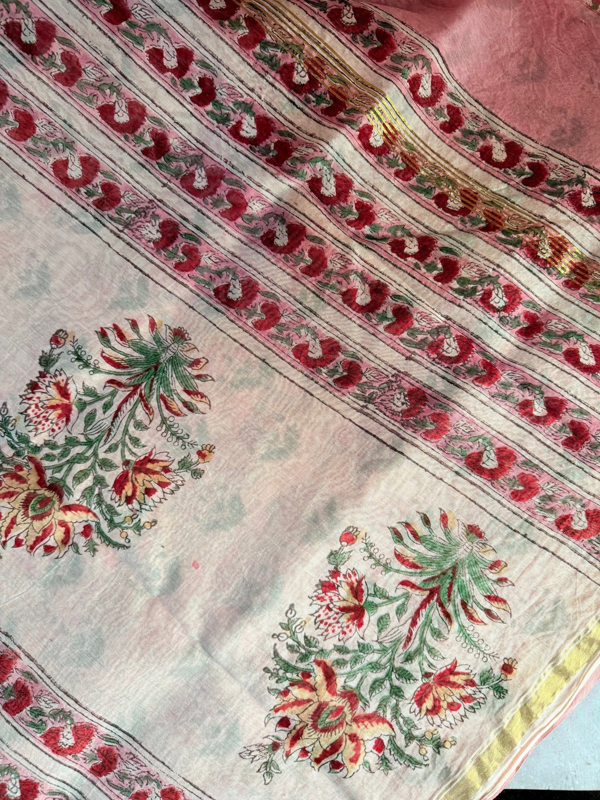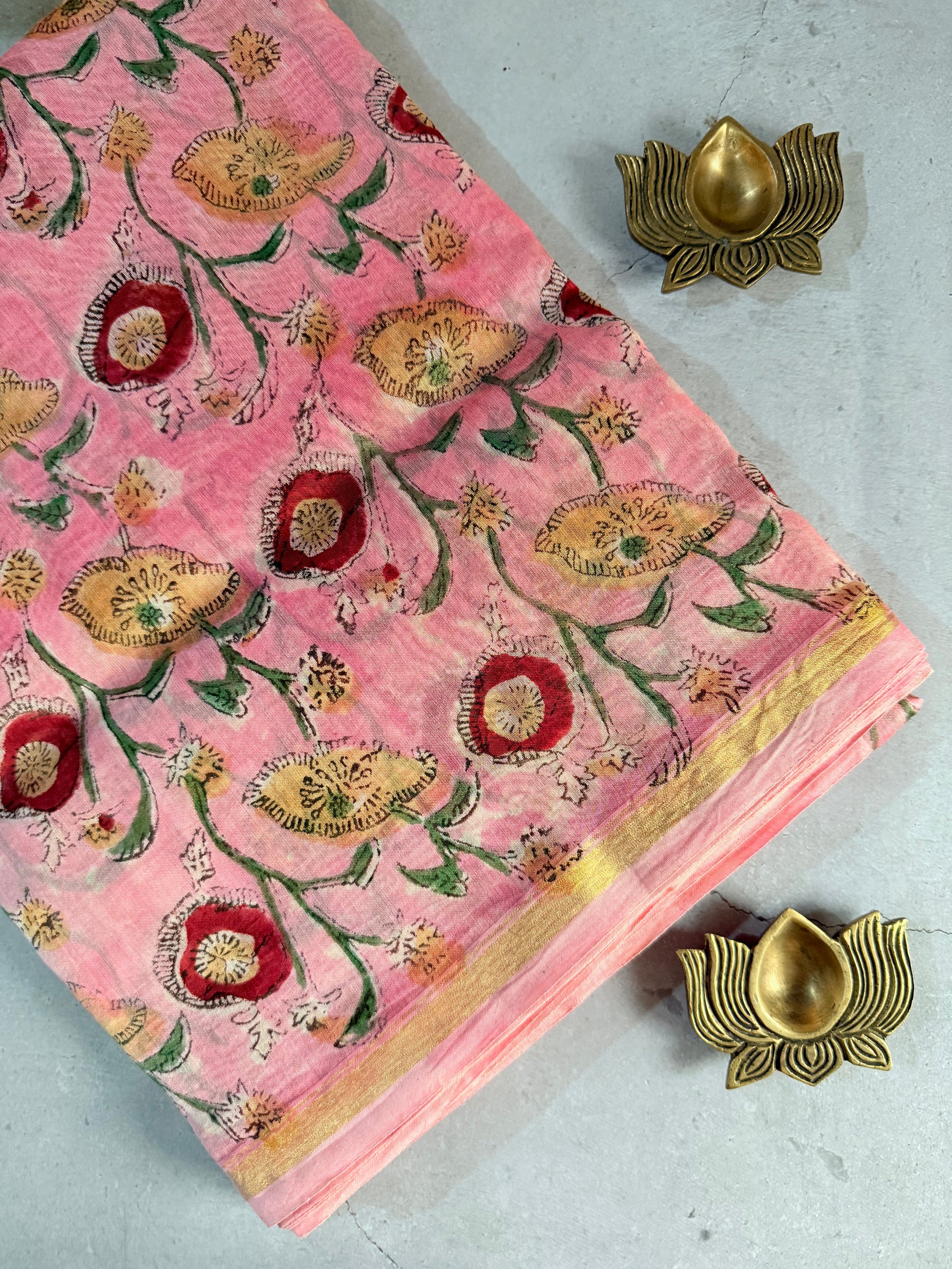 Mrinmayee | Pink Hand Block Printed Chanderi Saree