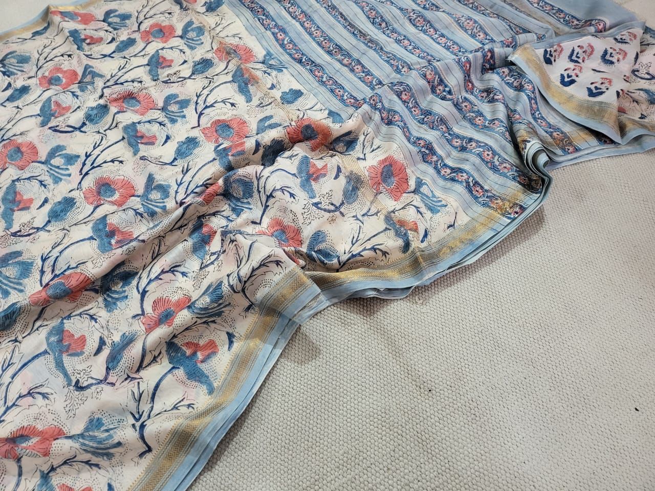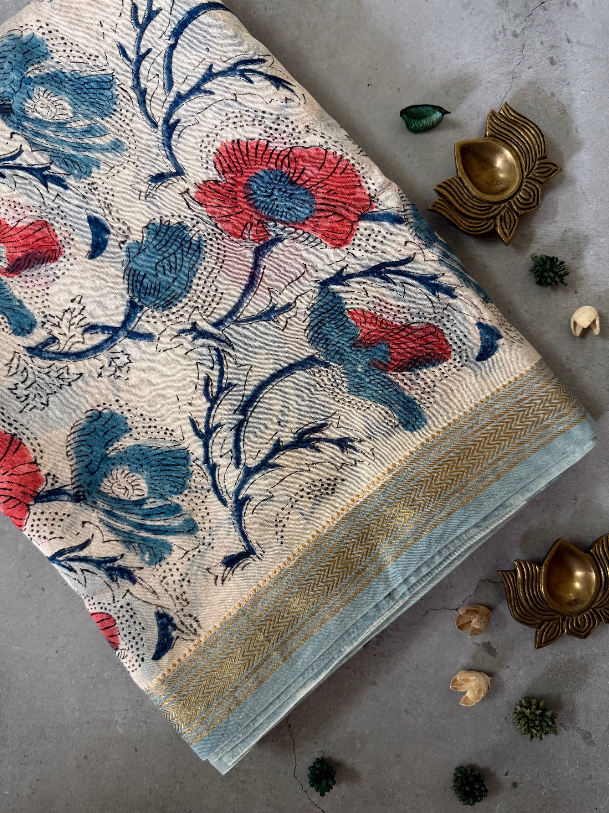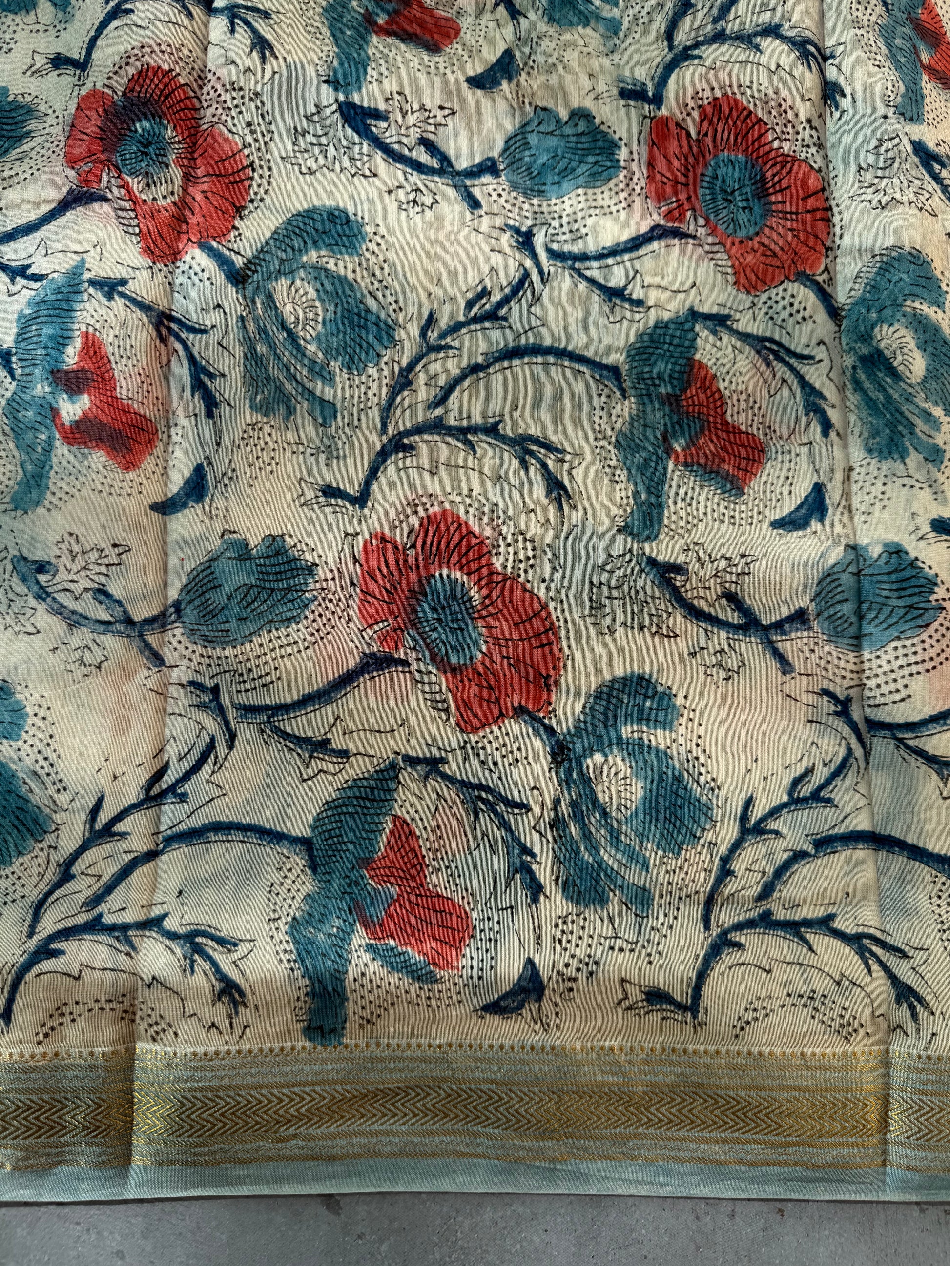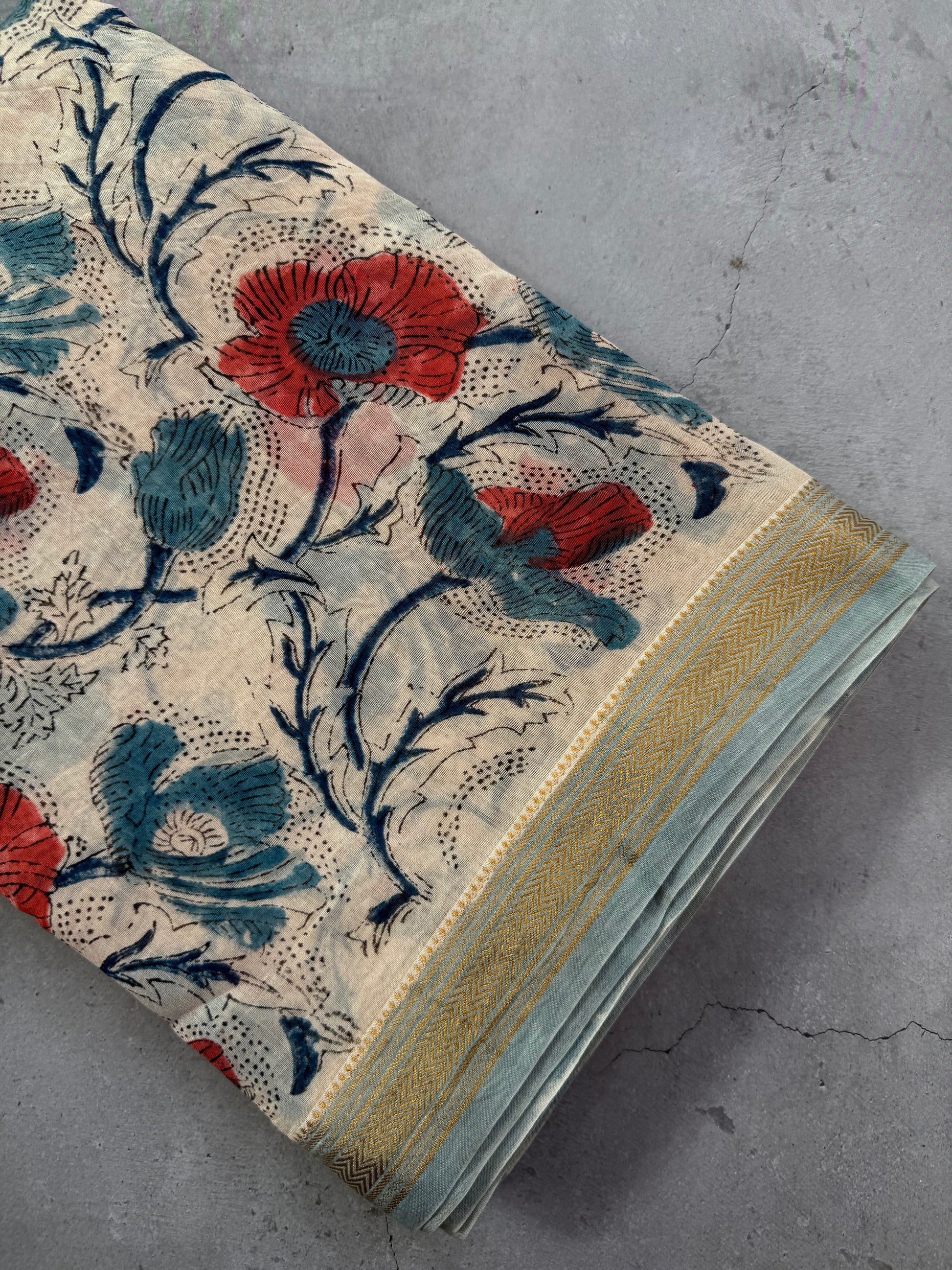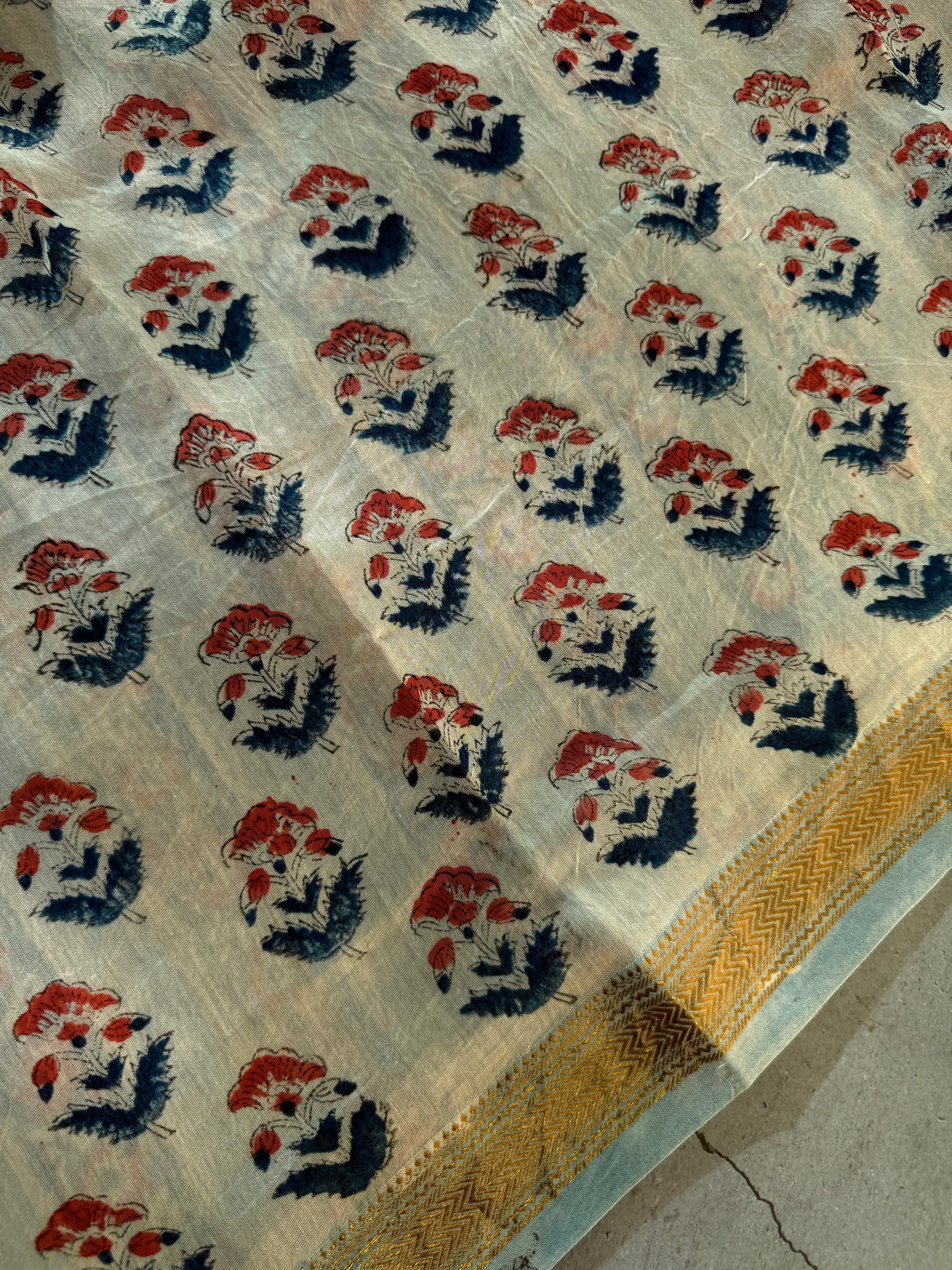 Hand Block Printed Maheshwari Silk-Cotton Saree