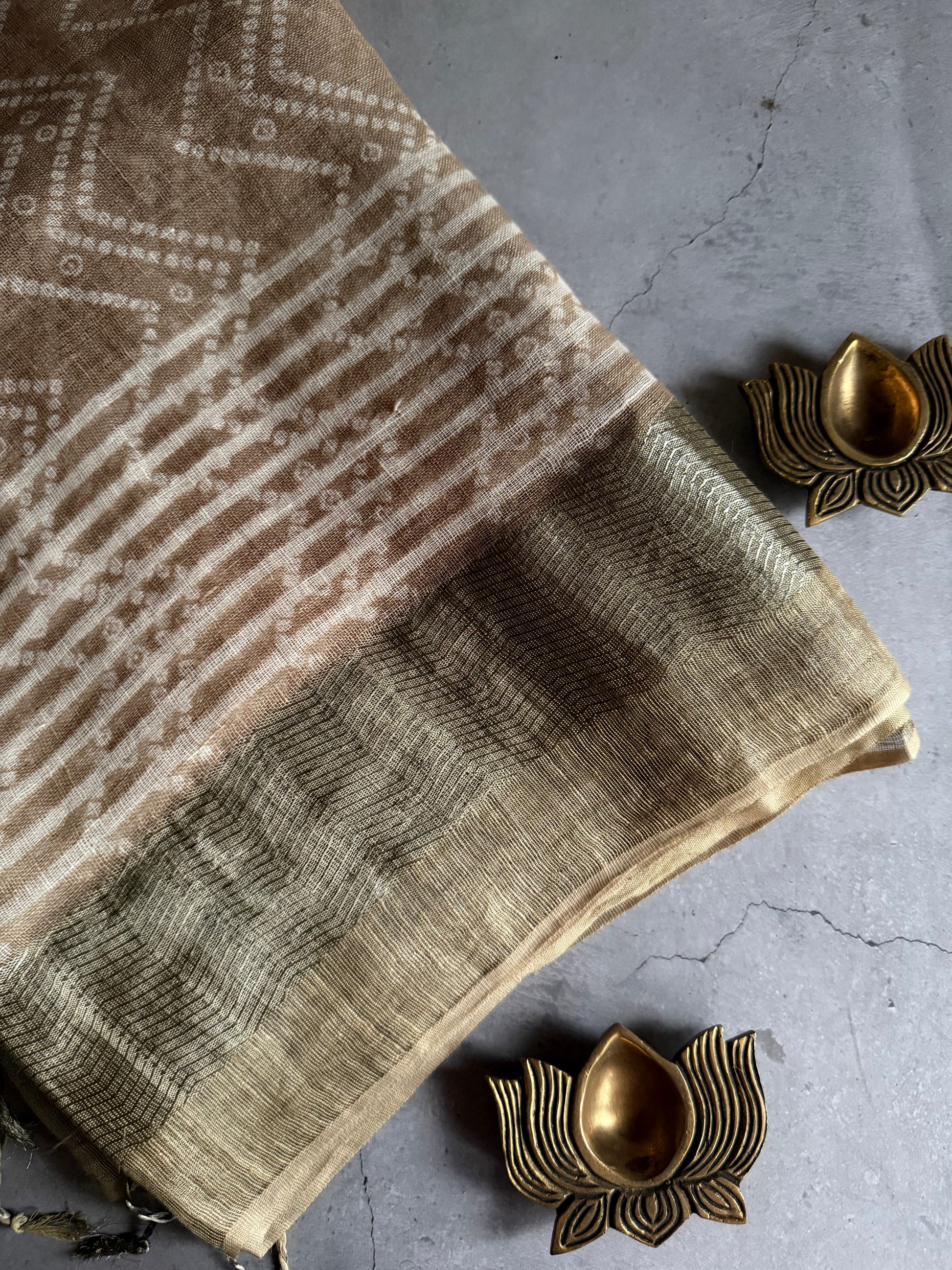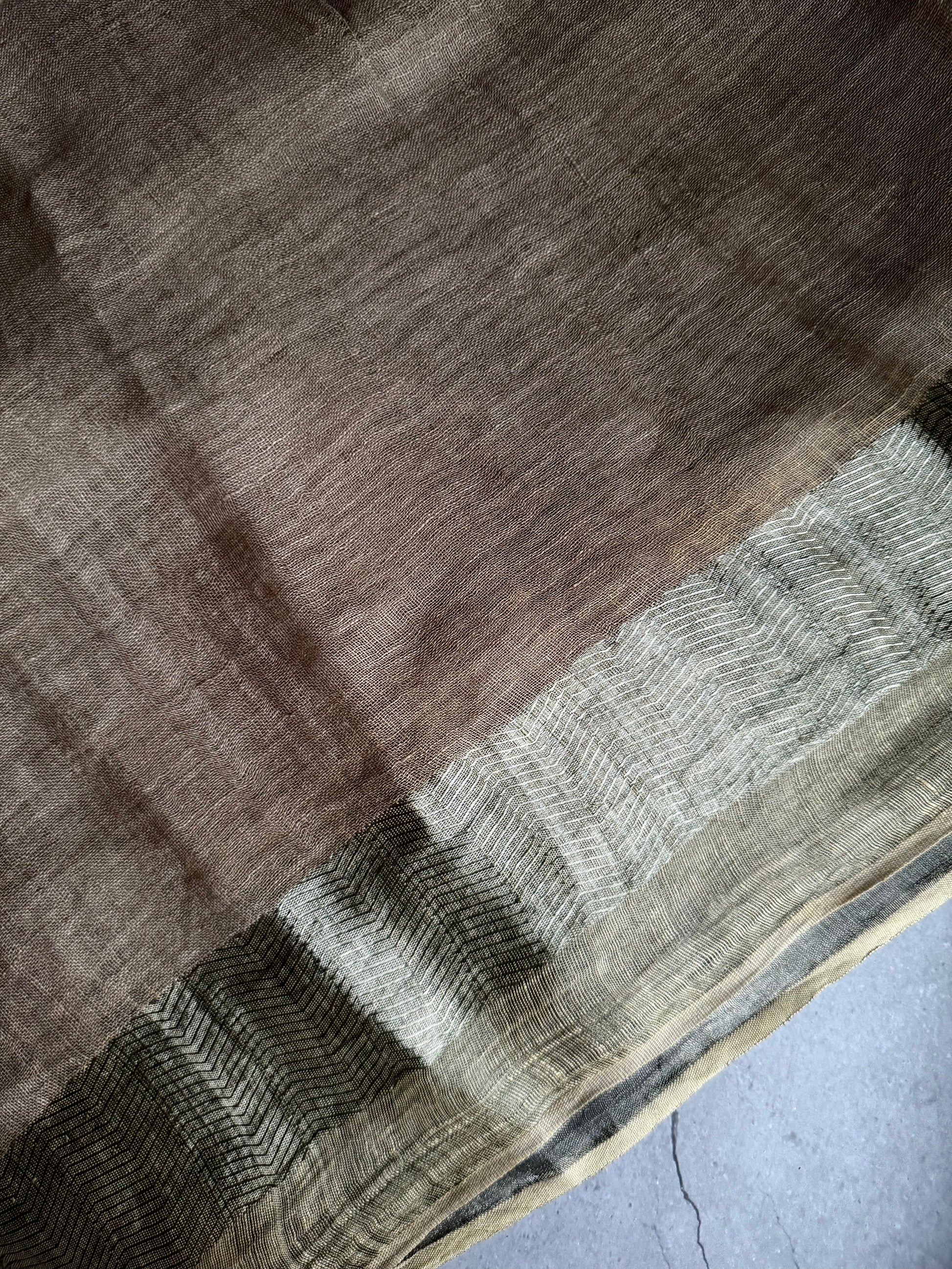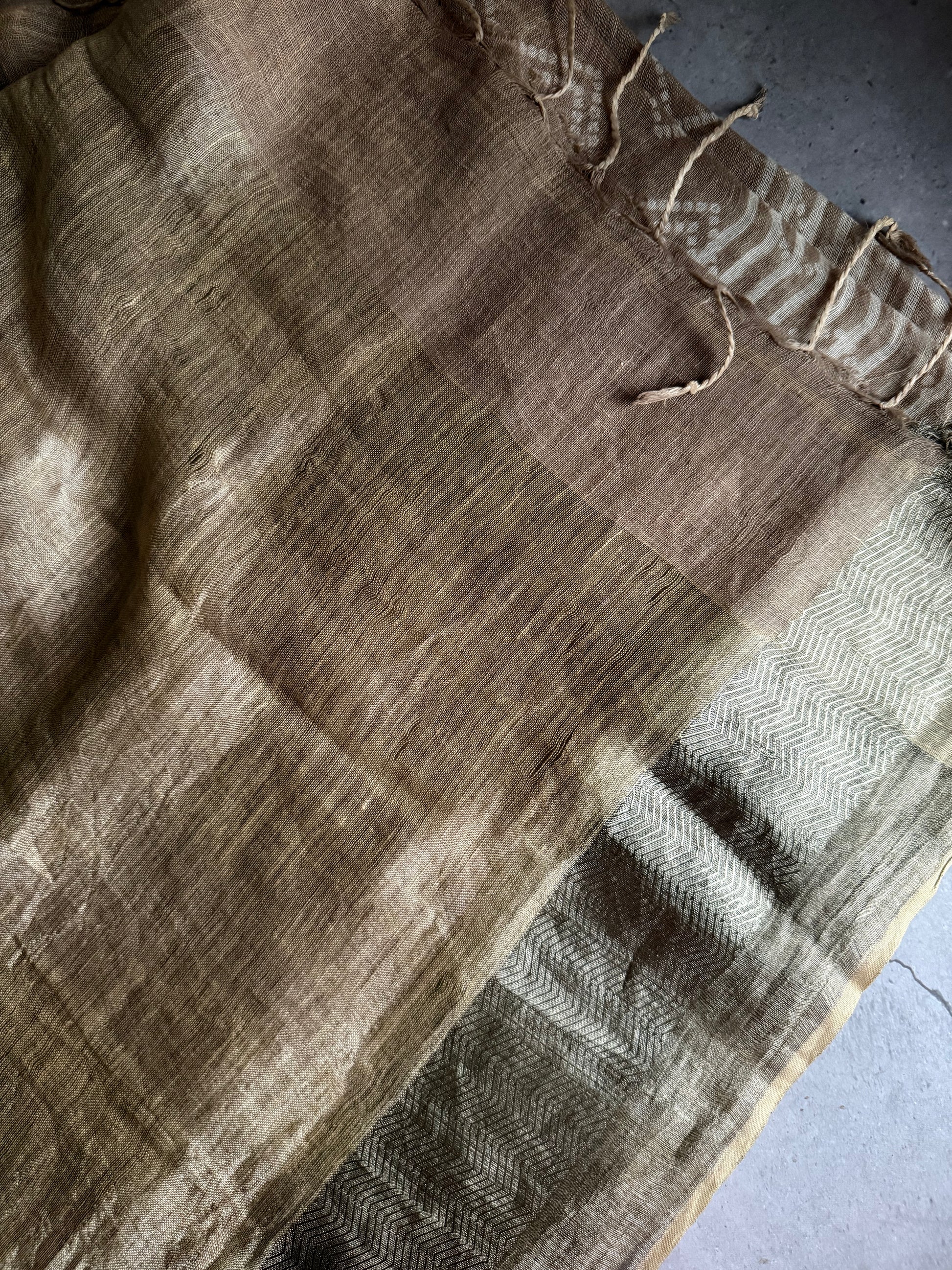 Nadiya | Brown and Pale Yellow Classic Linen Saree