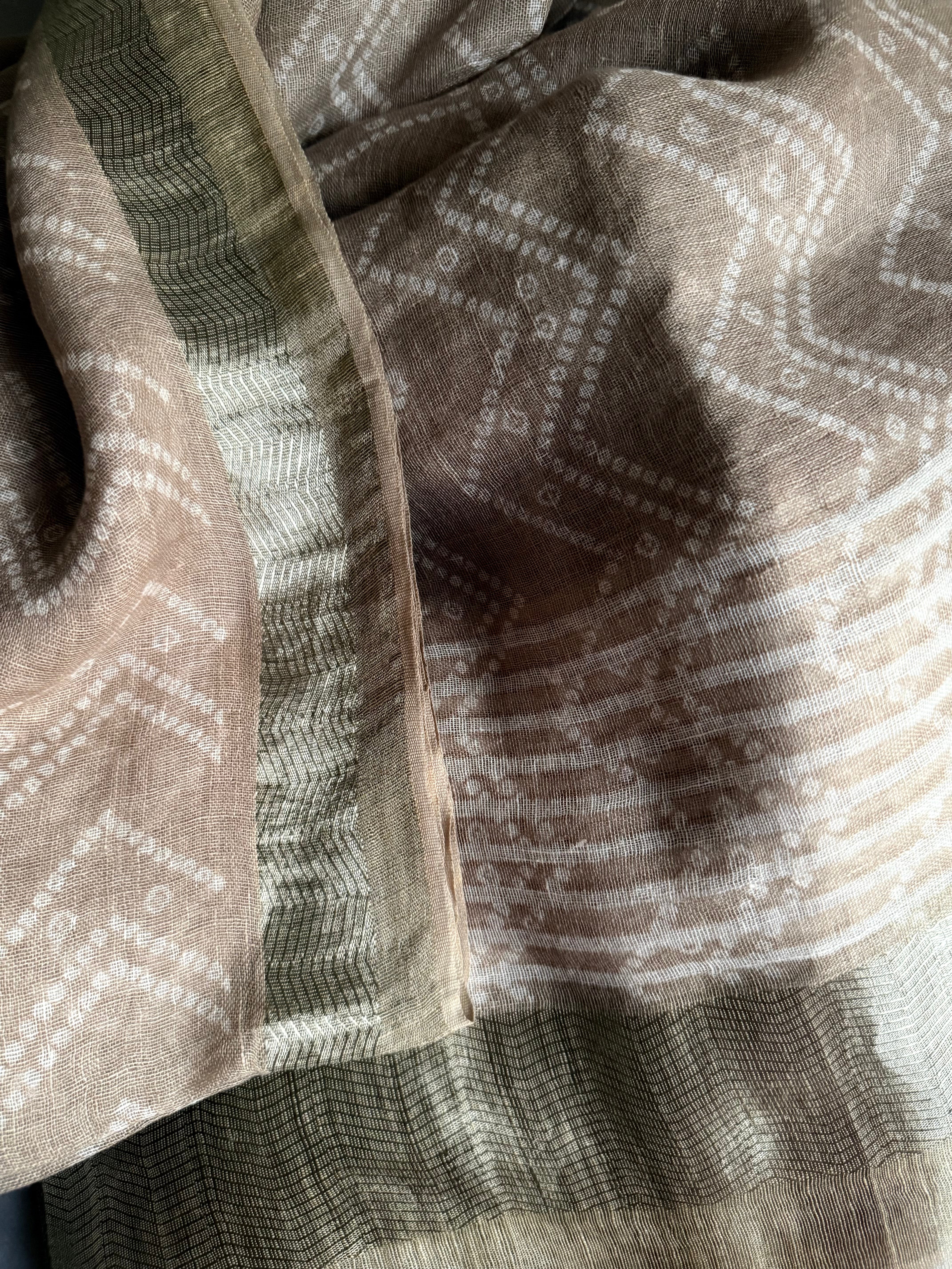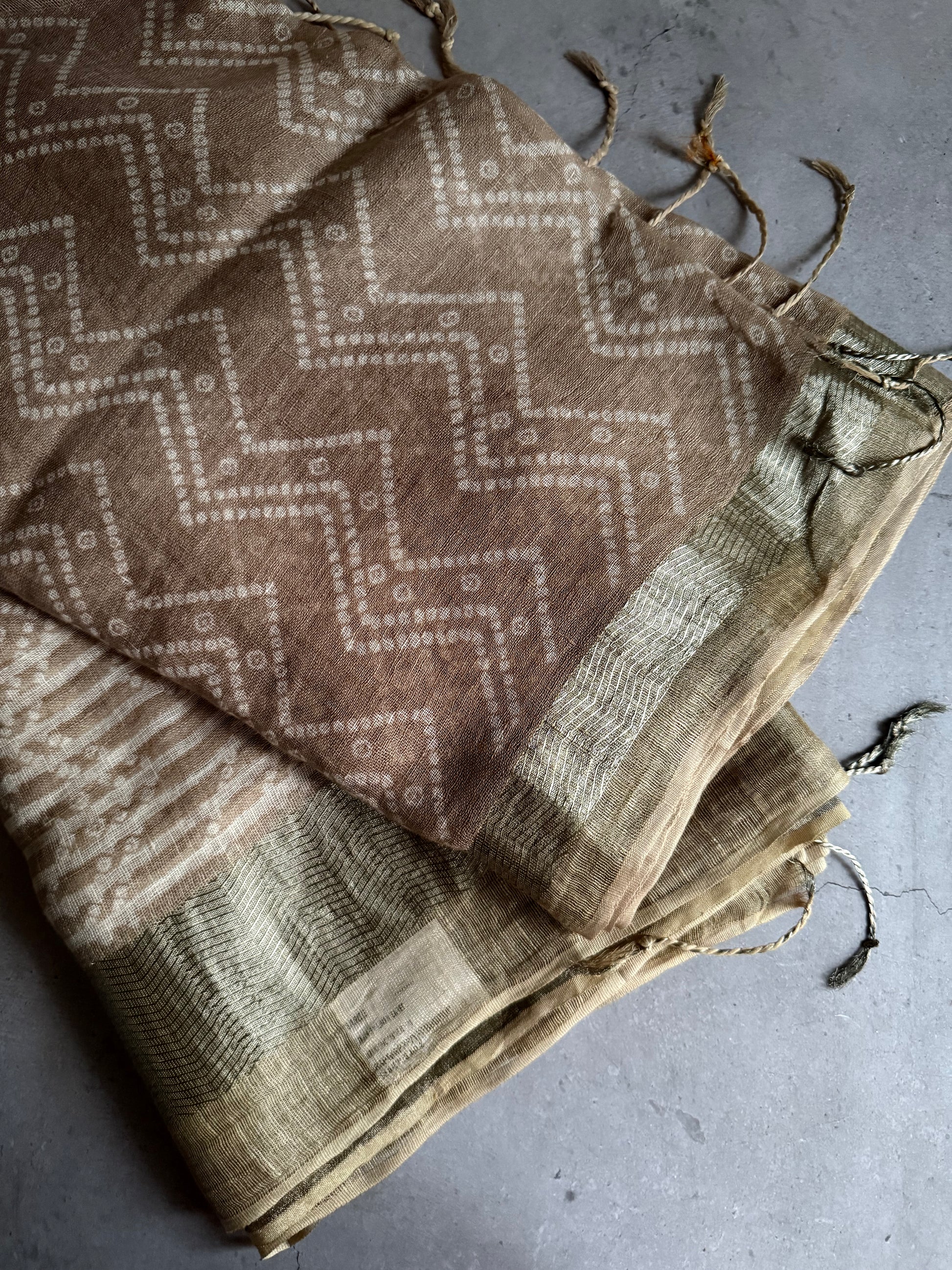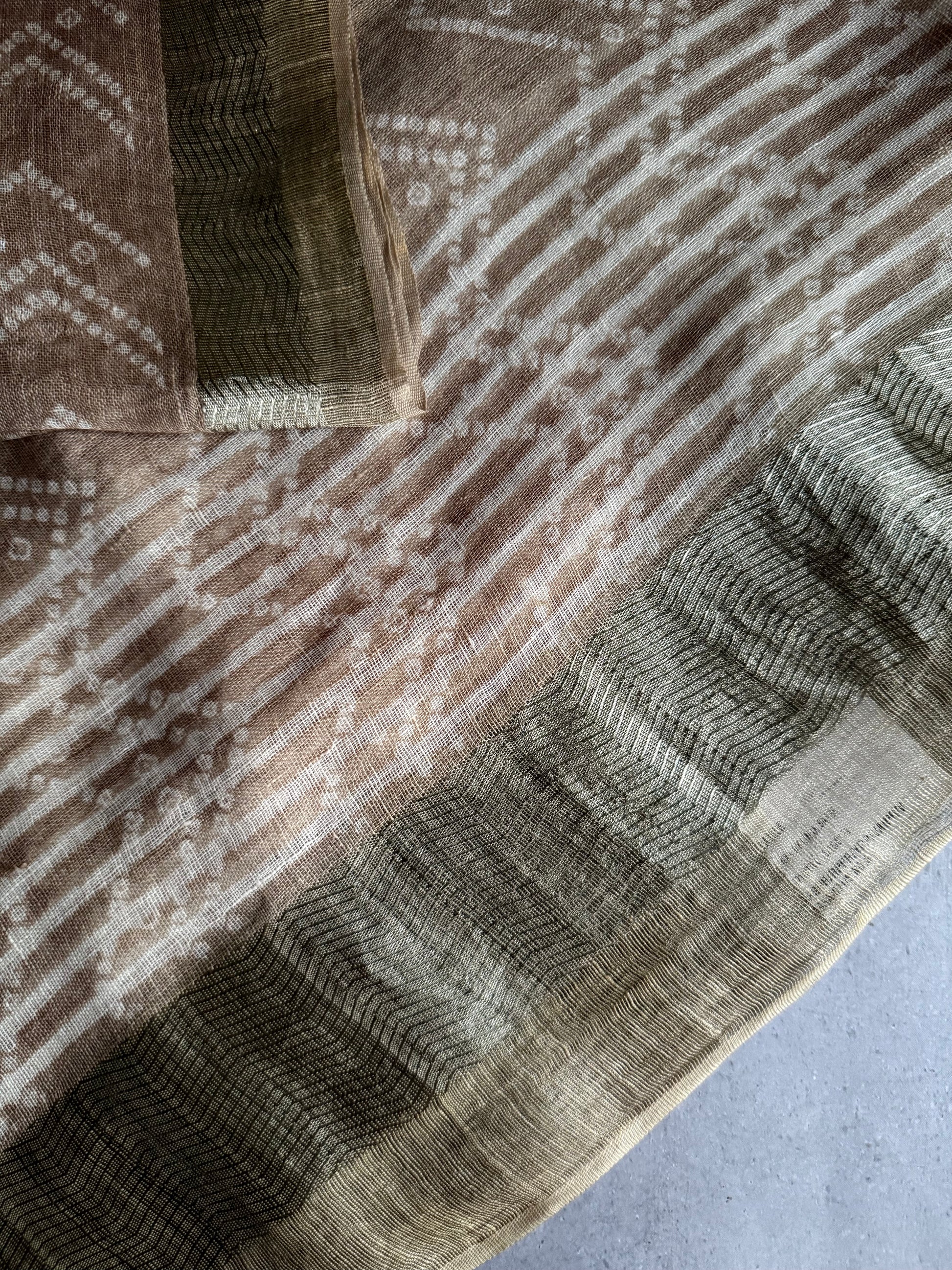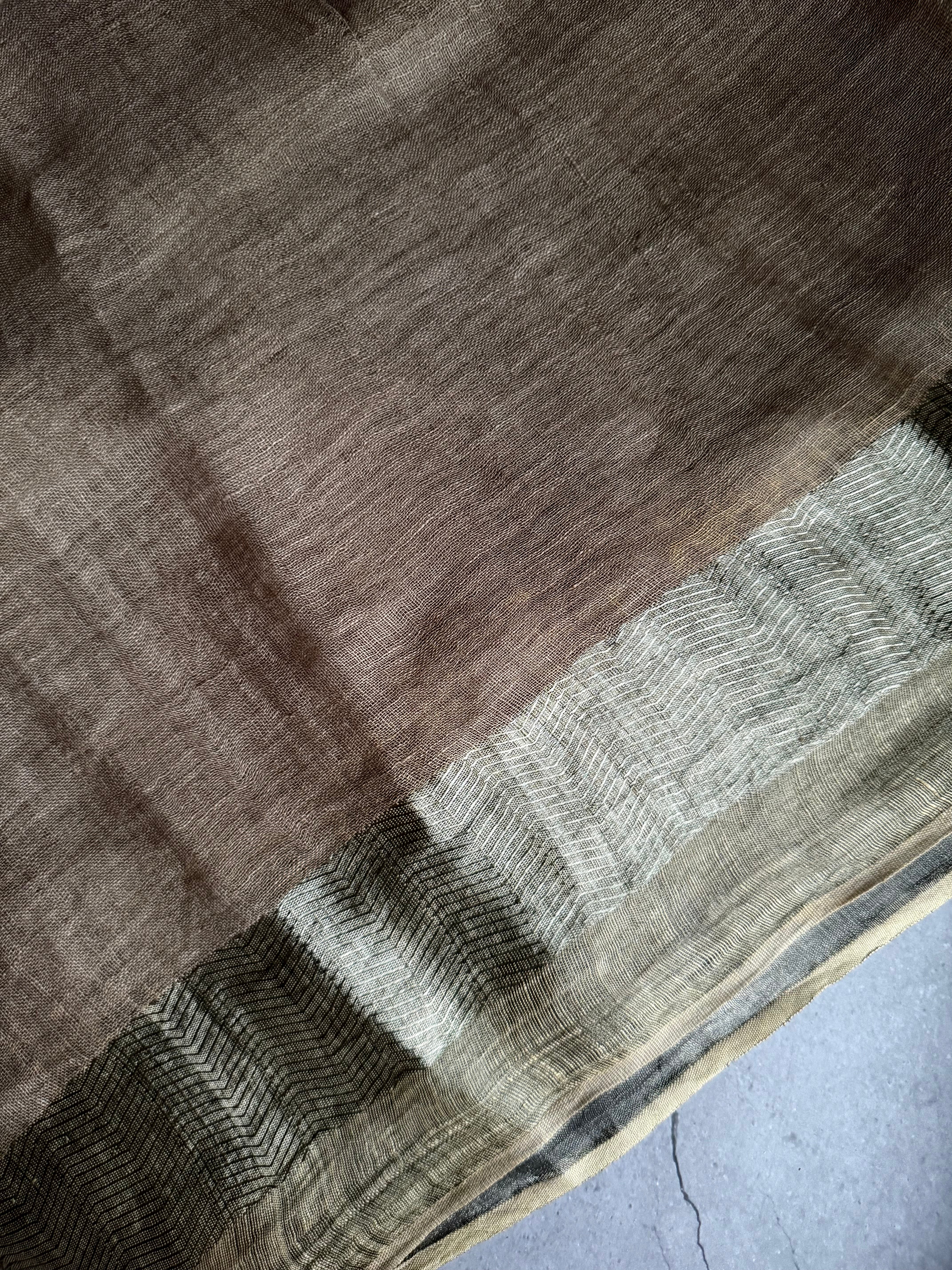 Nadiya | Brown and Pale Yellow Classic Linen Saree