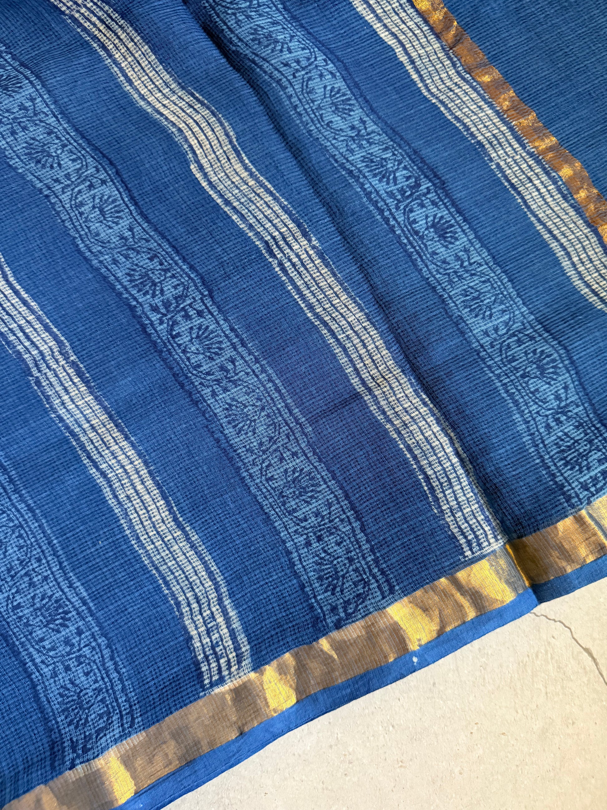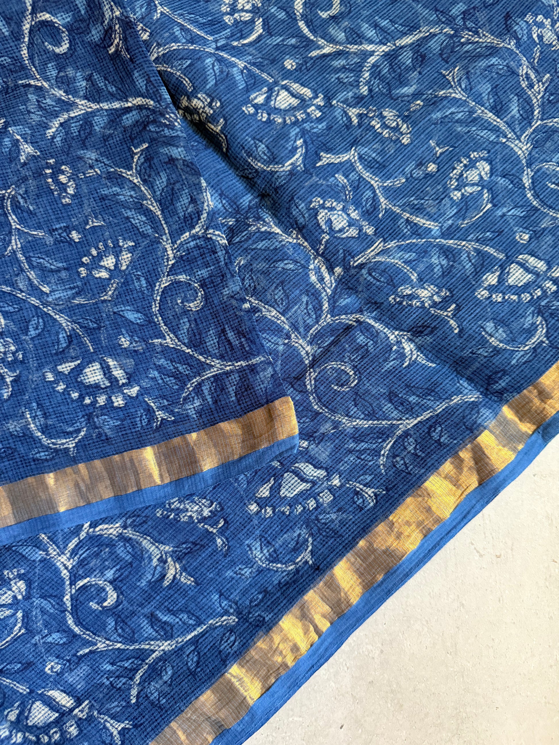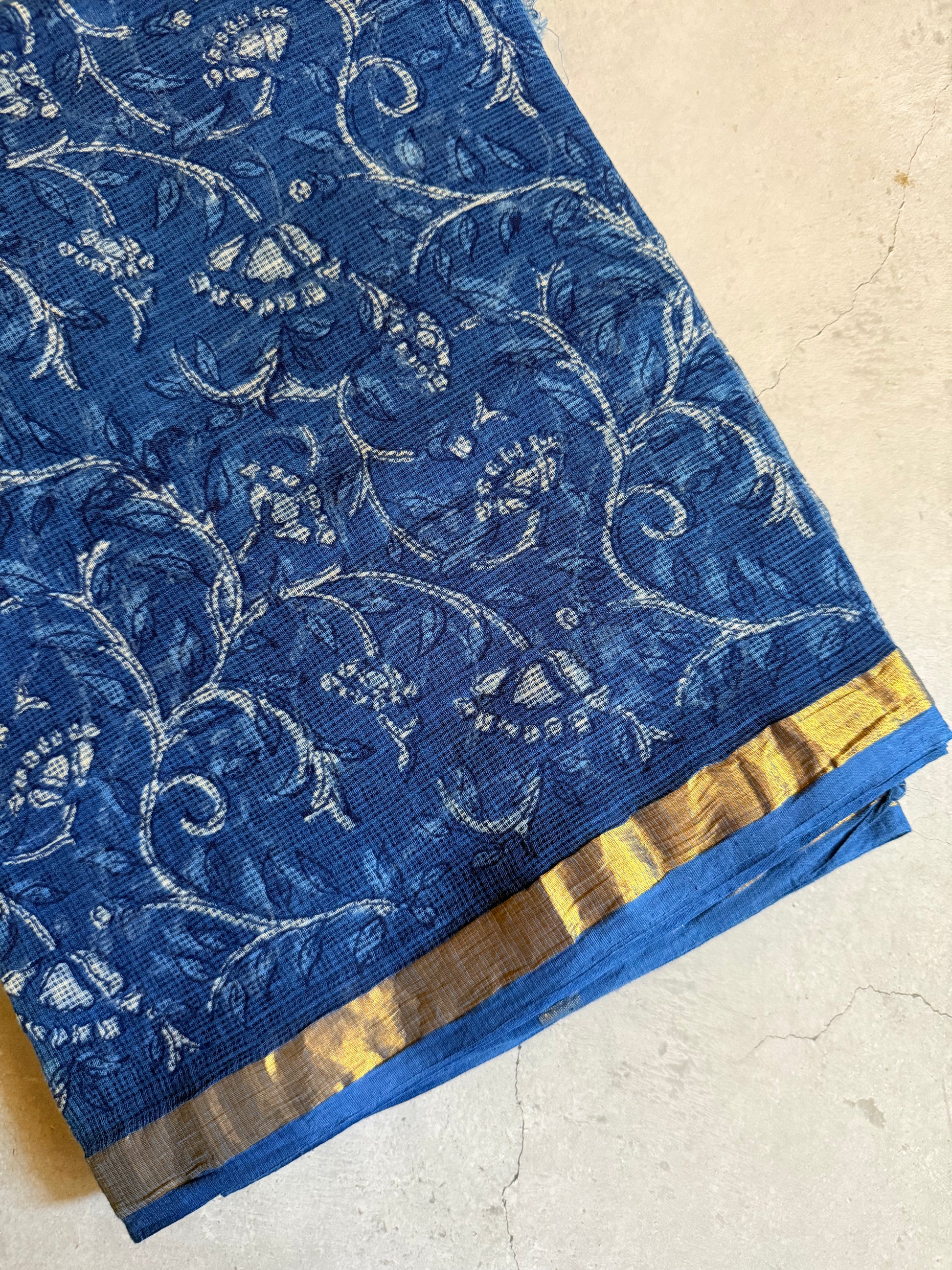 Neelantara | Indigo Block Floral Printed Kota Saree