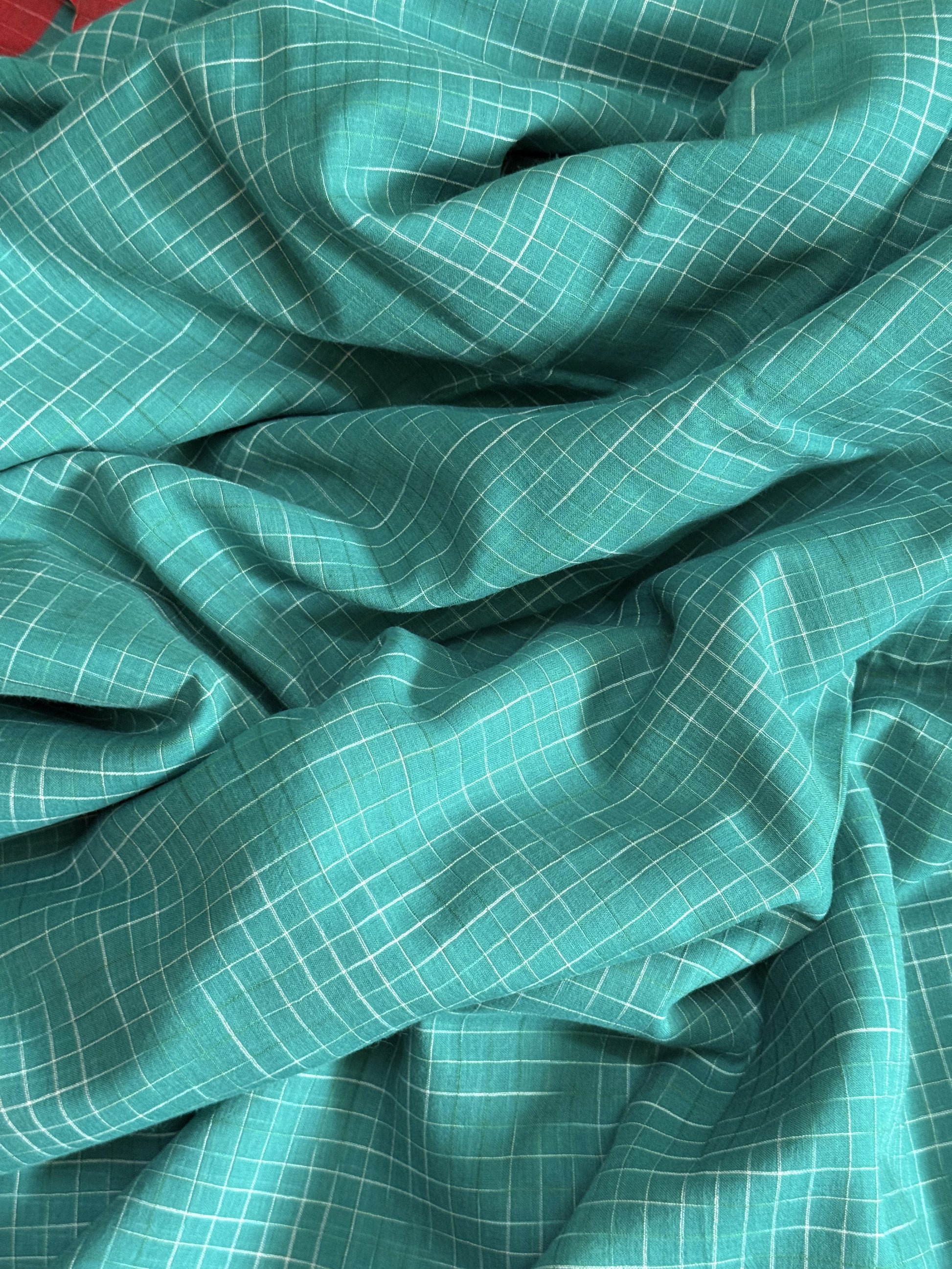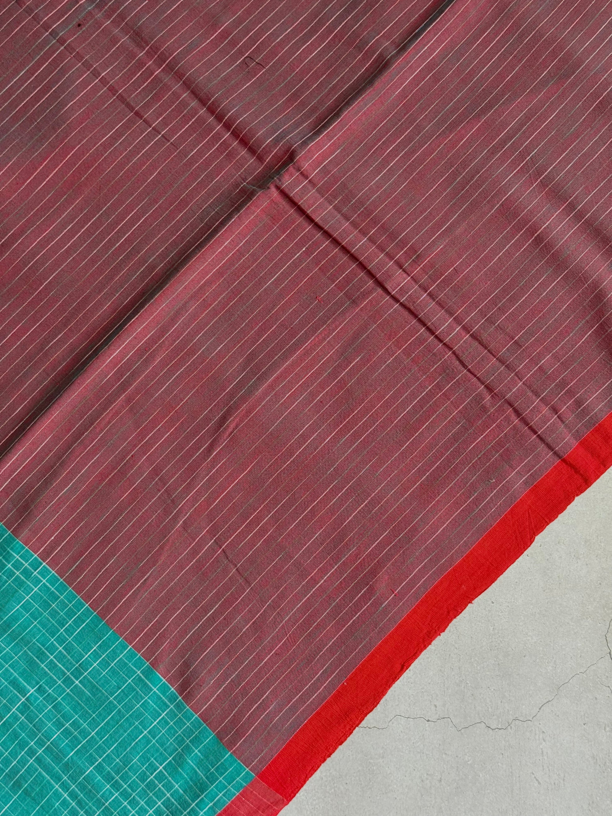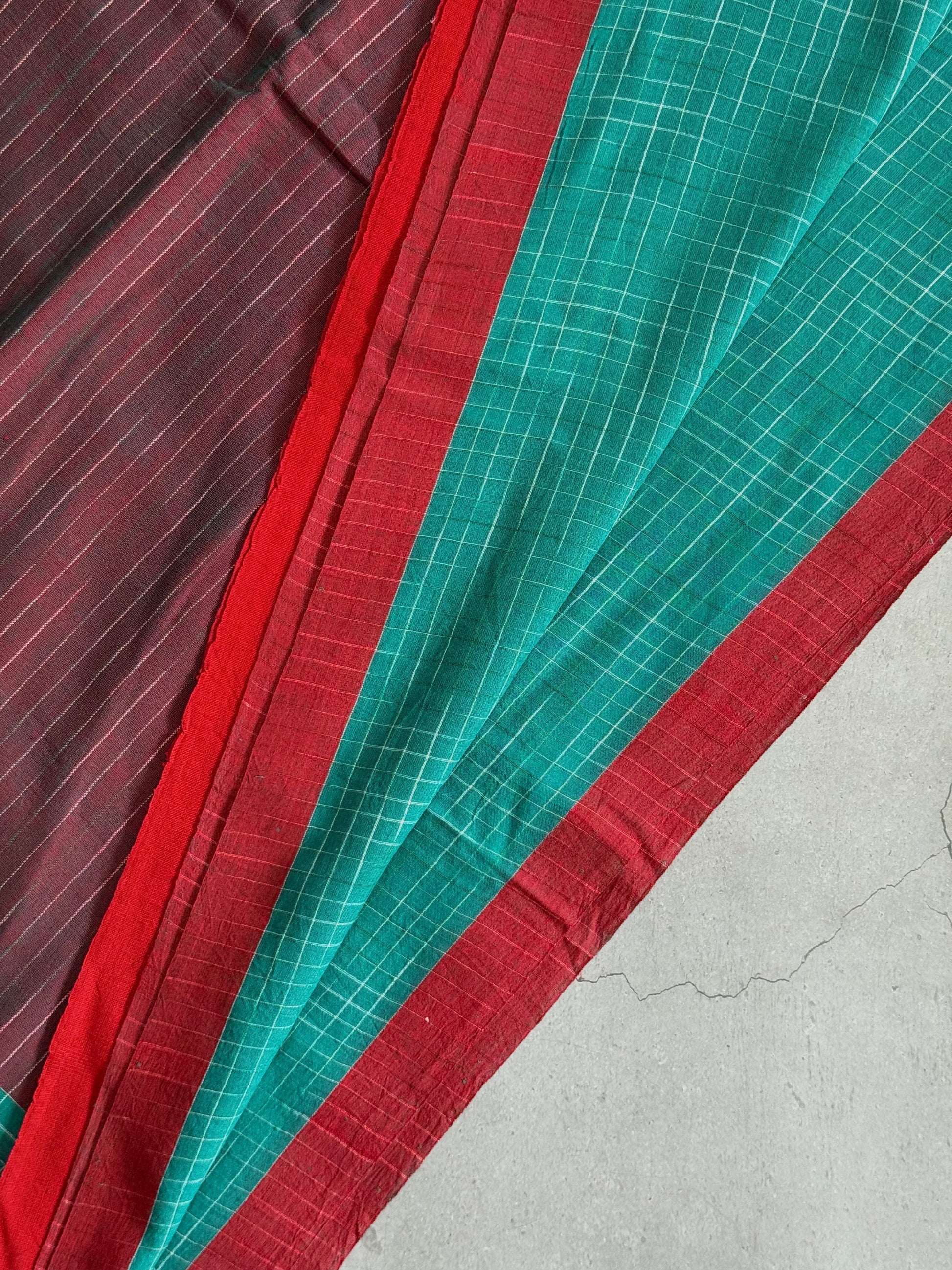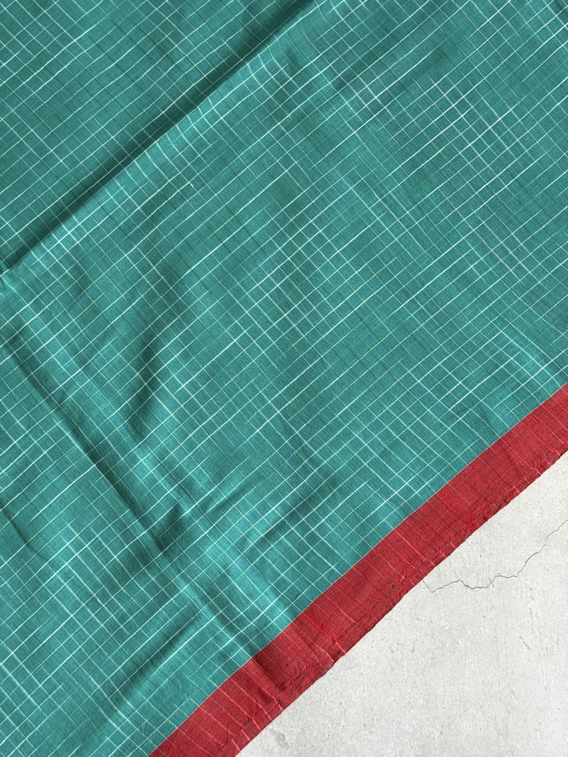 Neeraja | Green and Red Broken Checks Bengal Cotton Saree