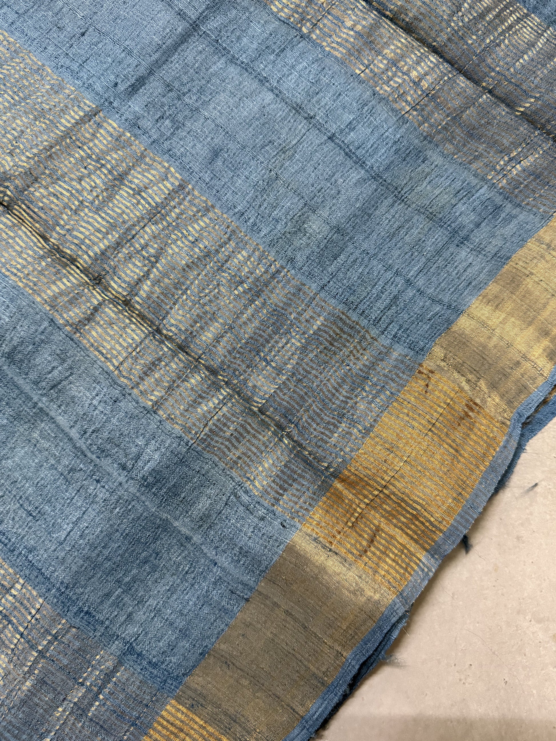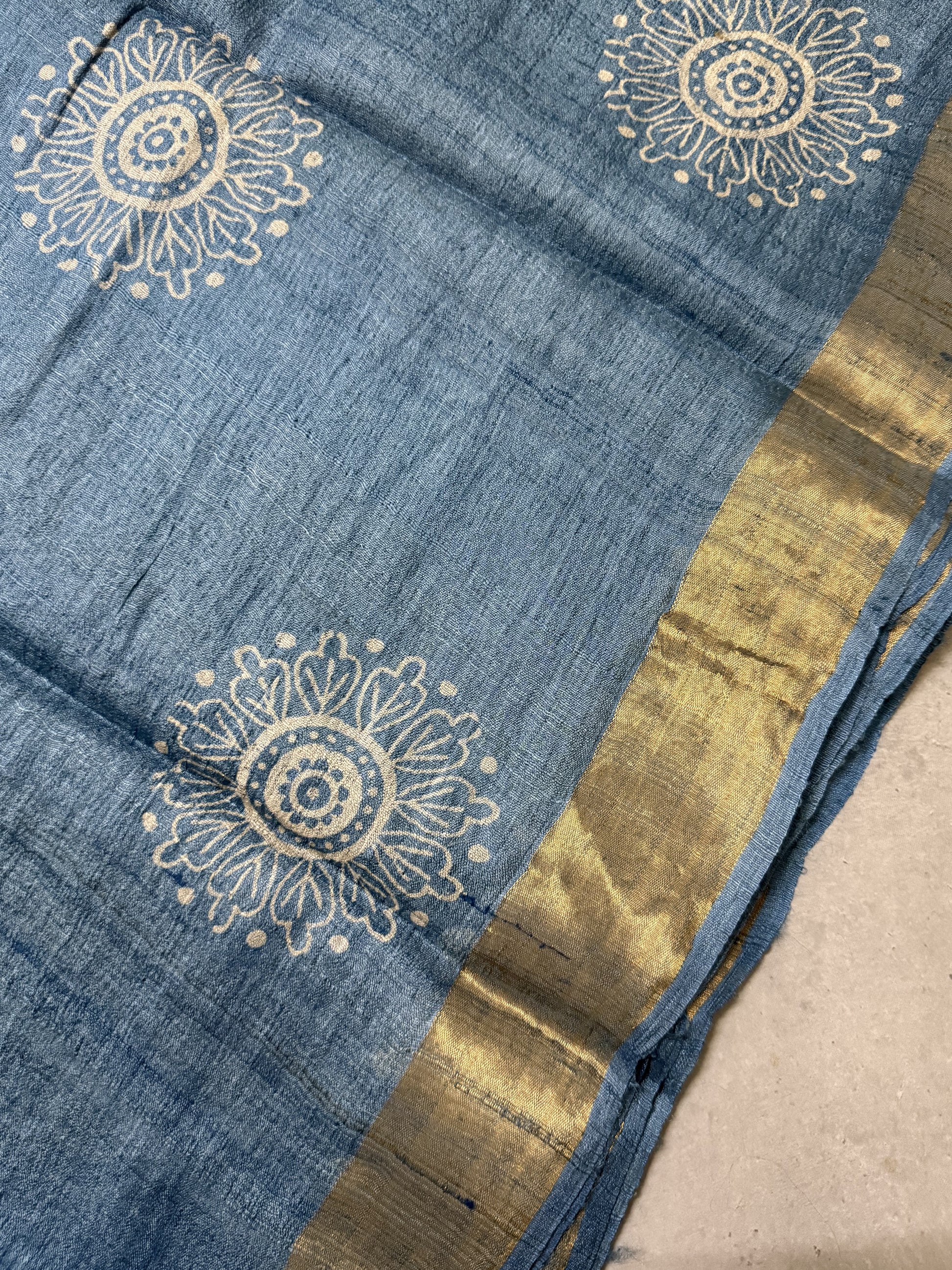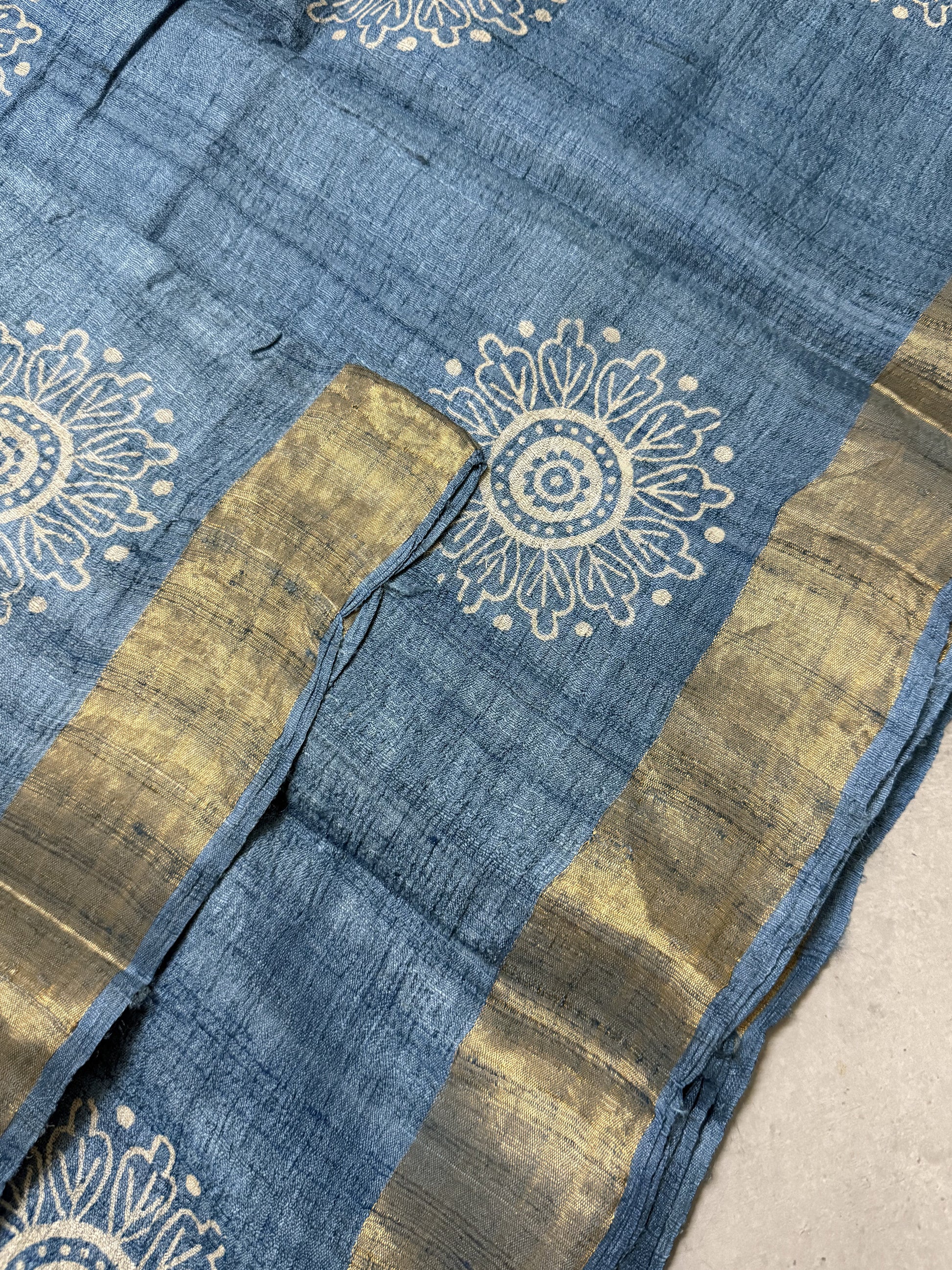 Handcrafted by skilled artisans using the finest quality Tussar silk, the saree boasts a rich texture and a gentle natural sheen. Its golden undertones, traditional motifs, and intricate borders speak of legacy and refined taste. Whether you're attending a wedding or marking a moment that matters, this drape offers unmatched elegance and a deeply rooted connection to India’s handloom tradition.
