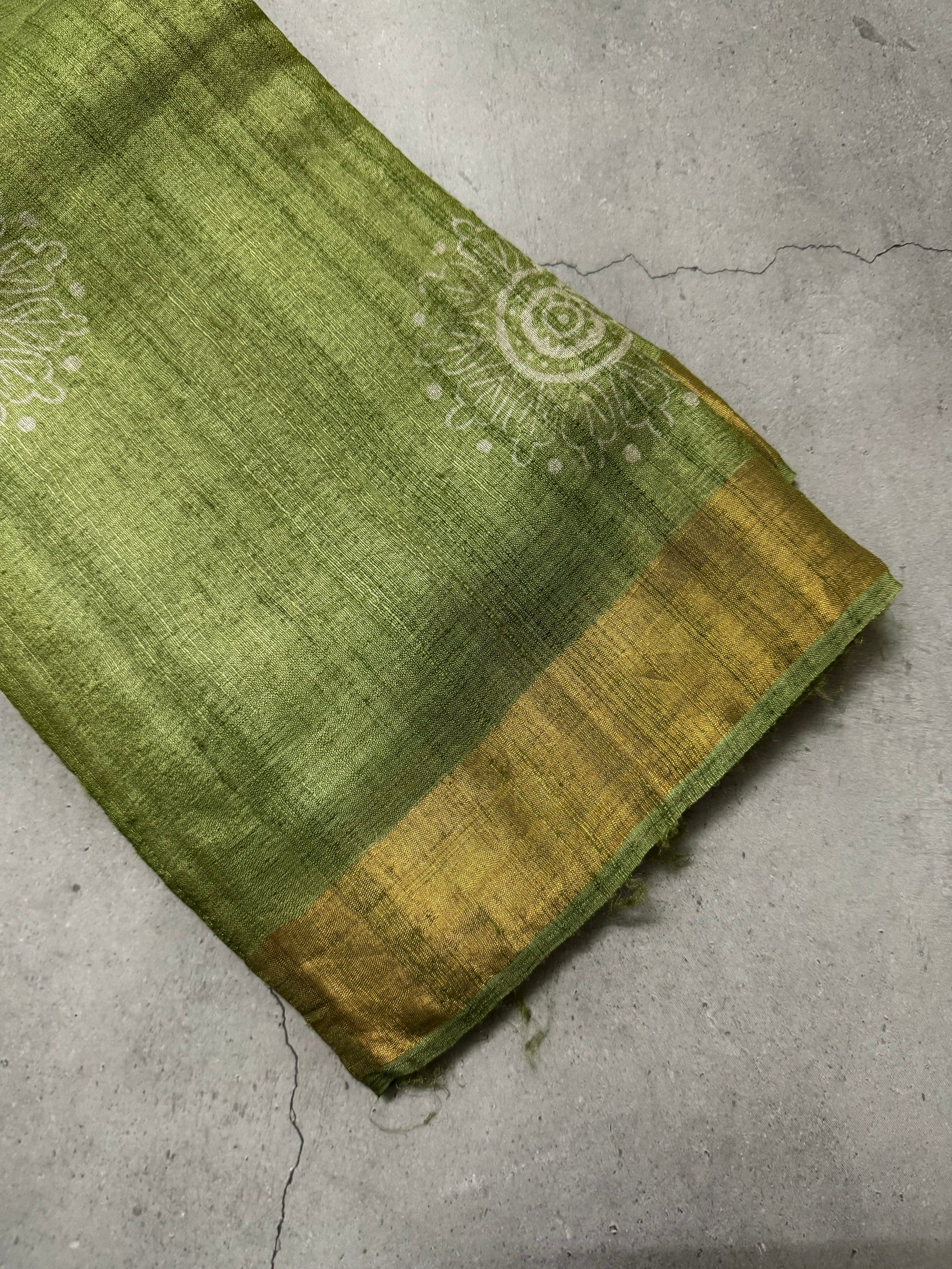 Handcrafted by skilled artisans using the finest quality Tussar silk, the saree boasts a rich texture and a gentle natural sheen. Its golden undertones, traditional motifs, and intricate borders speak of legacy and refined taste. Whether you're attending a wedding or marking a moment that matters, this drape offers unmatched elegance and a deeply rooted connection to India’s handloom tradition.