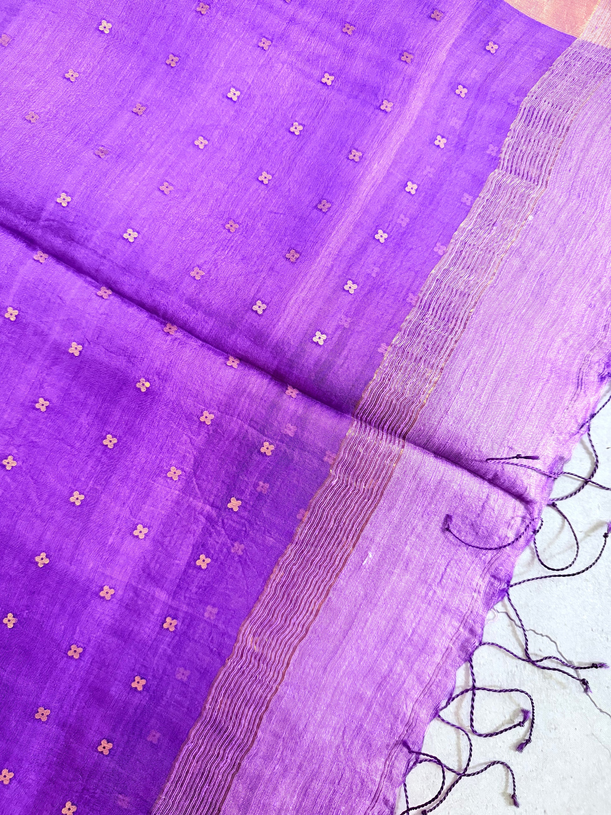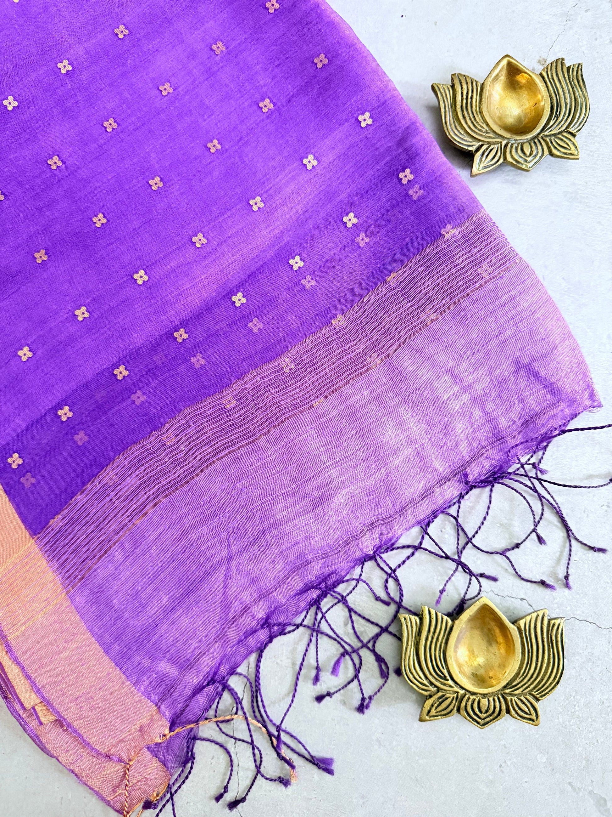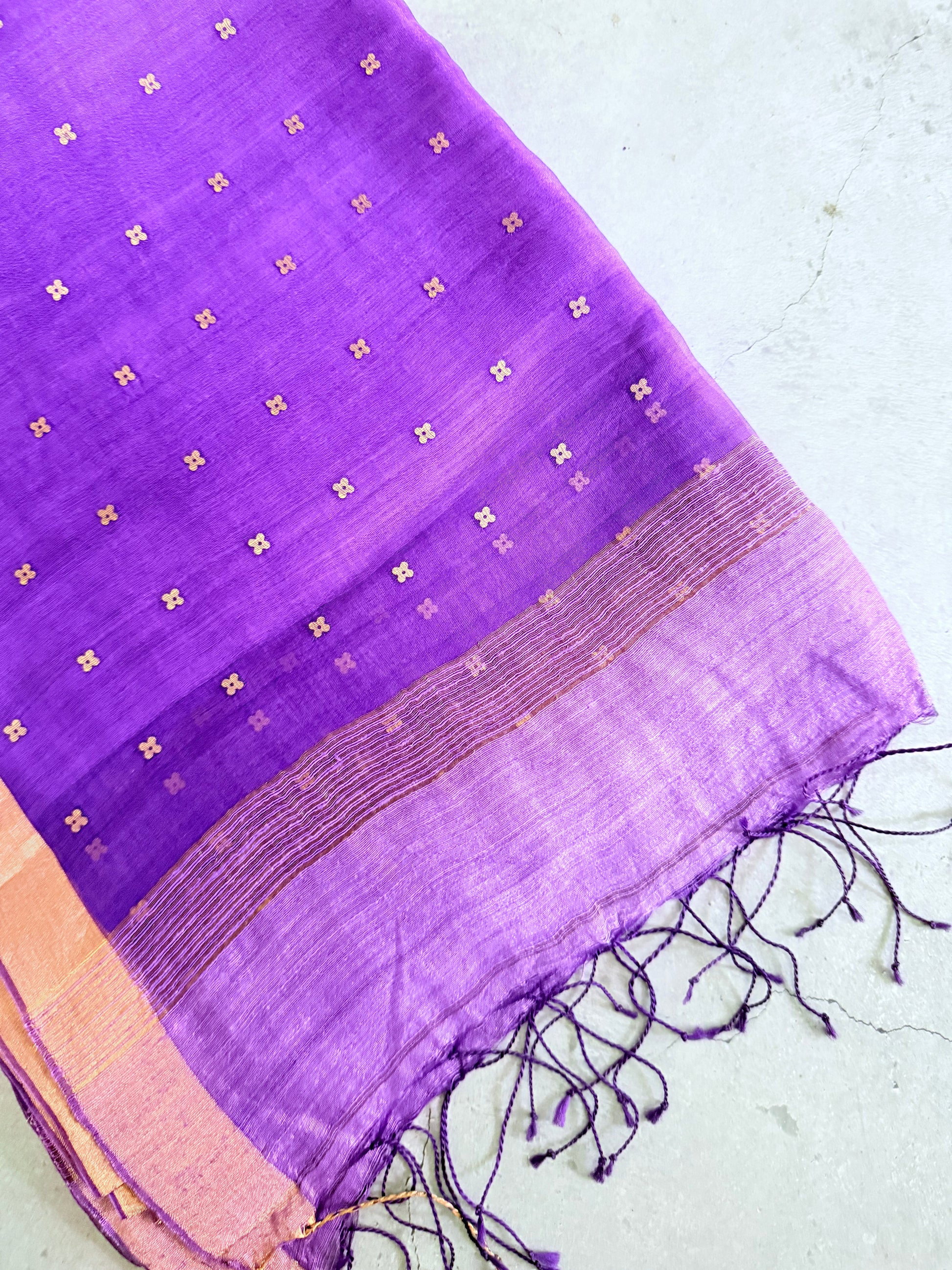 This Pure Handwoven Maslin Silk Saree combines timeless elegance with modern sparkle. The saree features intricate handwoven detailing and all-over sequins that add a subtle shimmer, perfect for festive occasions and evening events. The luxurious fabric offers a soft, silky feel, with the sequins catching the light beautifully.