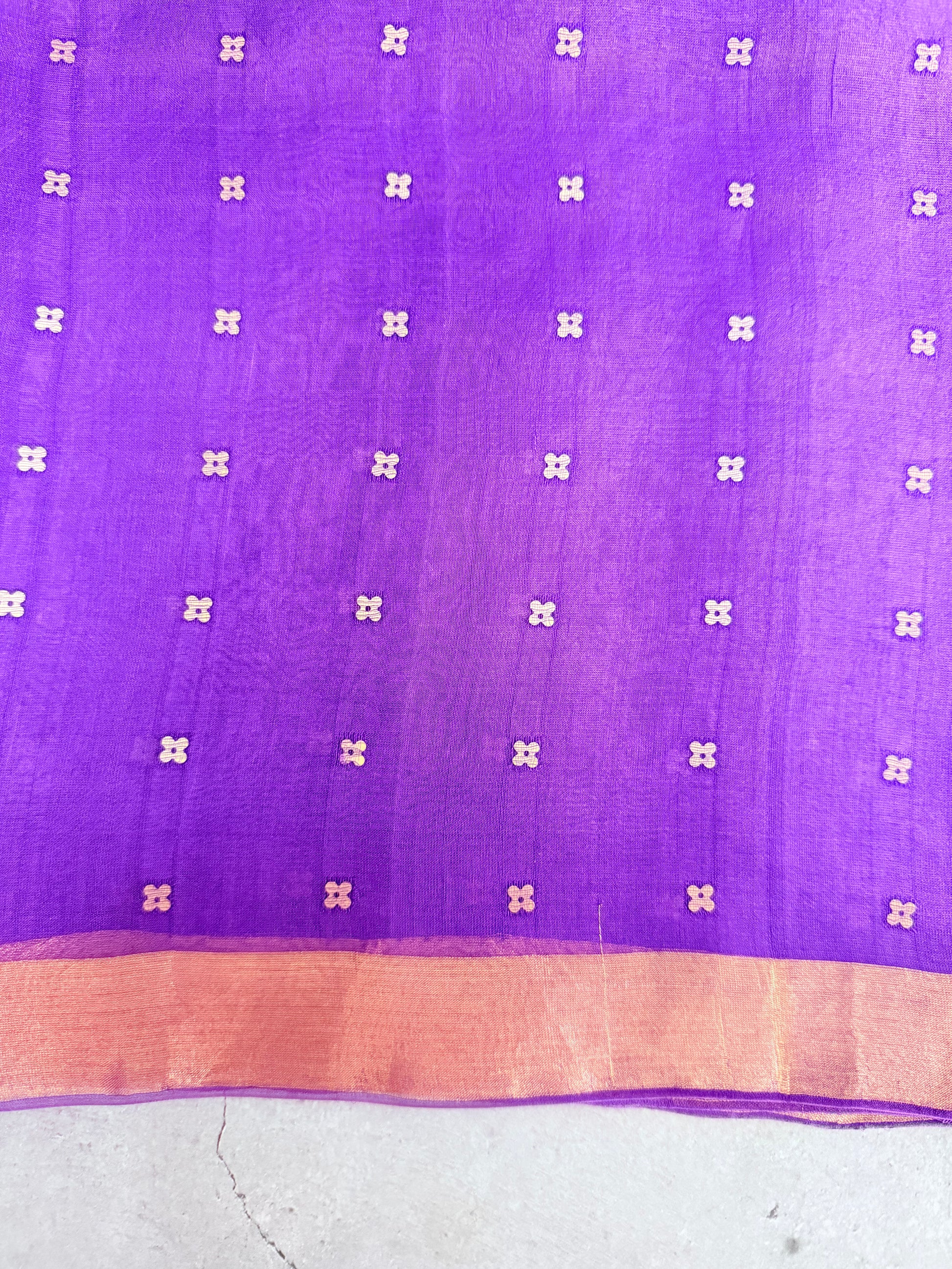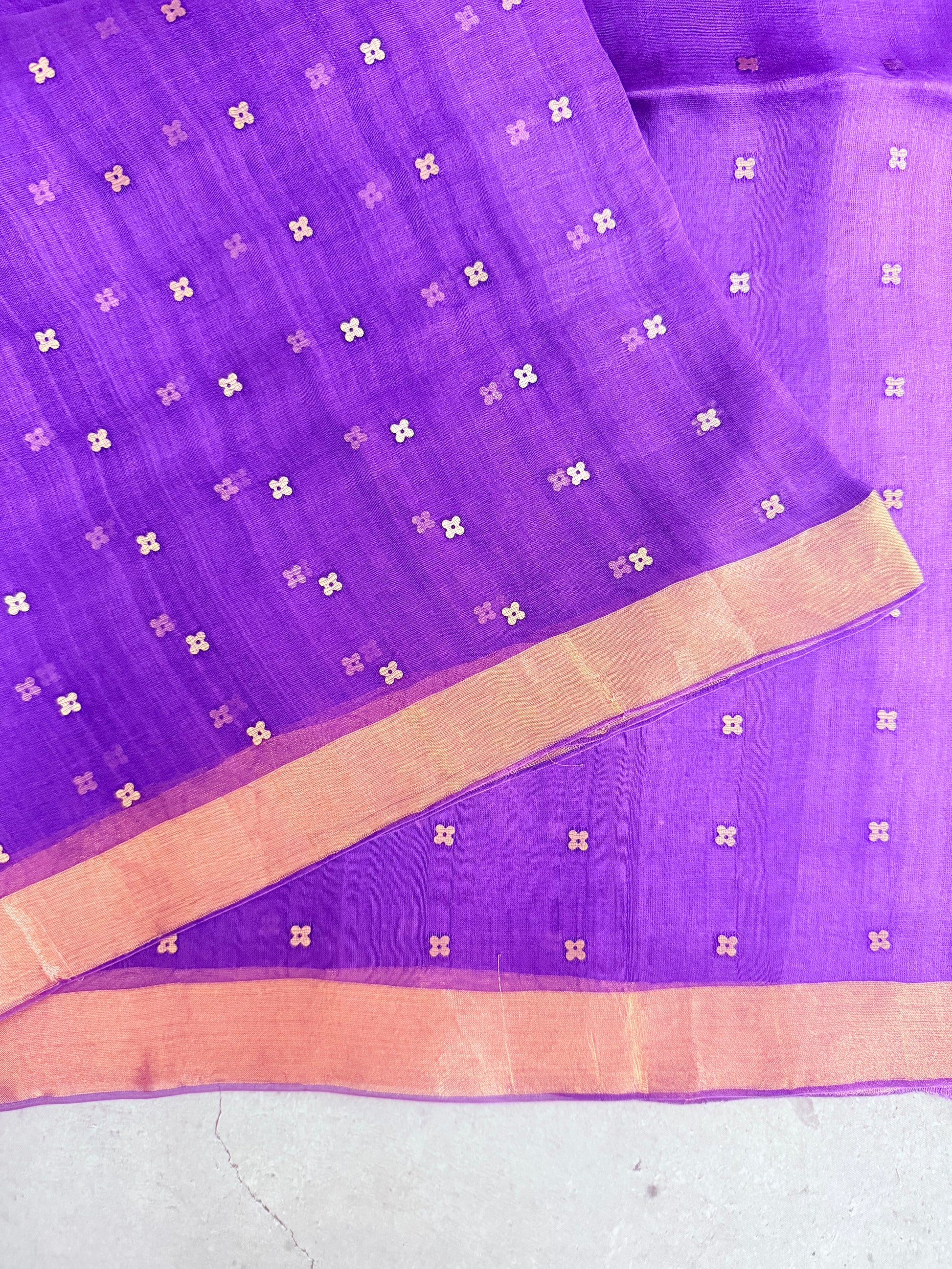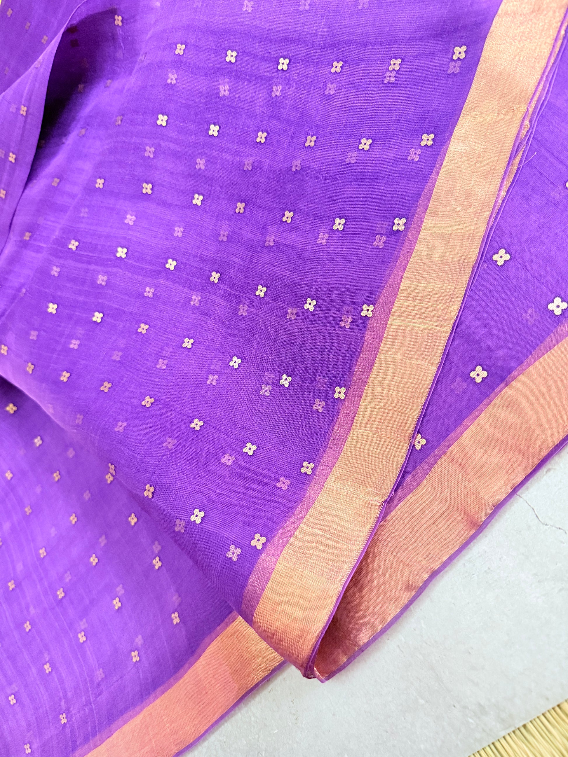 Pure Handwoven Maslin Silk Saree with All-Over Sequins & Matka Silk Blouse