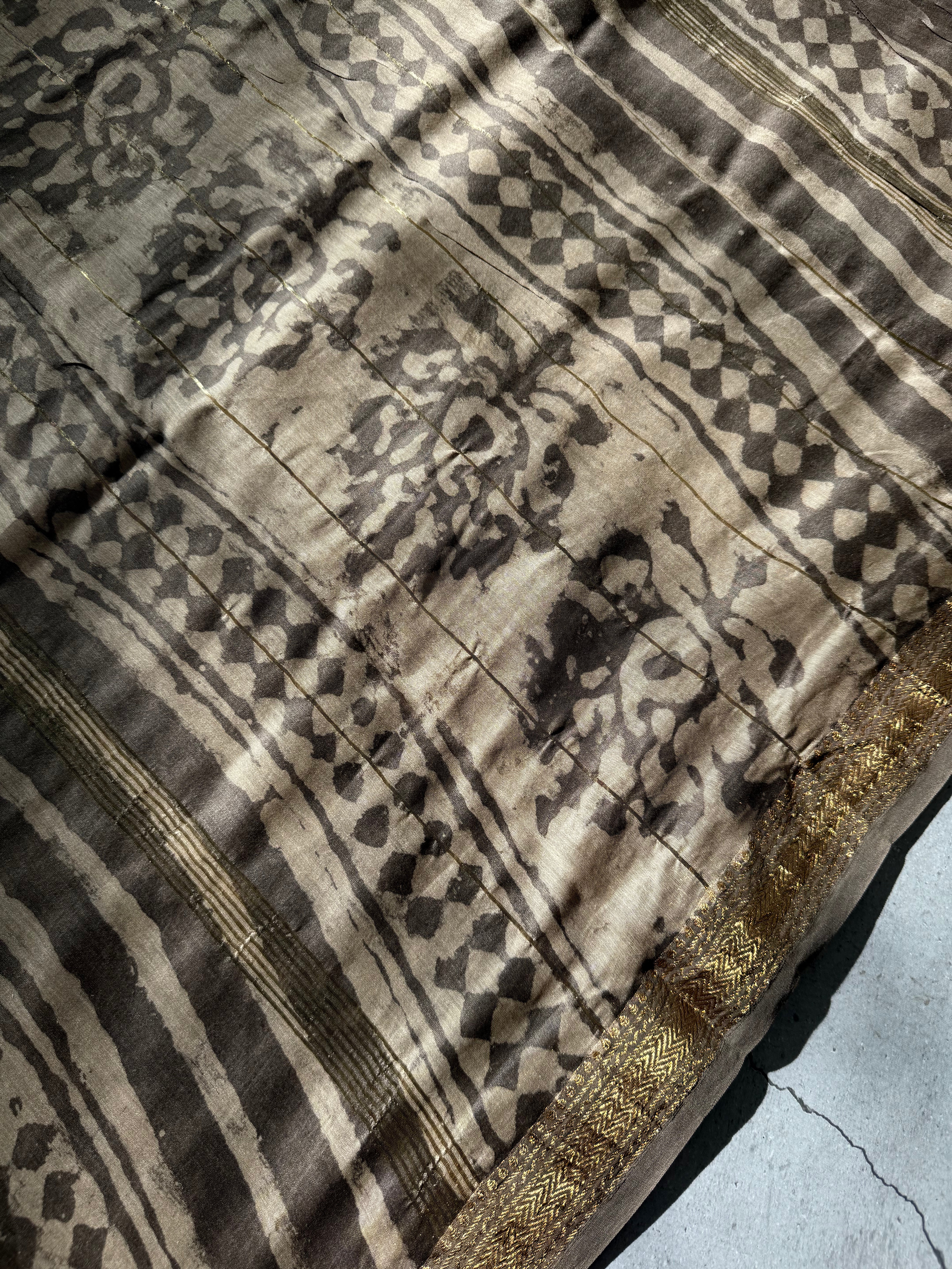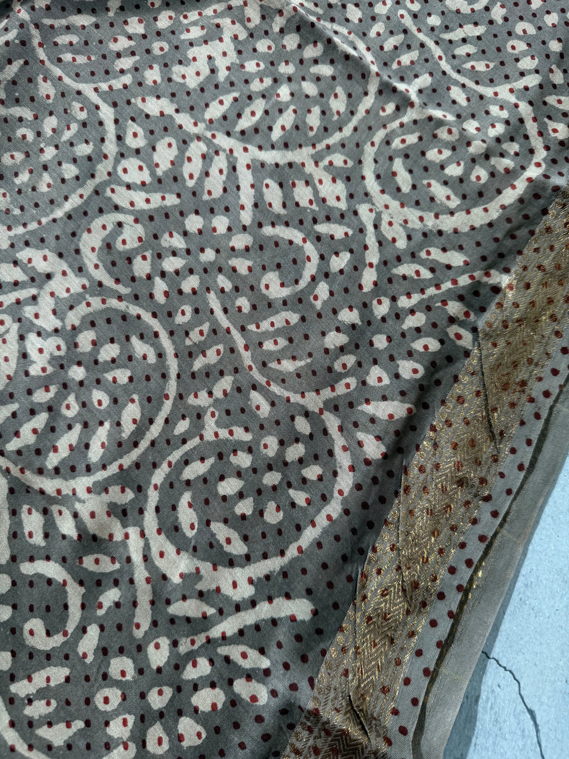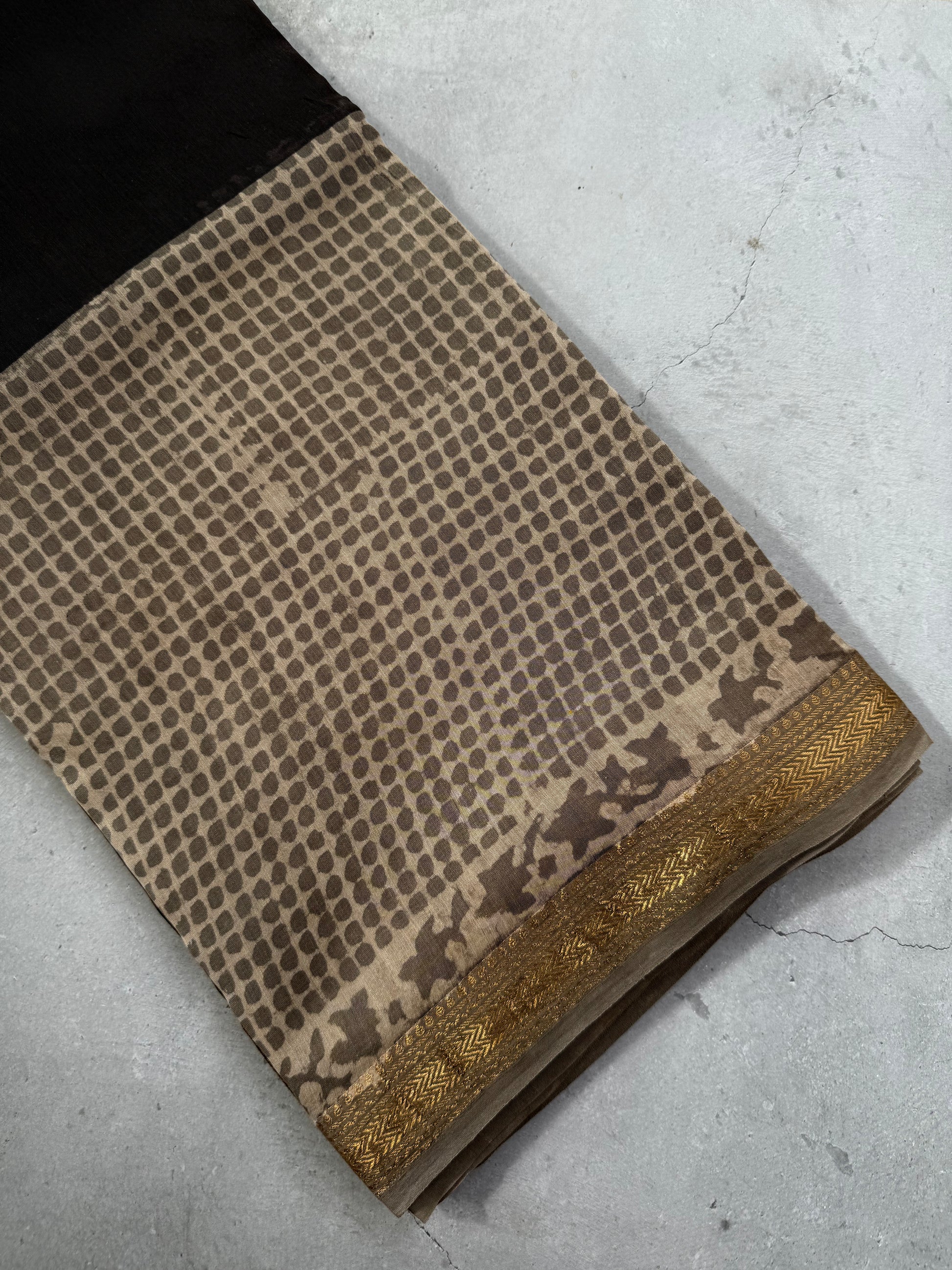 Parijna| Grey and Black Block Printed Maheshwari Saree