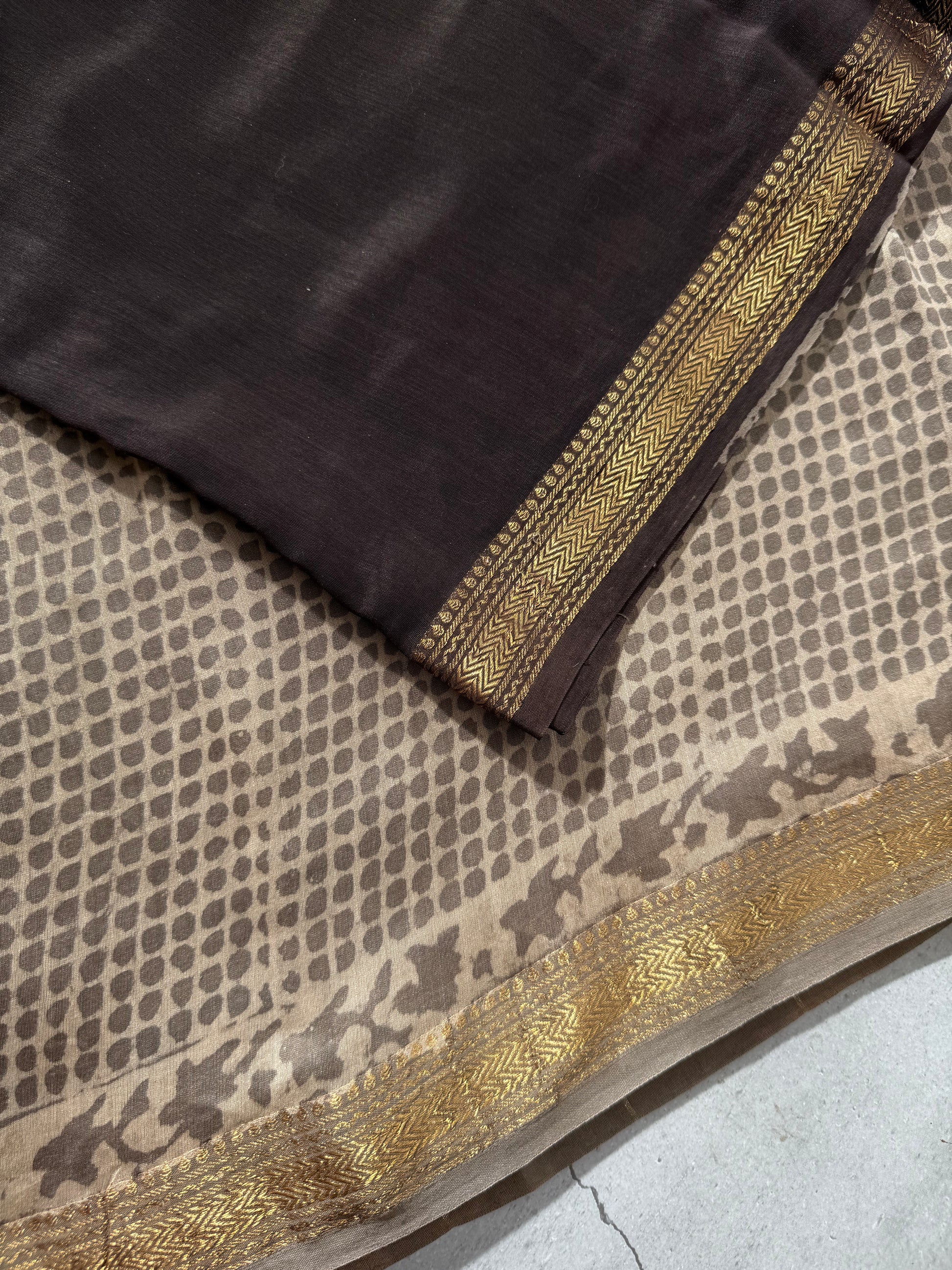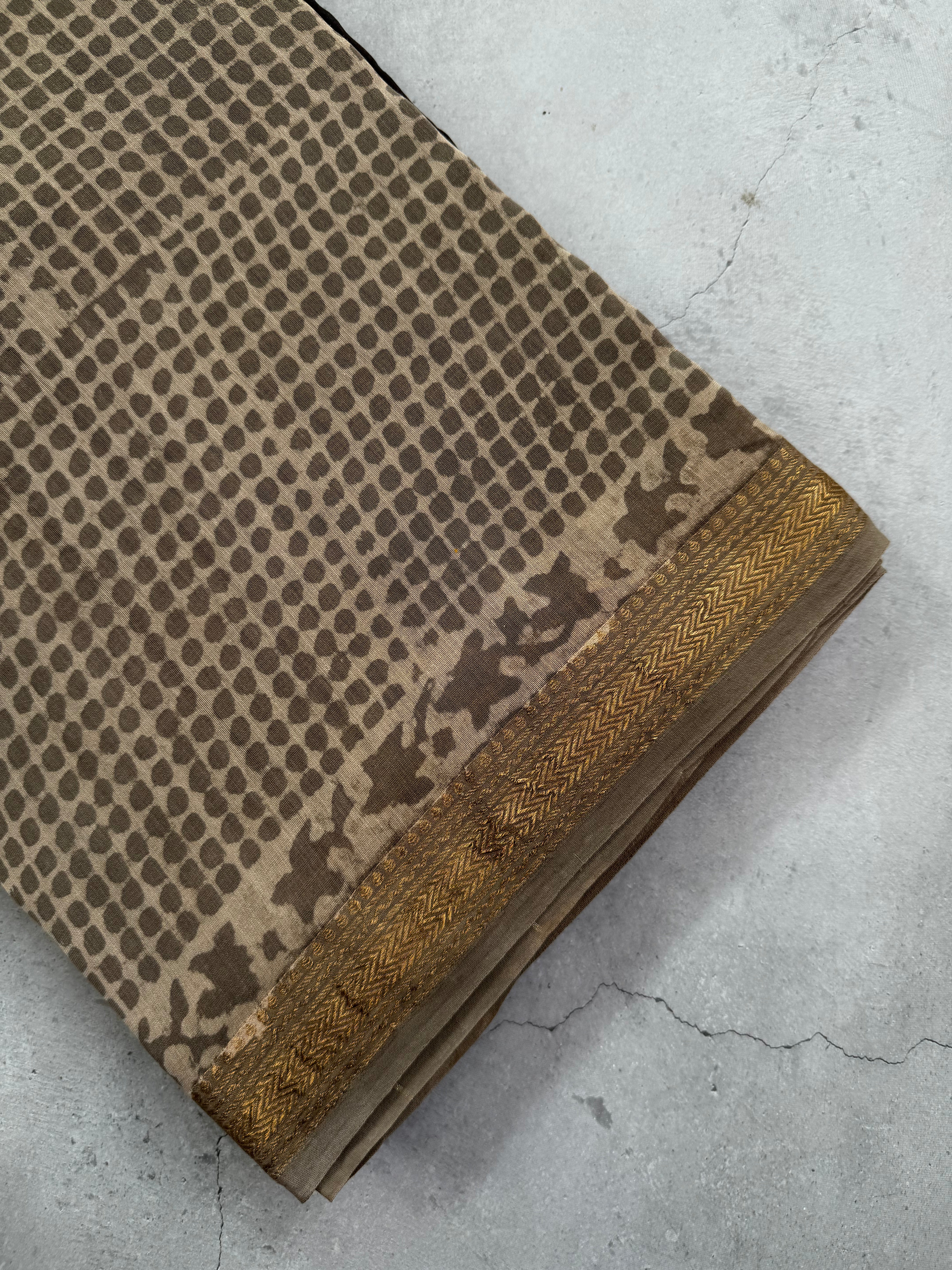 Hand Block Printed Maheshwari Silk-Cotton Saree