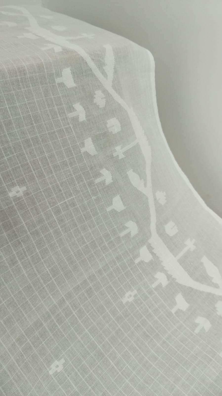 Crafted on soft handwoven cotton, this rich red Jamdani fabric features intricate motifs delicately woven into the weave — not printed — using age-old techniques by skilled artisans. Light, breathable, and versatile, it makes for a perfect blouse that pairs beautifully with both contemporary and traditional sarees.