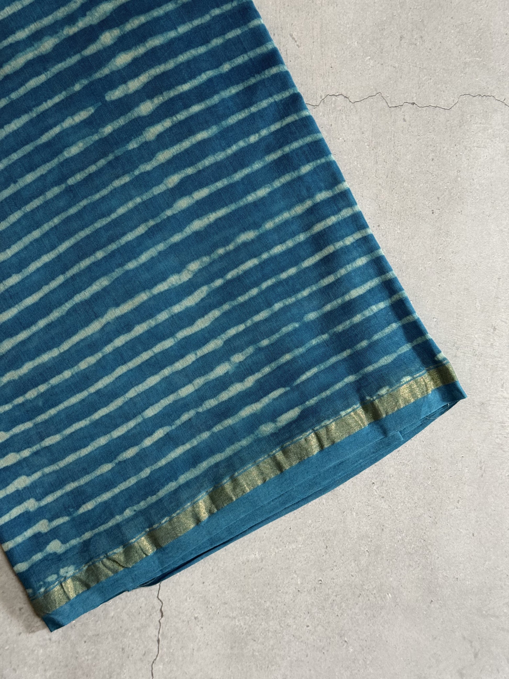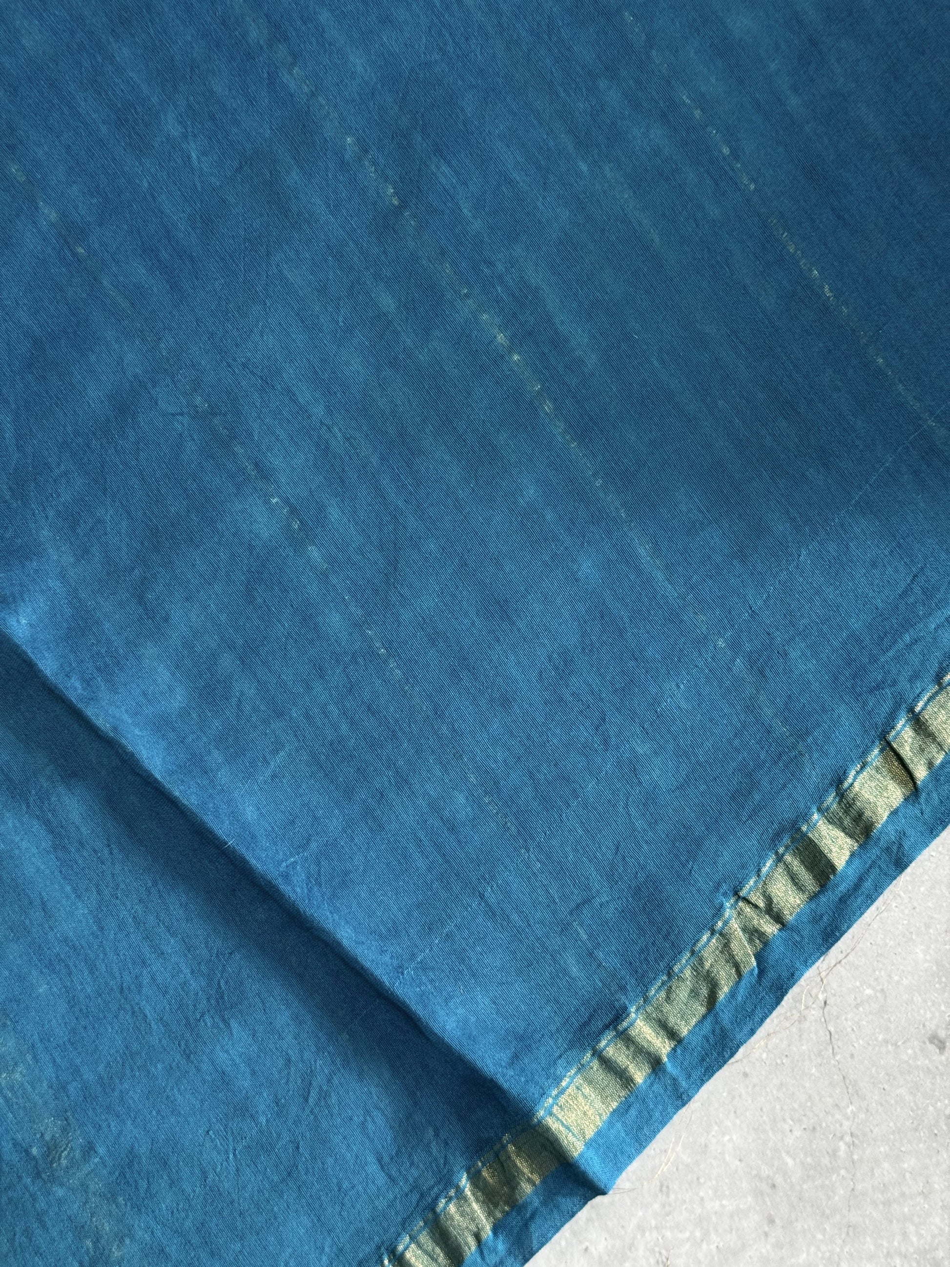 Woven from a delicate blend of silk and cotton, the fabric carries a soft sheen and whisper-light drape. What makes this drape stand apart is the hand block printing — done meticulously by artisans using natural dyes and centuries-old techniques. The combination of sheer elegance and detailed artistry makes it a versatile choice for mindful dressing, whether it's a festive gathering or a graceful day event.