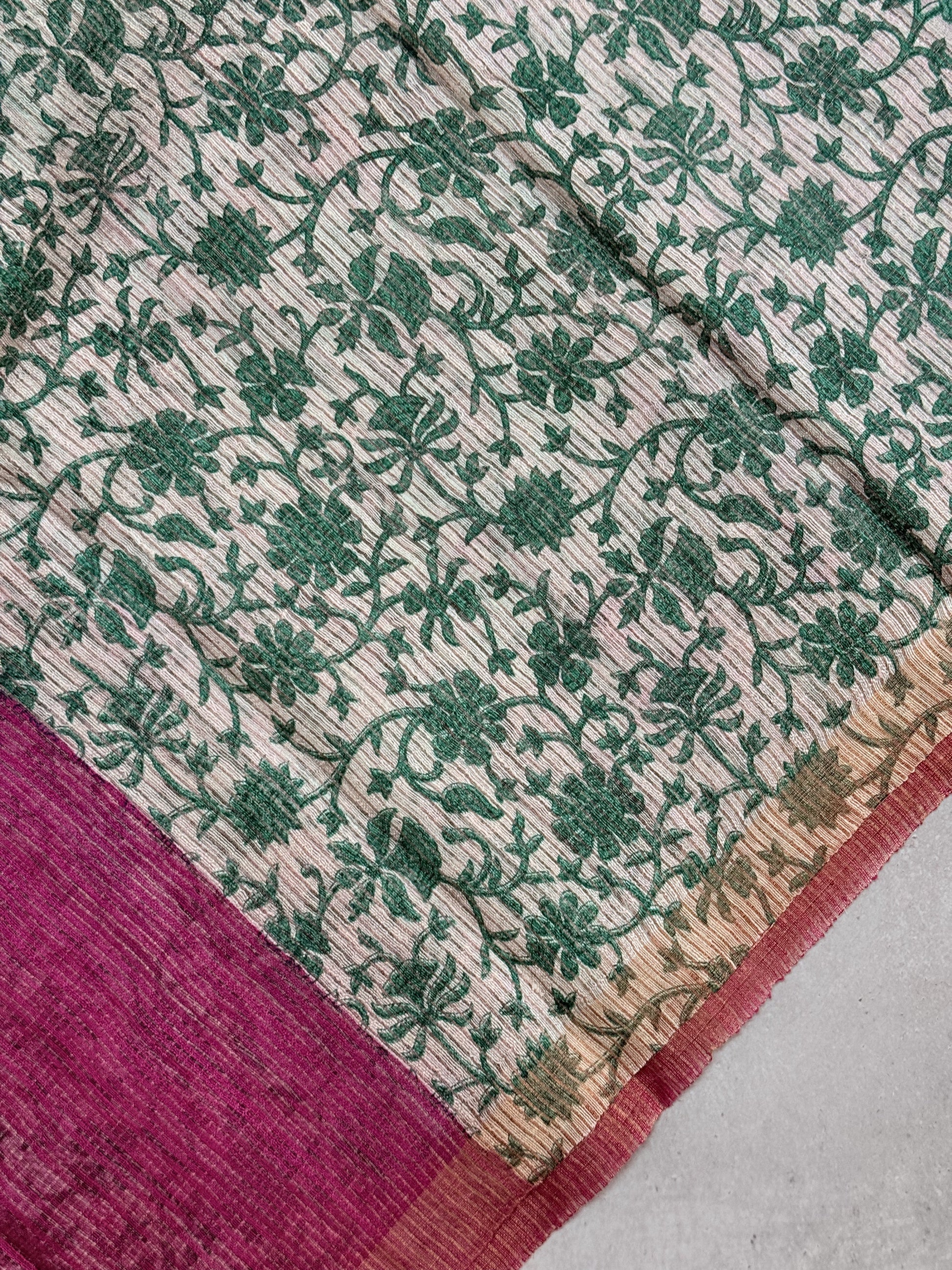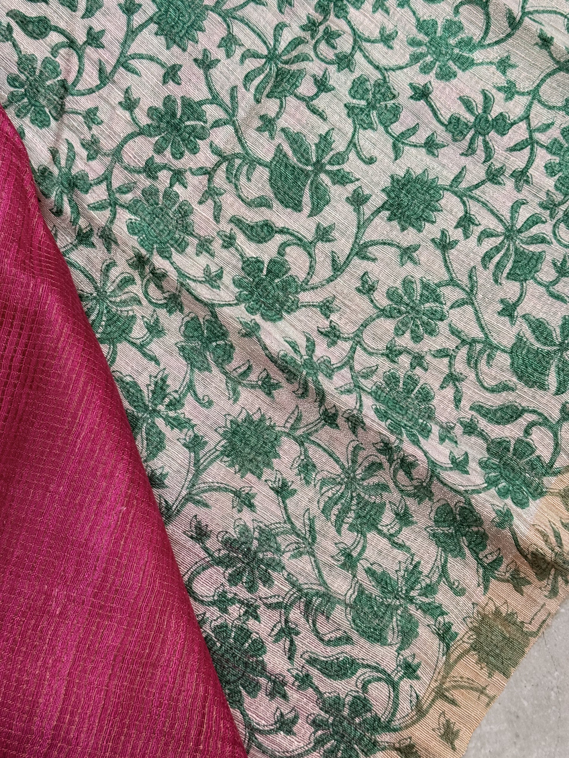 Desi Pure Handloom Tussar Silk sarees epitomize luxury and craftsmanship, woven with the finest Tussar silk to create a rich, textured fabric. Known for its natural golden hue and softness, each saree is handcrafted by skilled artisans, ensuring unmatched quality and attention to detail. Featuring traditional motifs, intricate patterns, and exquisite borders, these sarees offer a perfect blend of elegance and heritage. The high-quality silk drapes beautifully, making it ideal for weddings, celebrations, and special occasions, while celebrating the timeless artistry of handloom weaving.