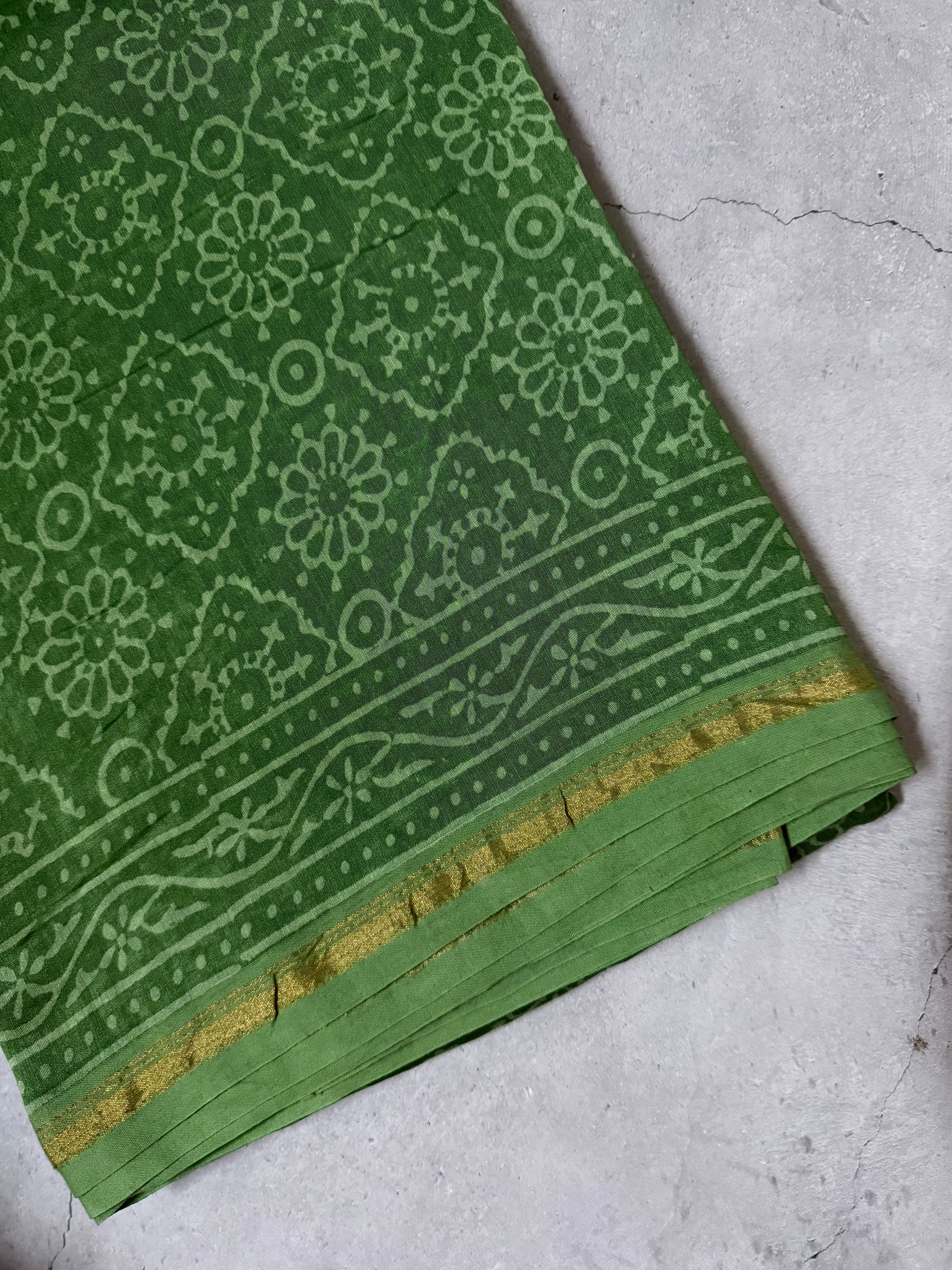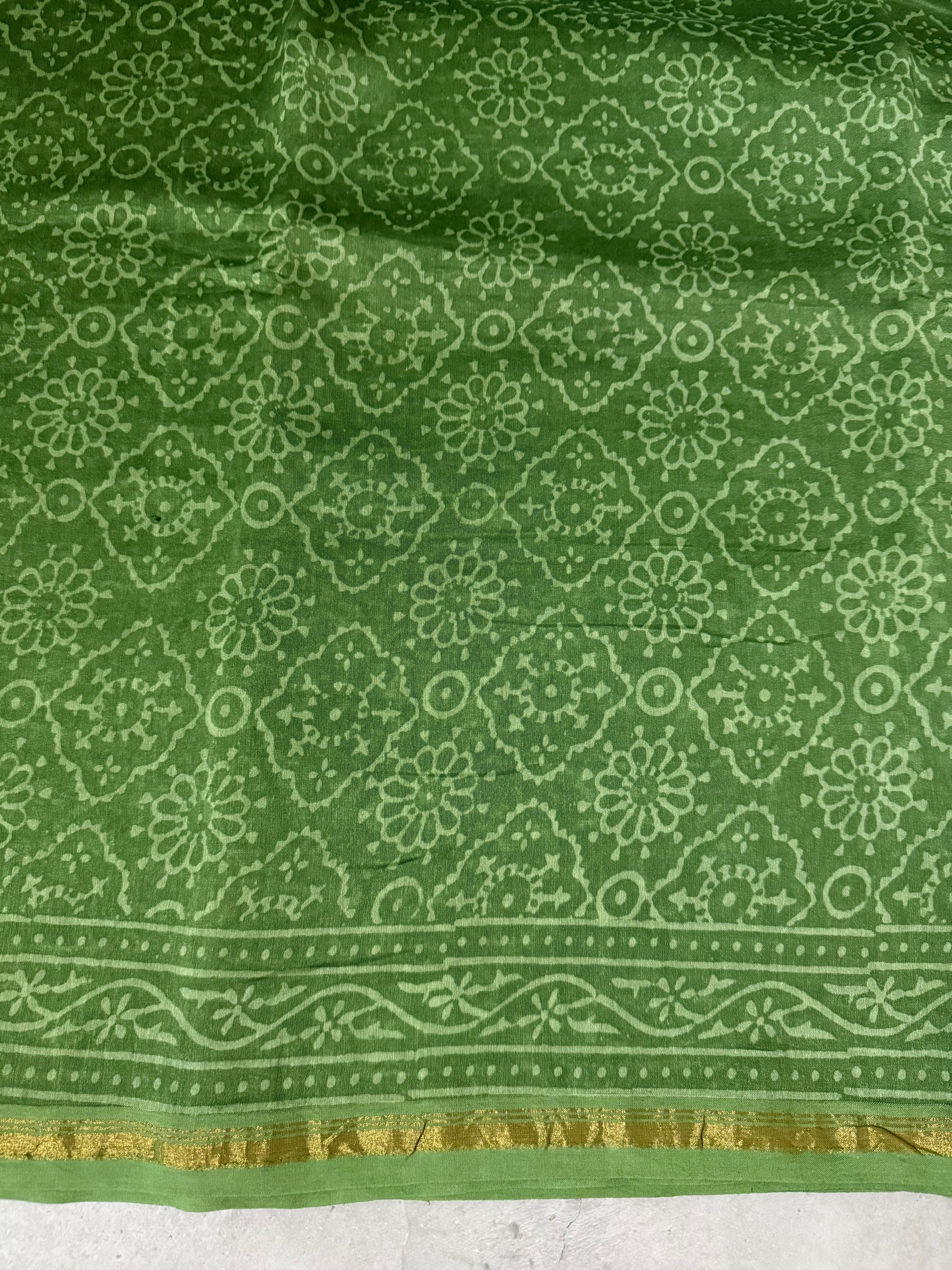 RatnaPushpa | Green Block Printed Chanderi Saree