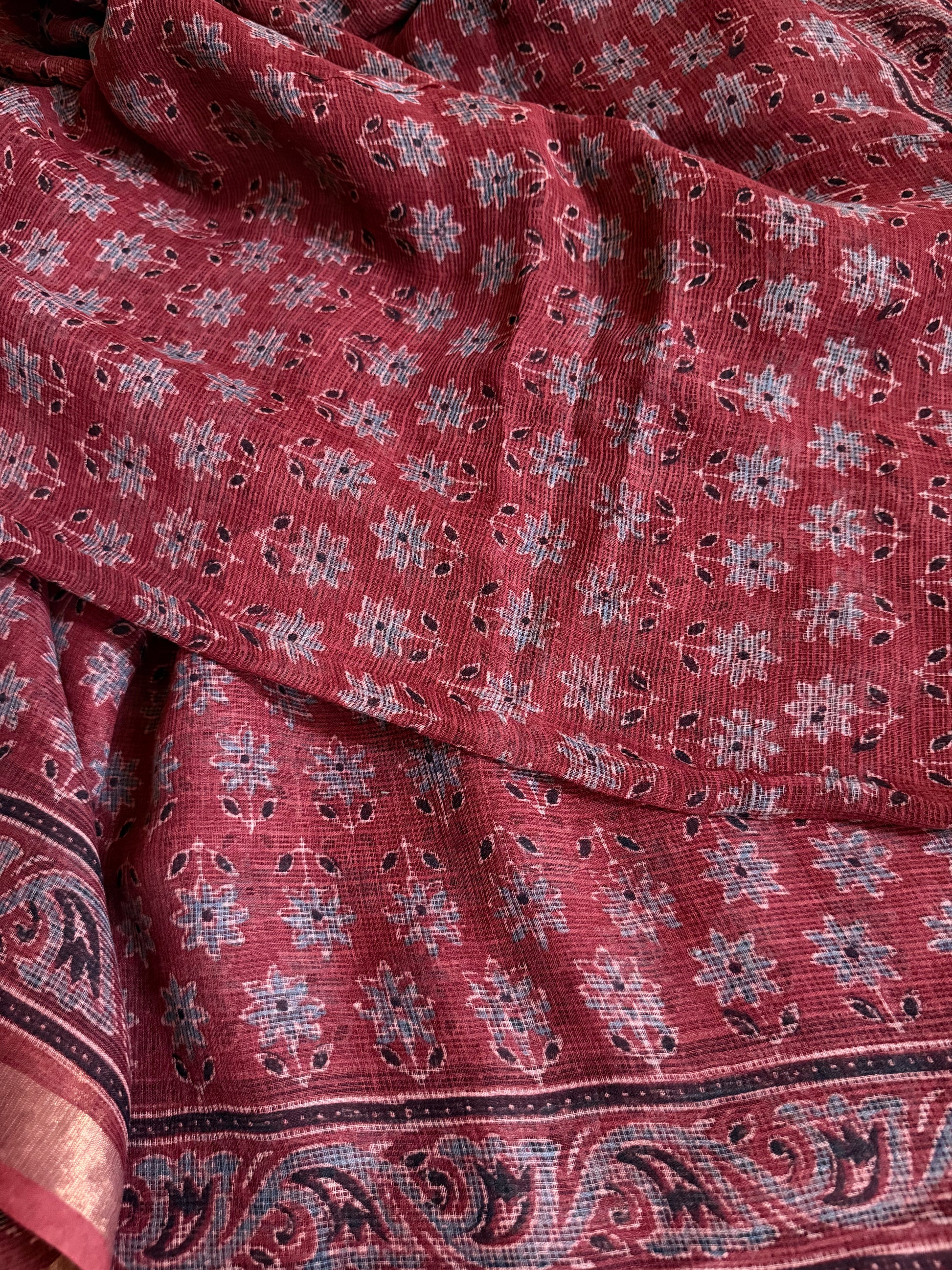 Rudhrika | Ajrakh Hand Block Printed Kota Saree