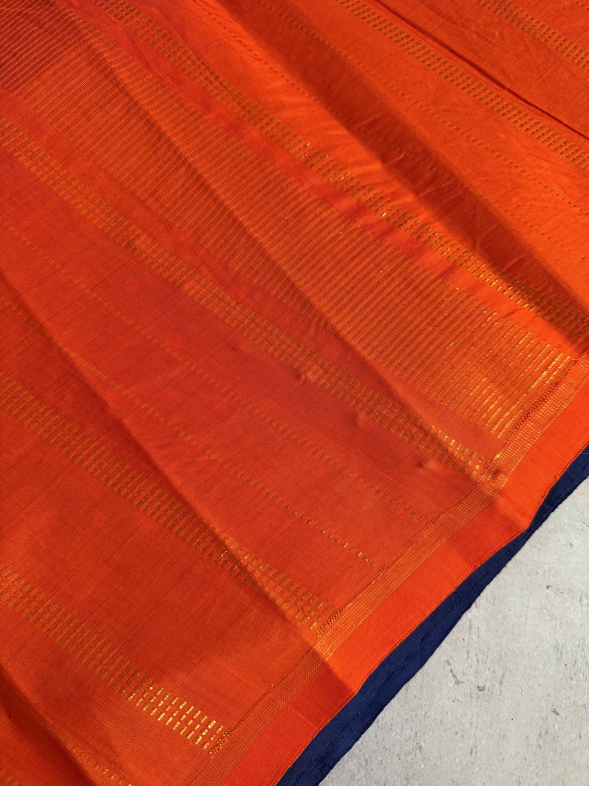 Sandhana | Navy Blue and Orange Crafted Kanjivaram silk saree