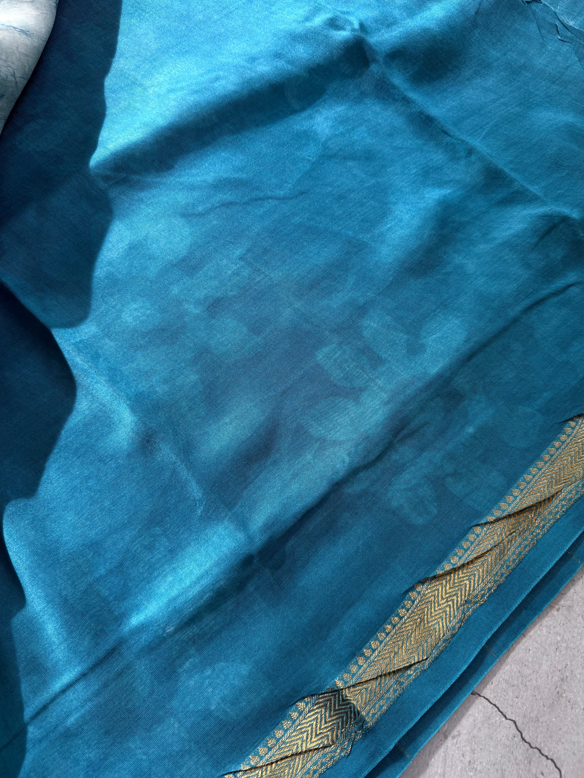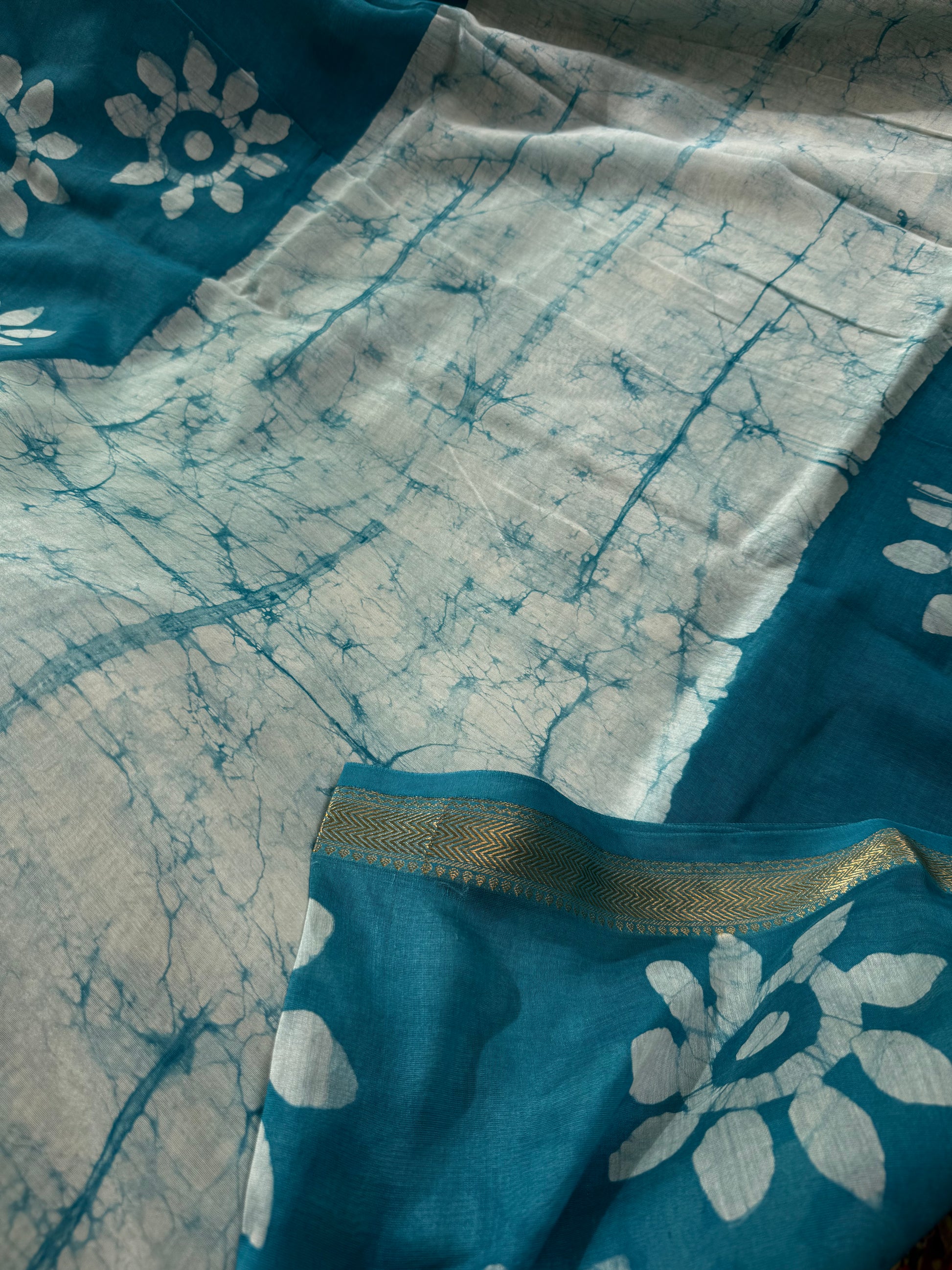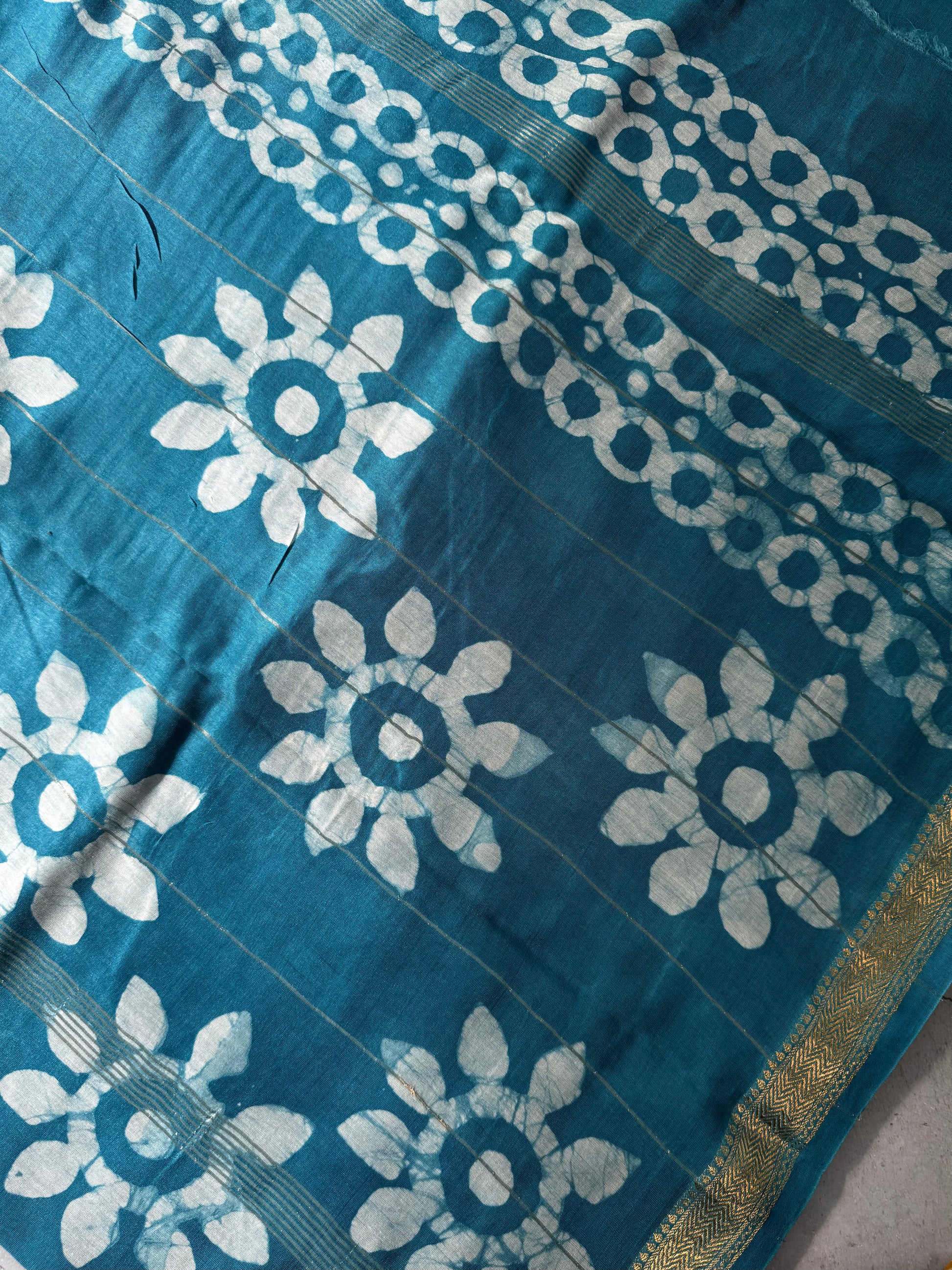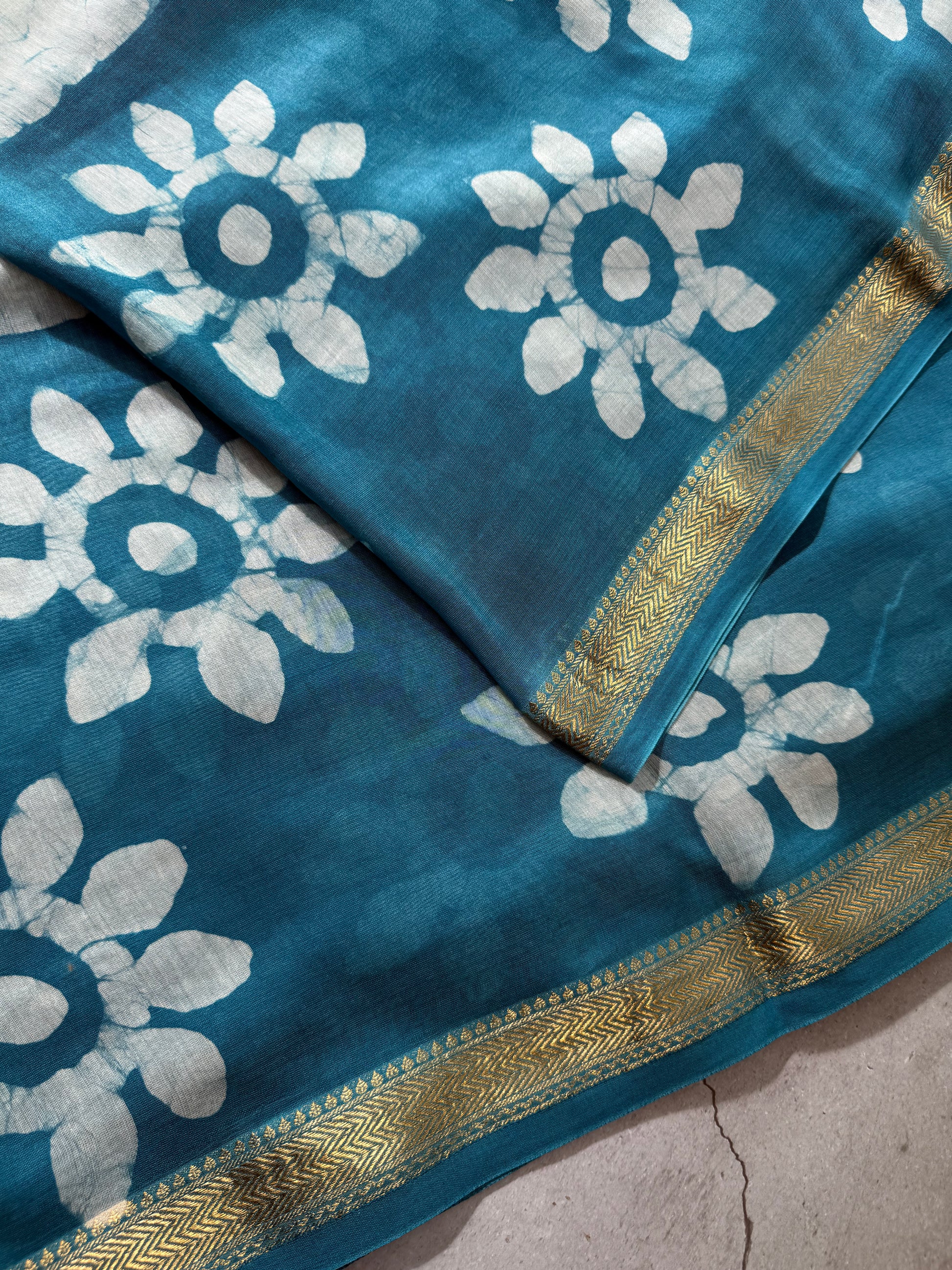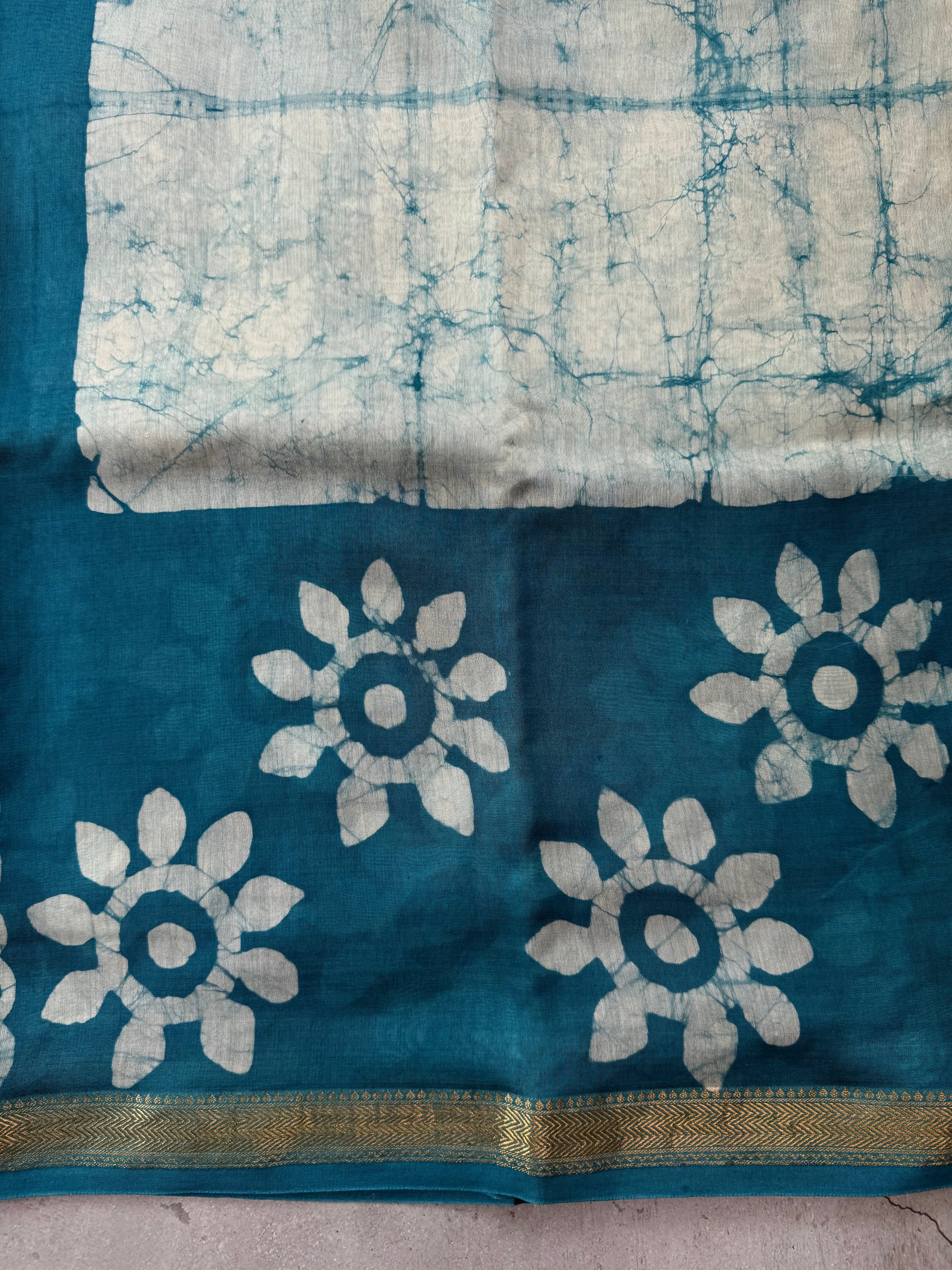 Shilaa| Blue and white Block Printed Maheshwari Saree