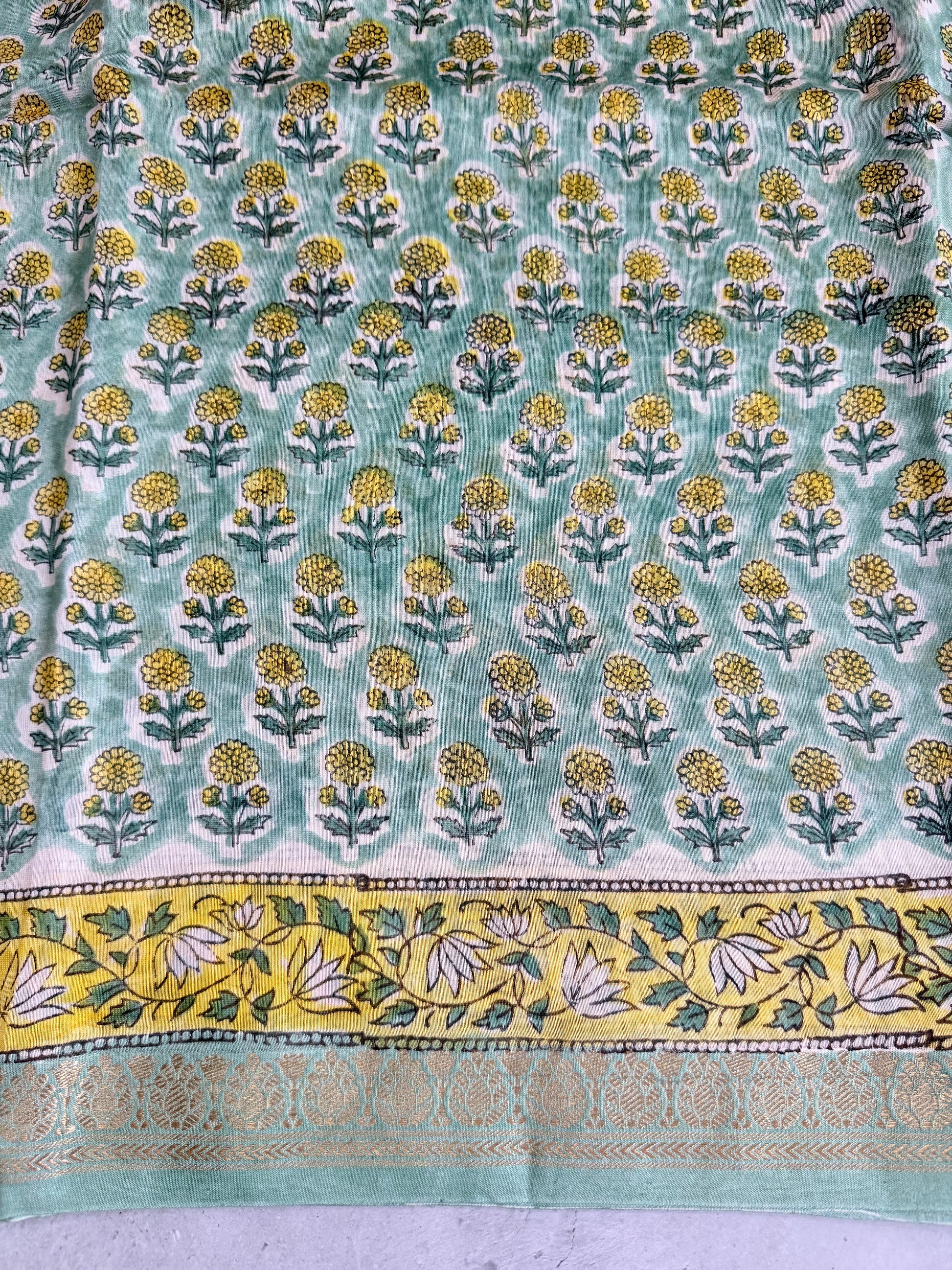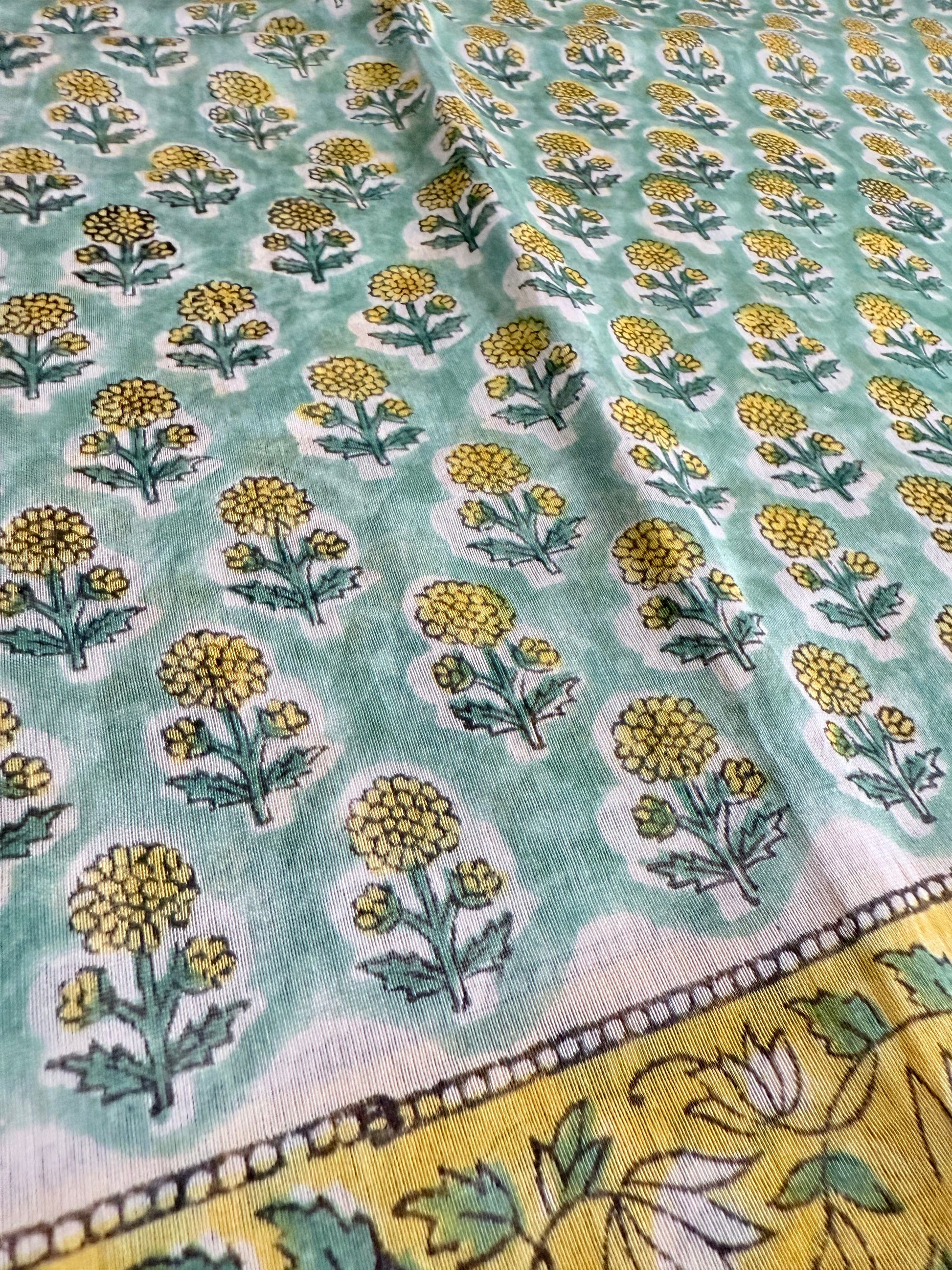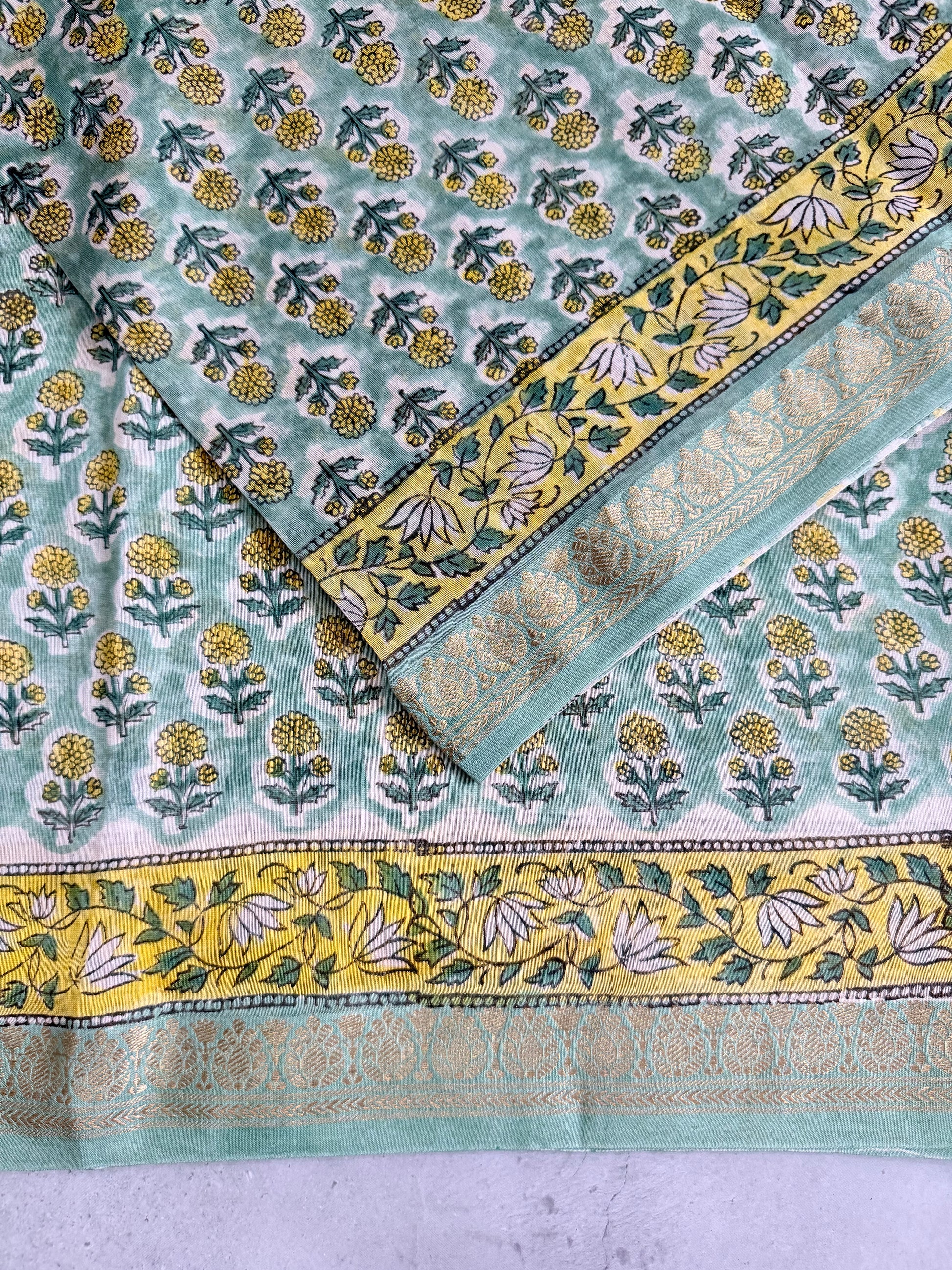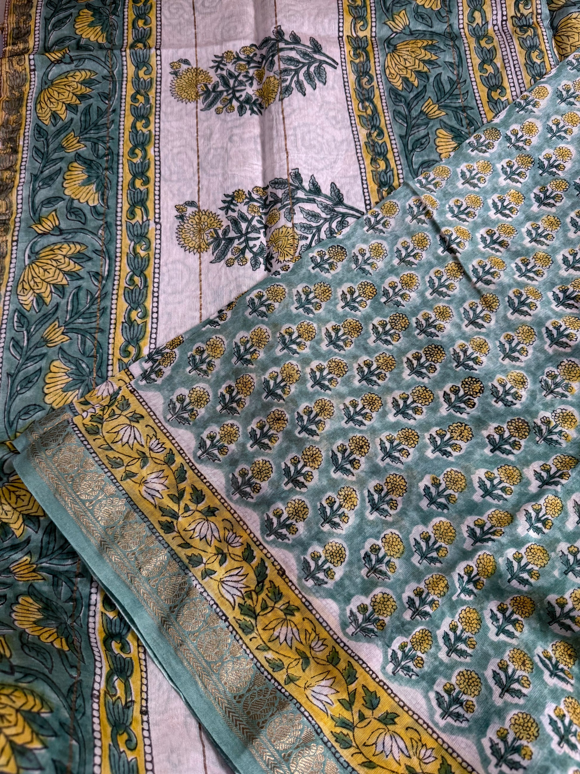 Shubhra | Pastle Green Block Printed Maheshwari Saree