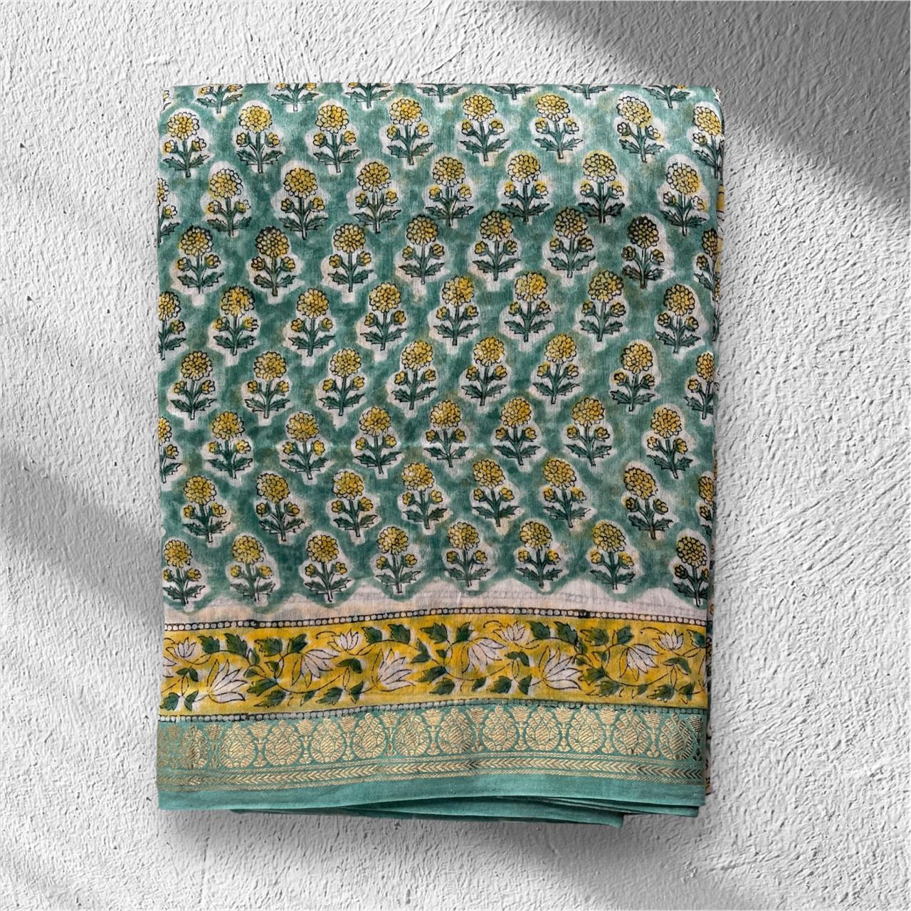 Premium Hand Block Printed Maheshwari Silk-Cotton Saree