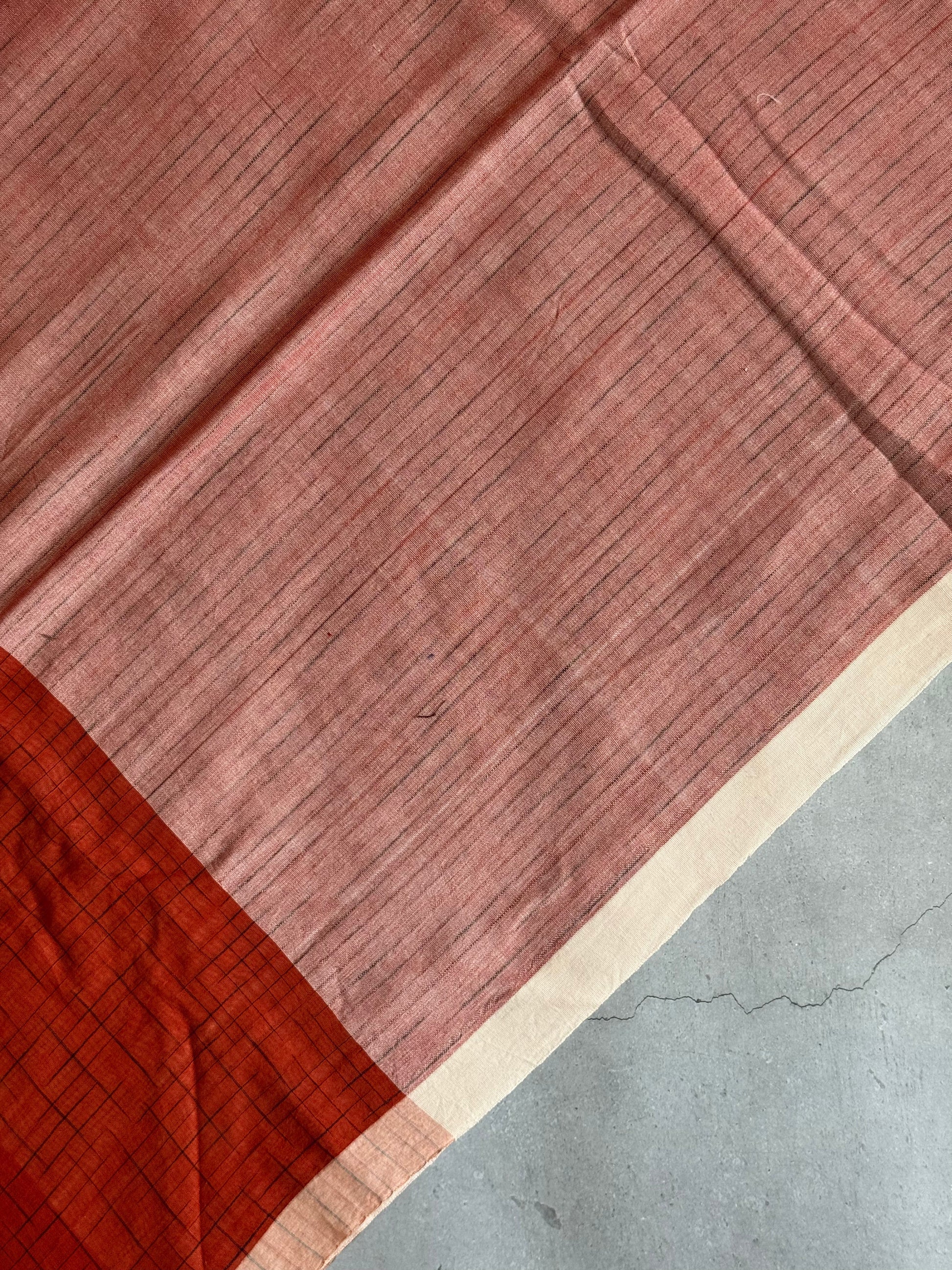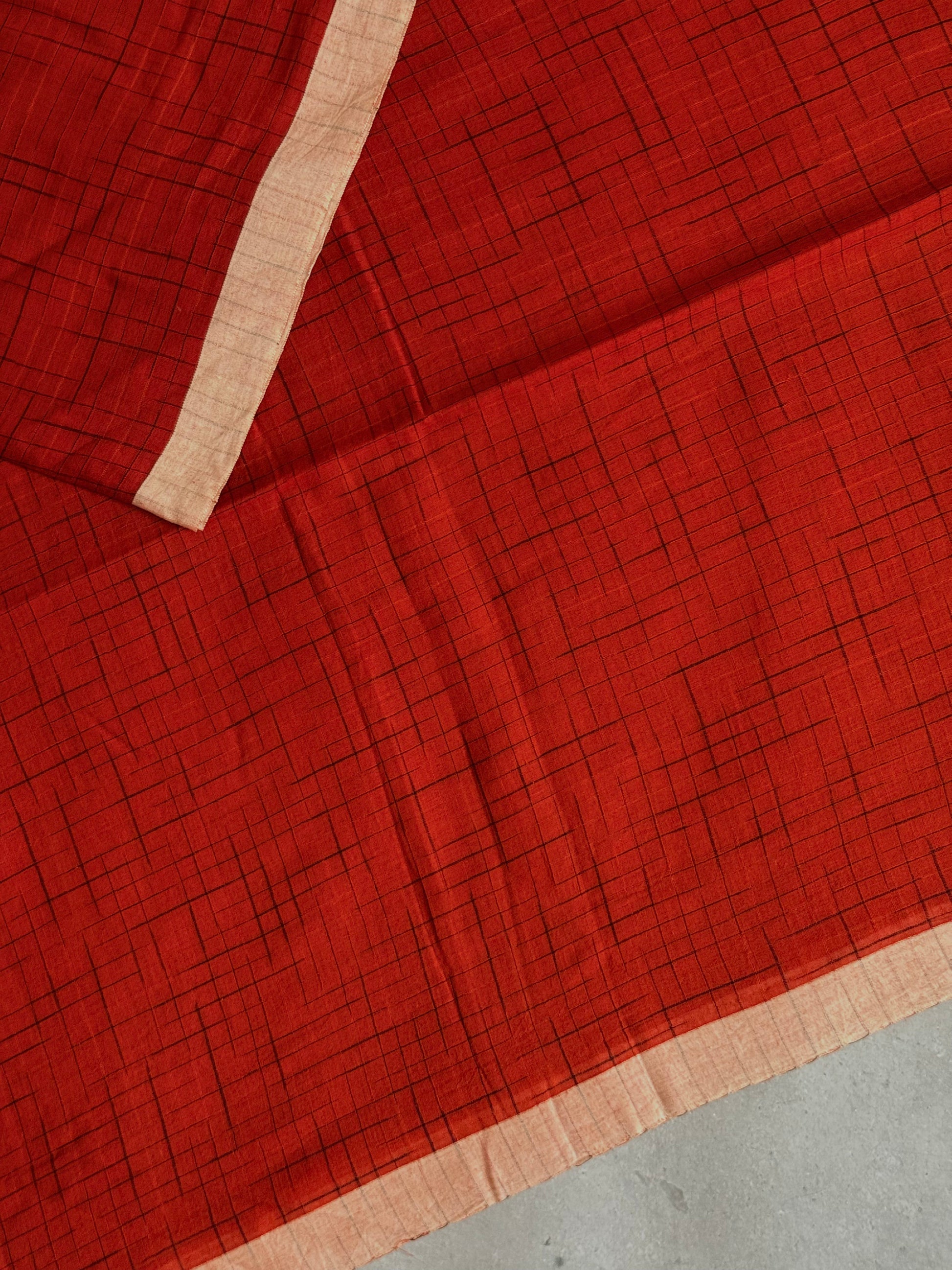 Sindhoora | Orange and White Broken Checks Bengal Cotton Saree