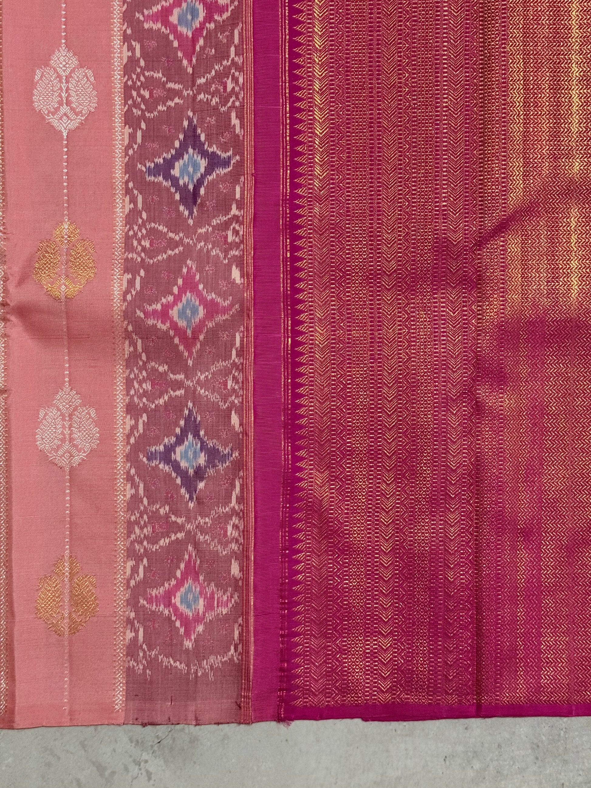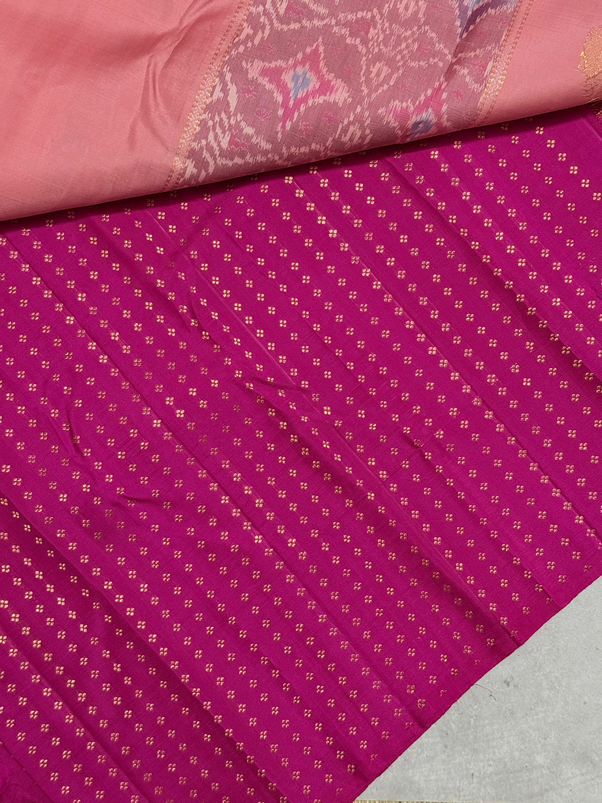 An Authentic Handwoven Kanjivaram Silk Saree is the pinnacle of traditional South Indian craftsmanship, renowned for its regal elegance and timeless beauty. Woven with the finest pure silk, each saree showcases the signature Kanjivaram weave, where the pallu and borders are intricately designed with rich motifs and often adorned with pure zari (gold or silver threads). The craftsmanship reflects centuries of heritage, with each piece being meticulously handwoven by skilled artisans. Ideal for weddings, festivals, and special occasions, this saree offers a luxurious drape and unmatched grandeur, making it a truly cherished addition to any wardrobe.