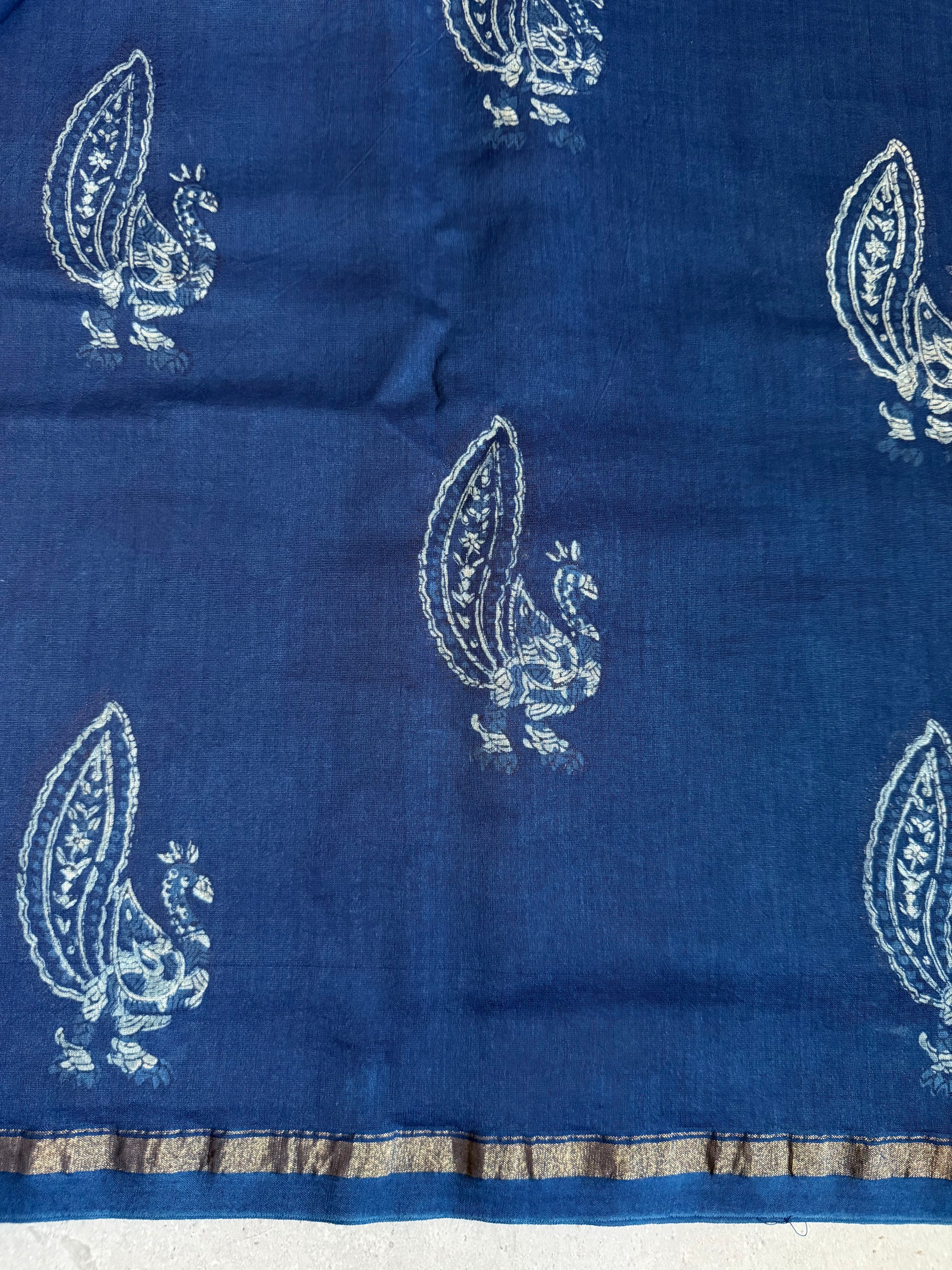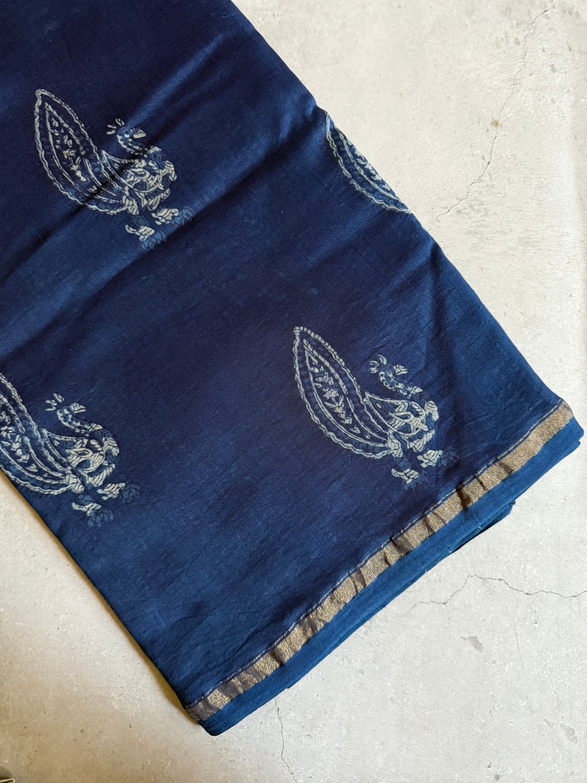 Tamalika | Indigo Akola Block Printed Chanderi Saree