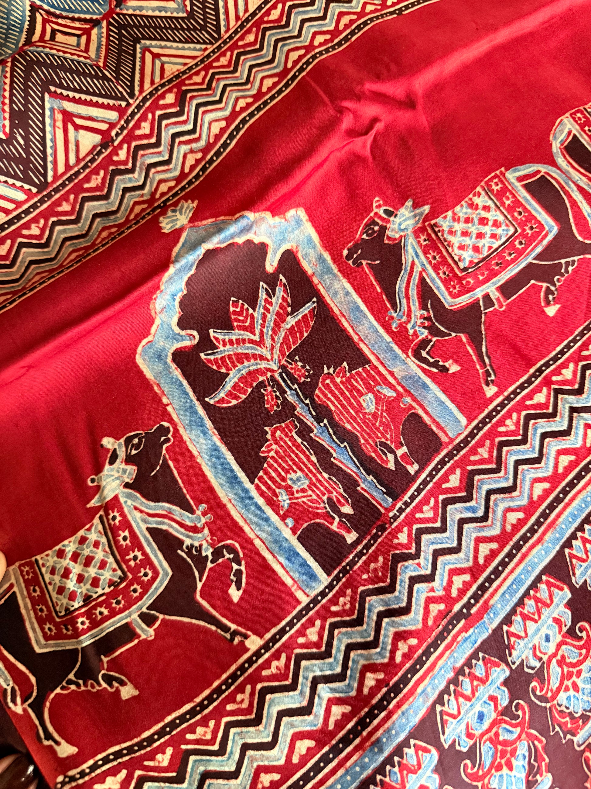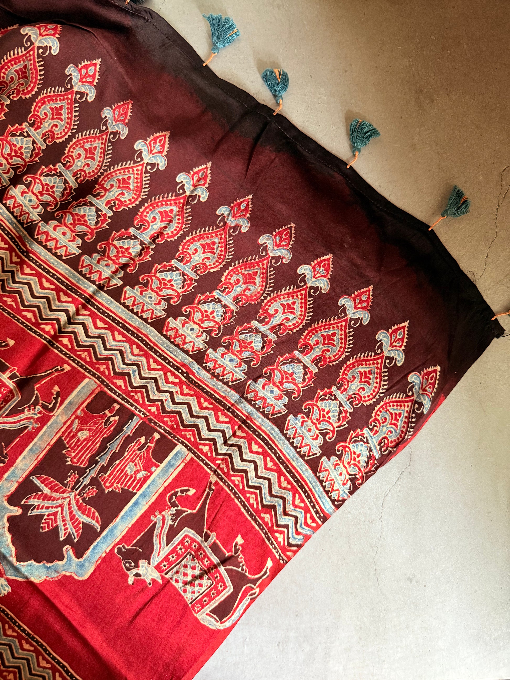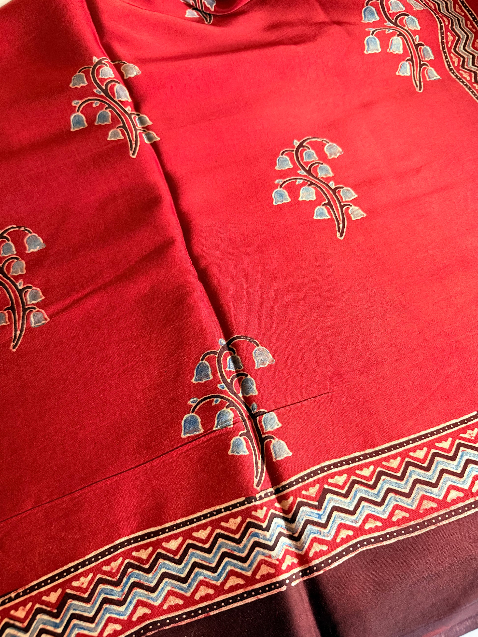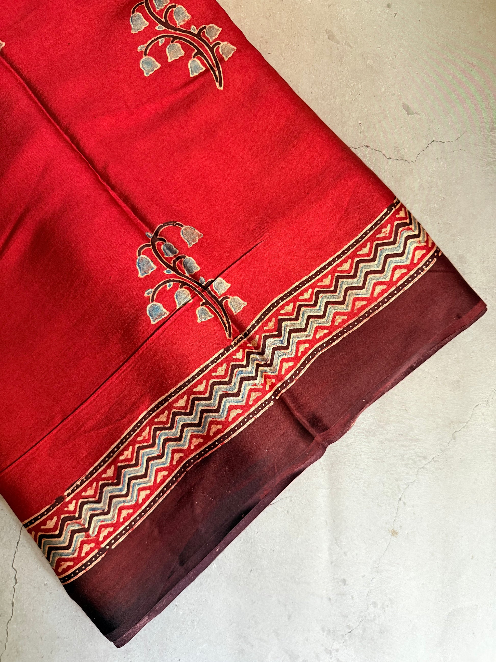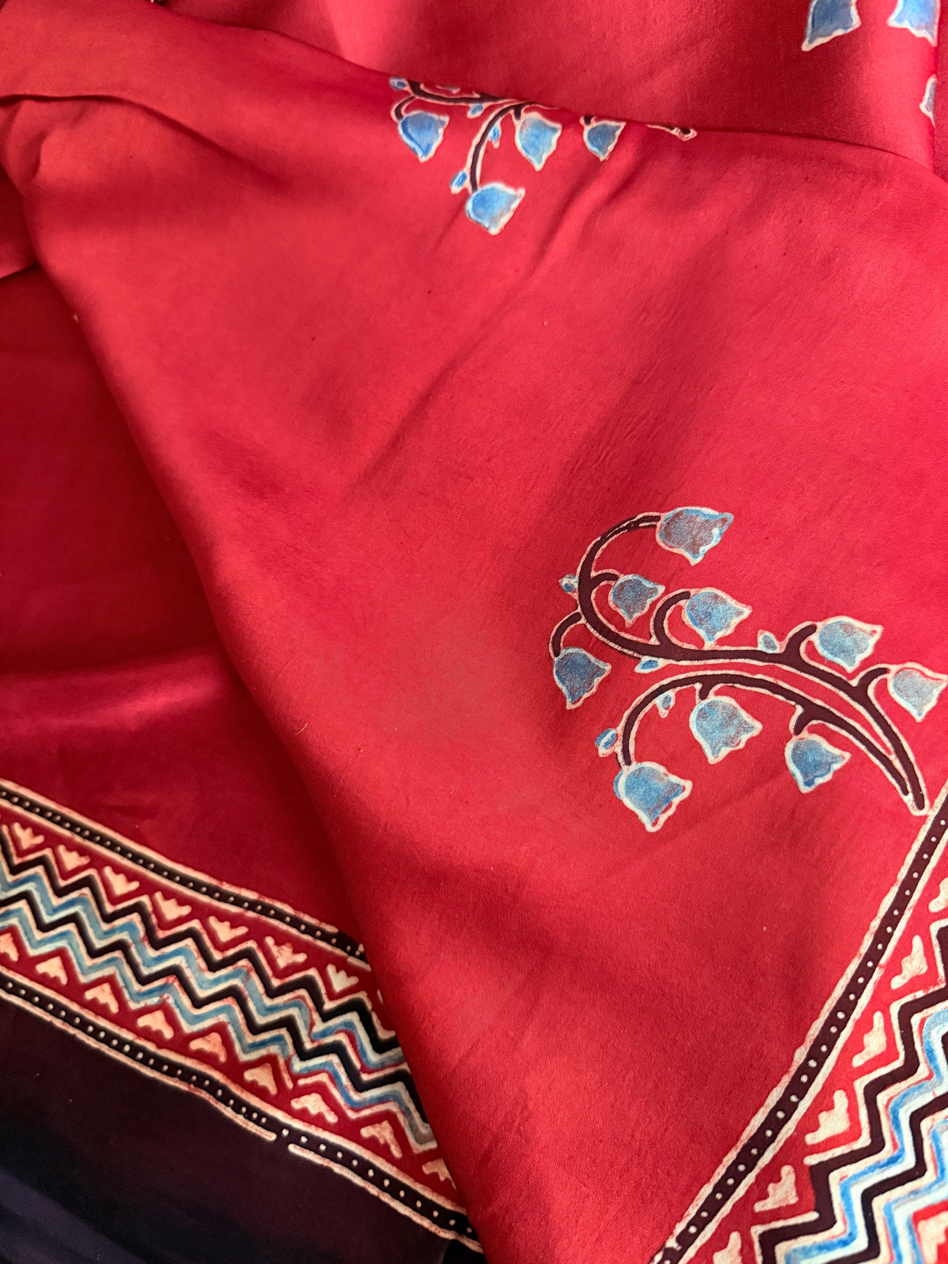 Authentic Ajrakh Handblock Printed Modal Silk Saree