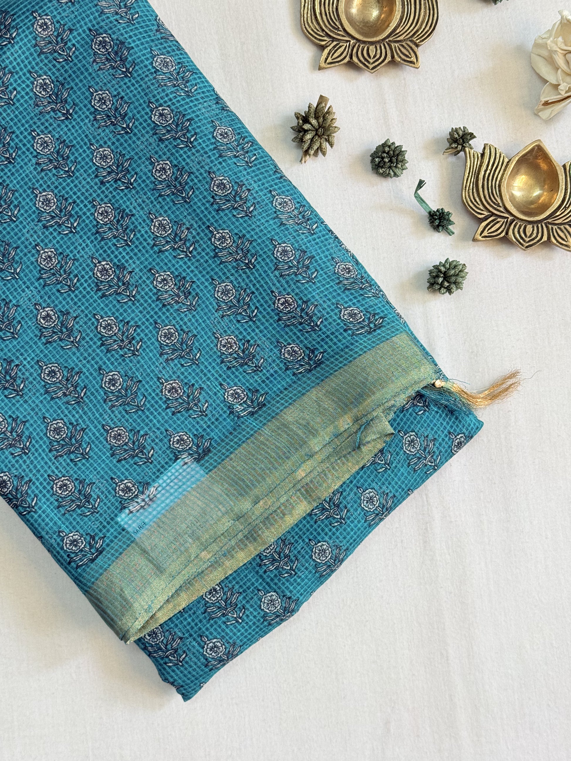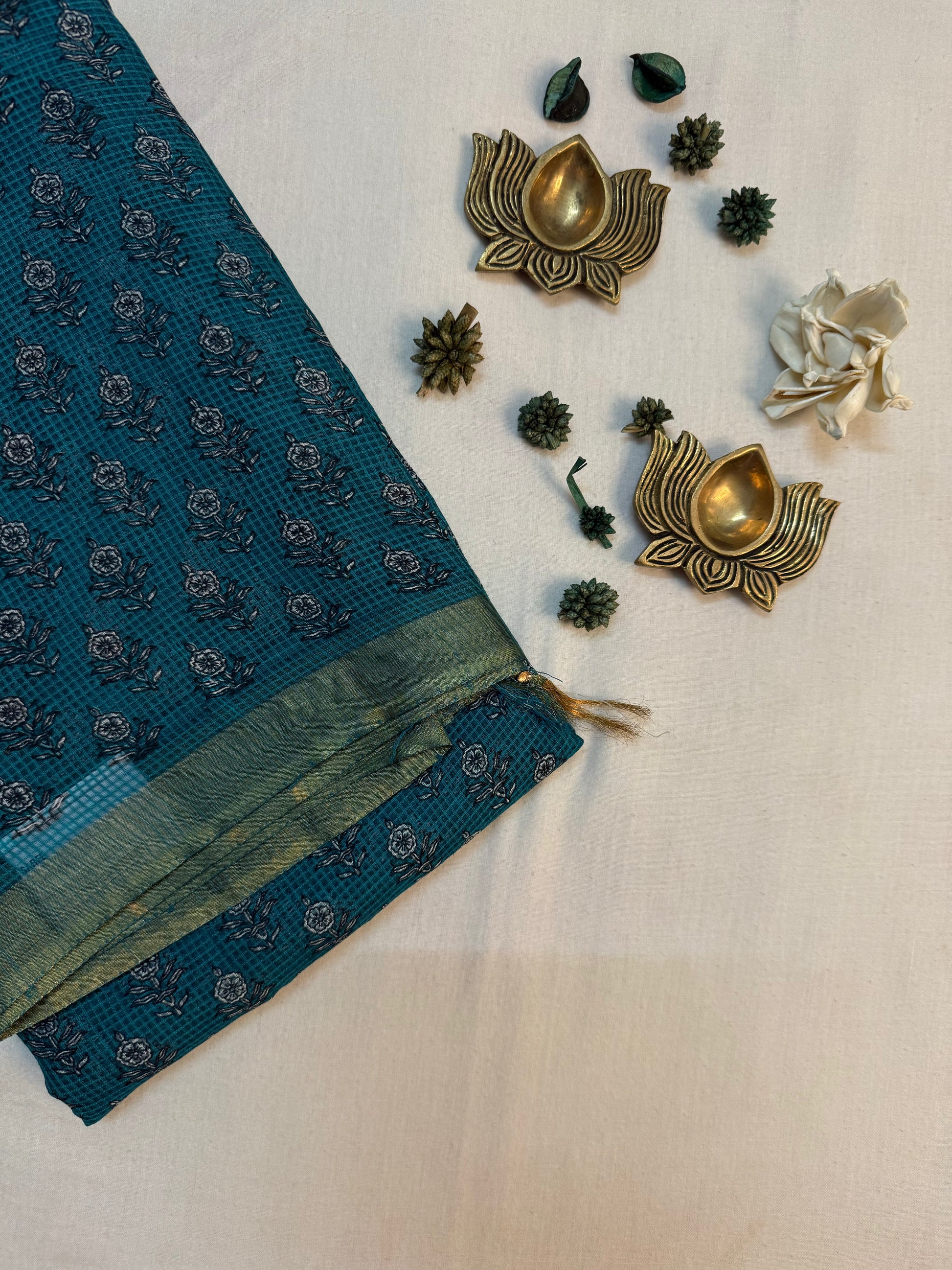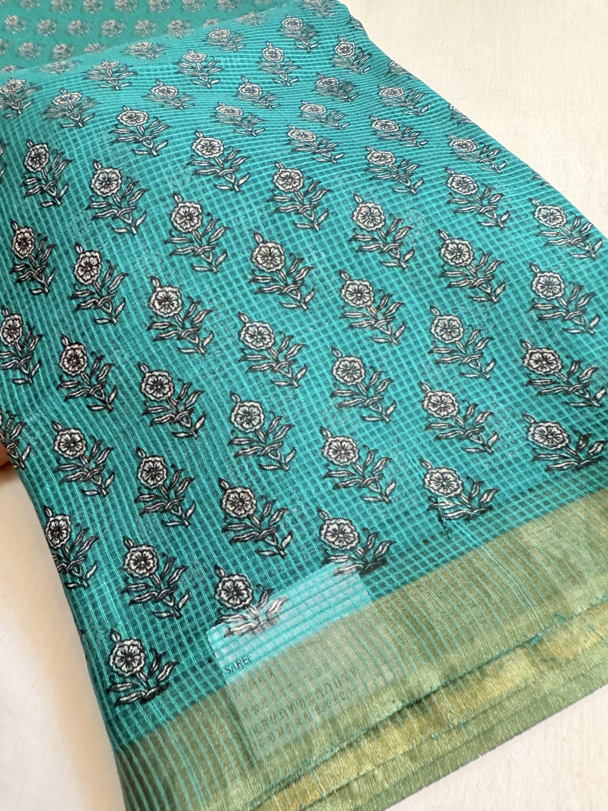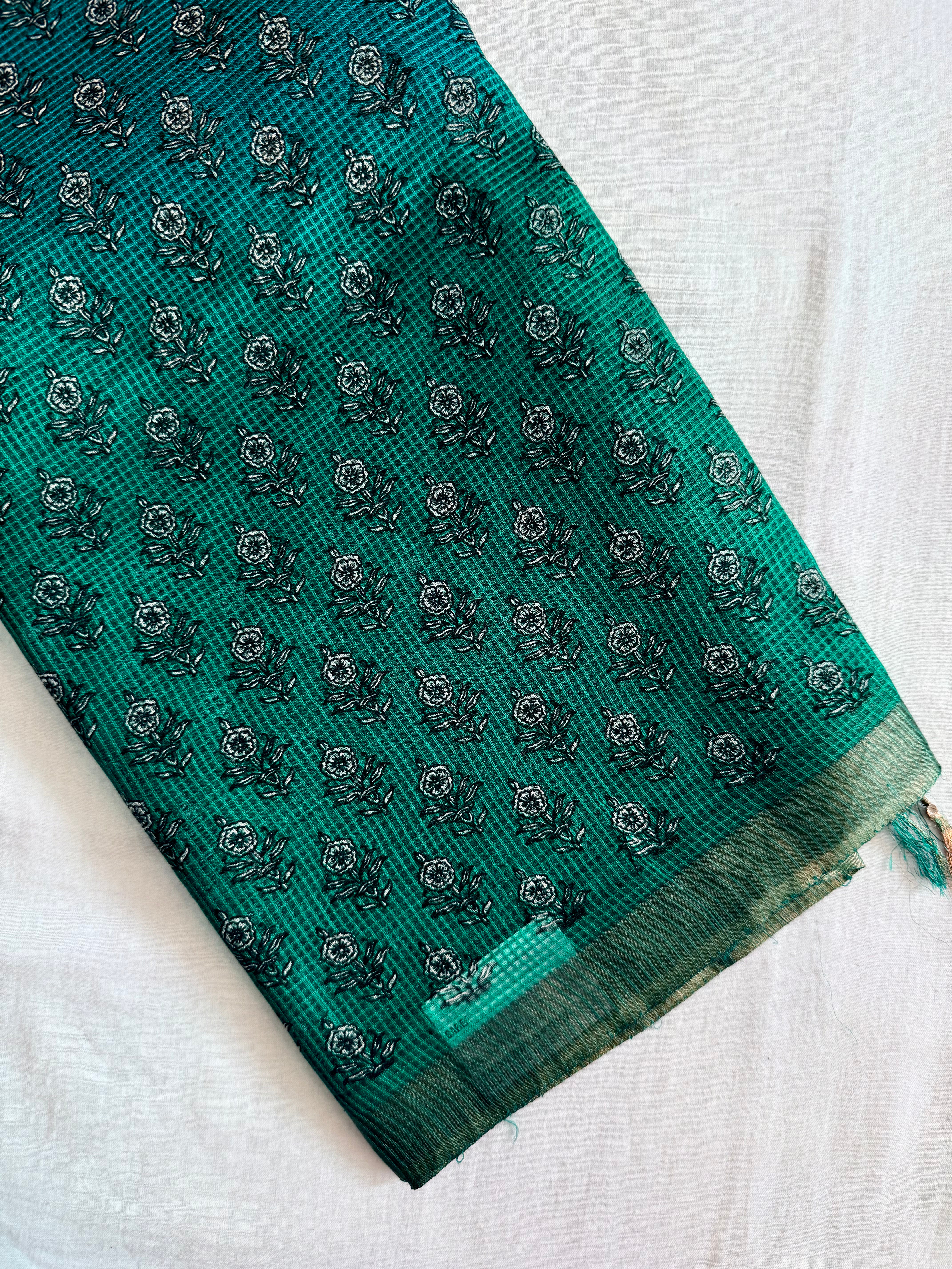 Thanuja | Green Floral Printed Kota Tussar Silk Saree
