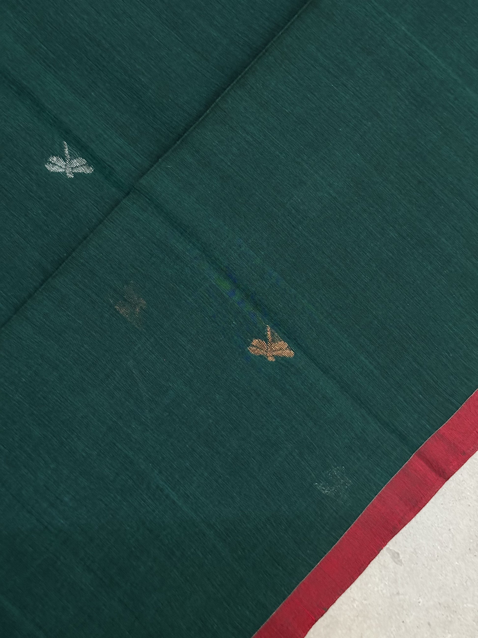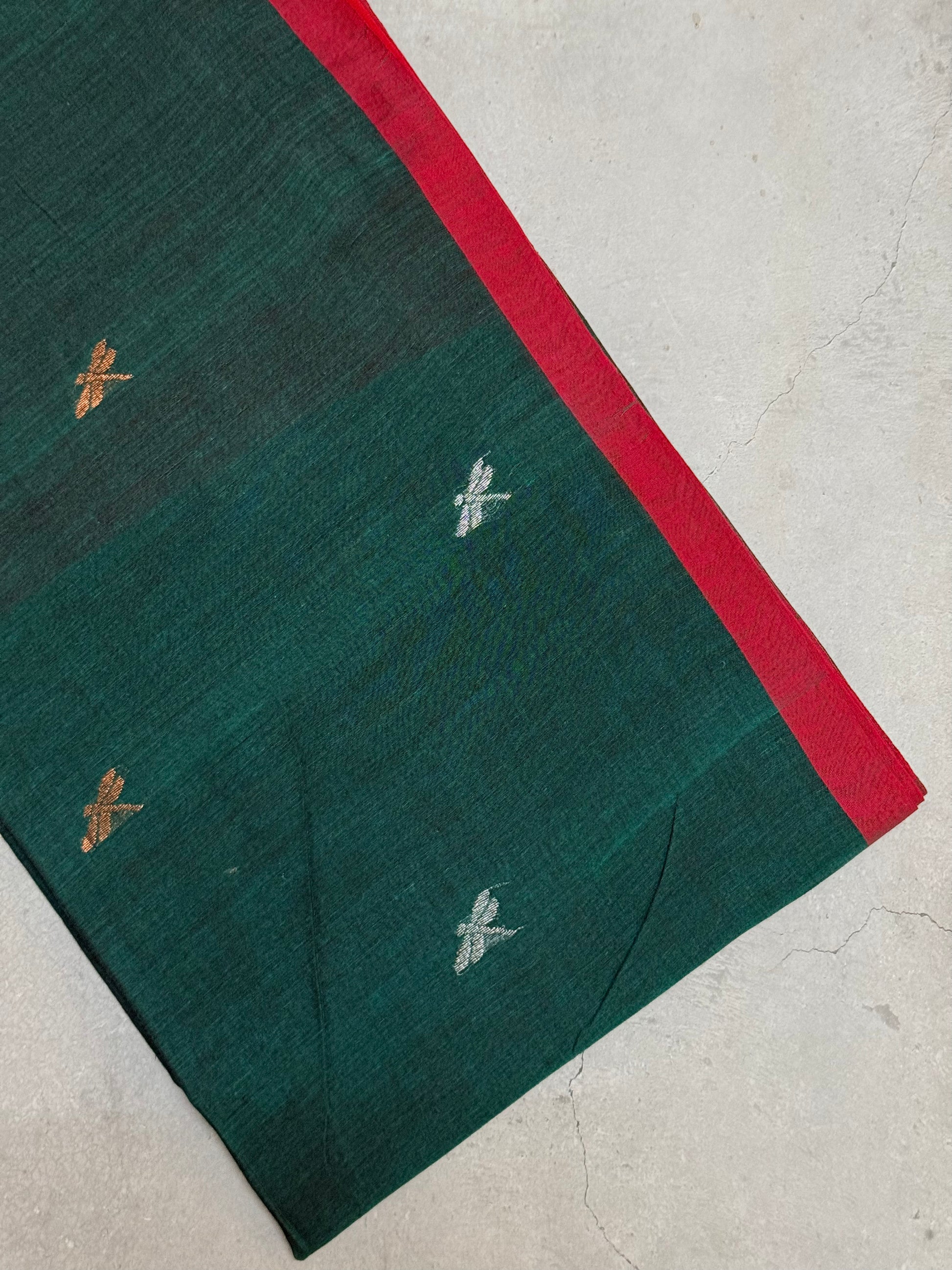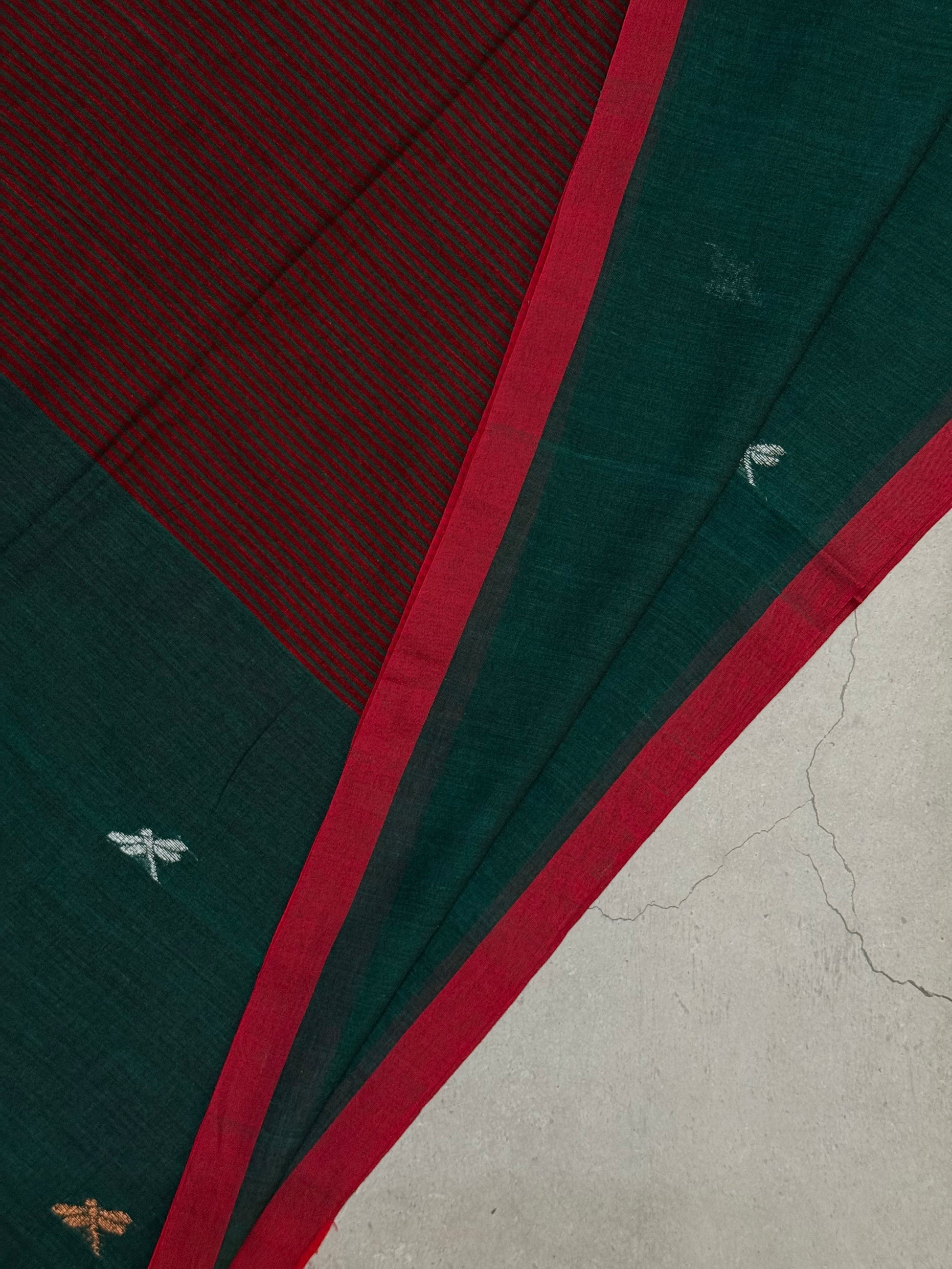 Uthaara | Green and Red Jamdani Bengal Cotton Saree