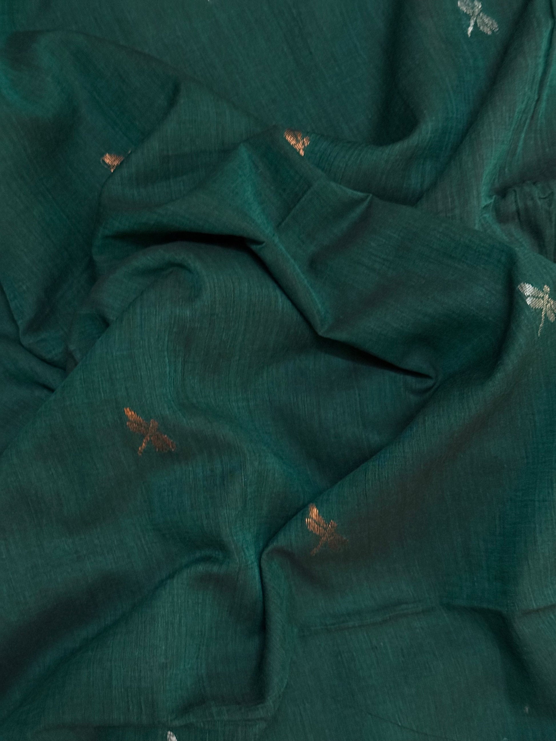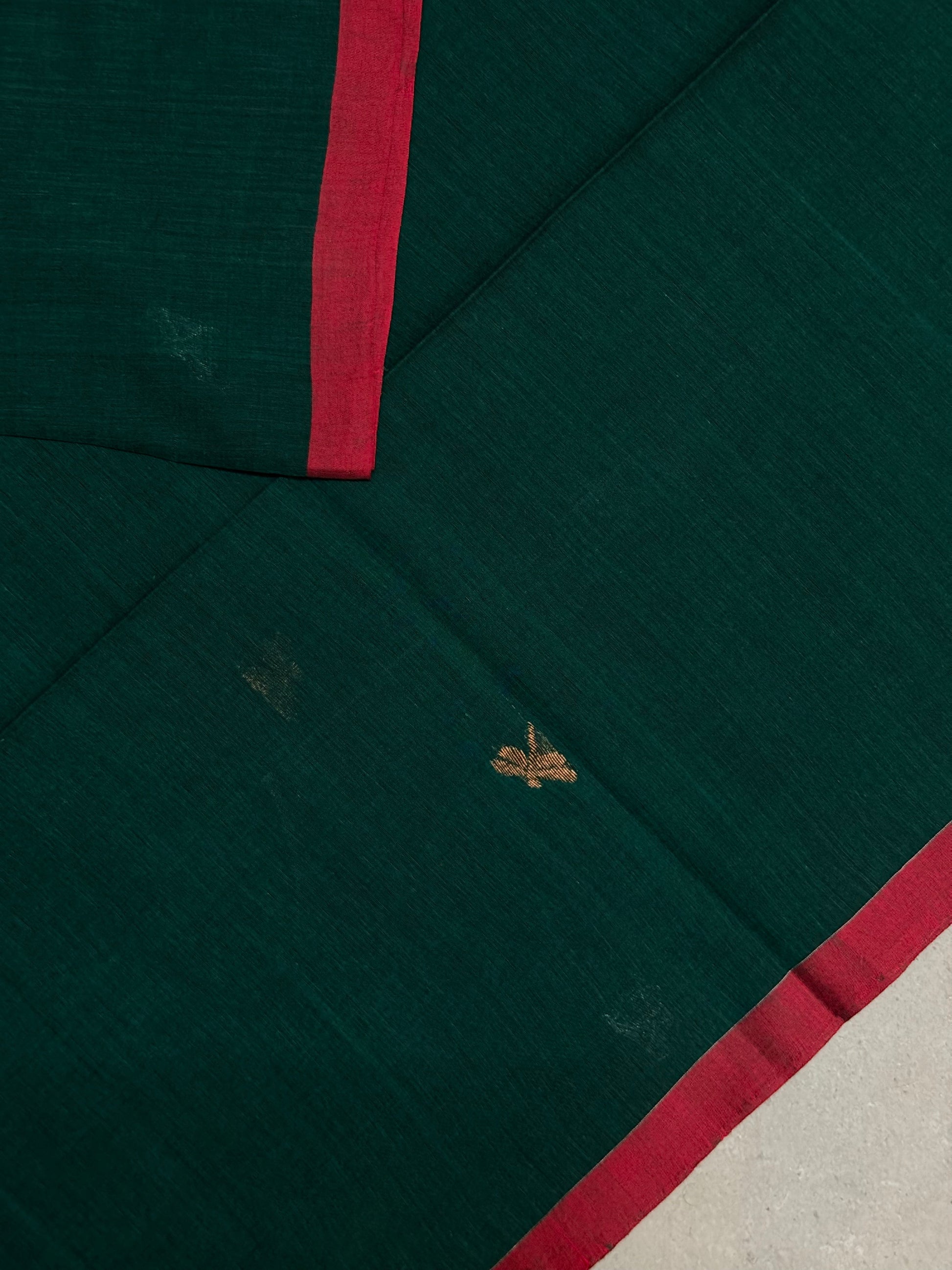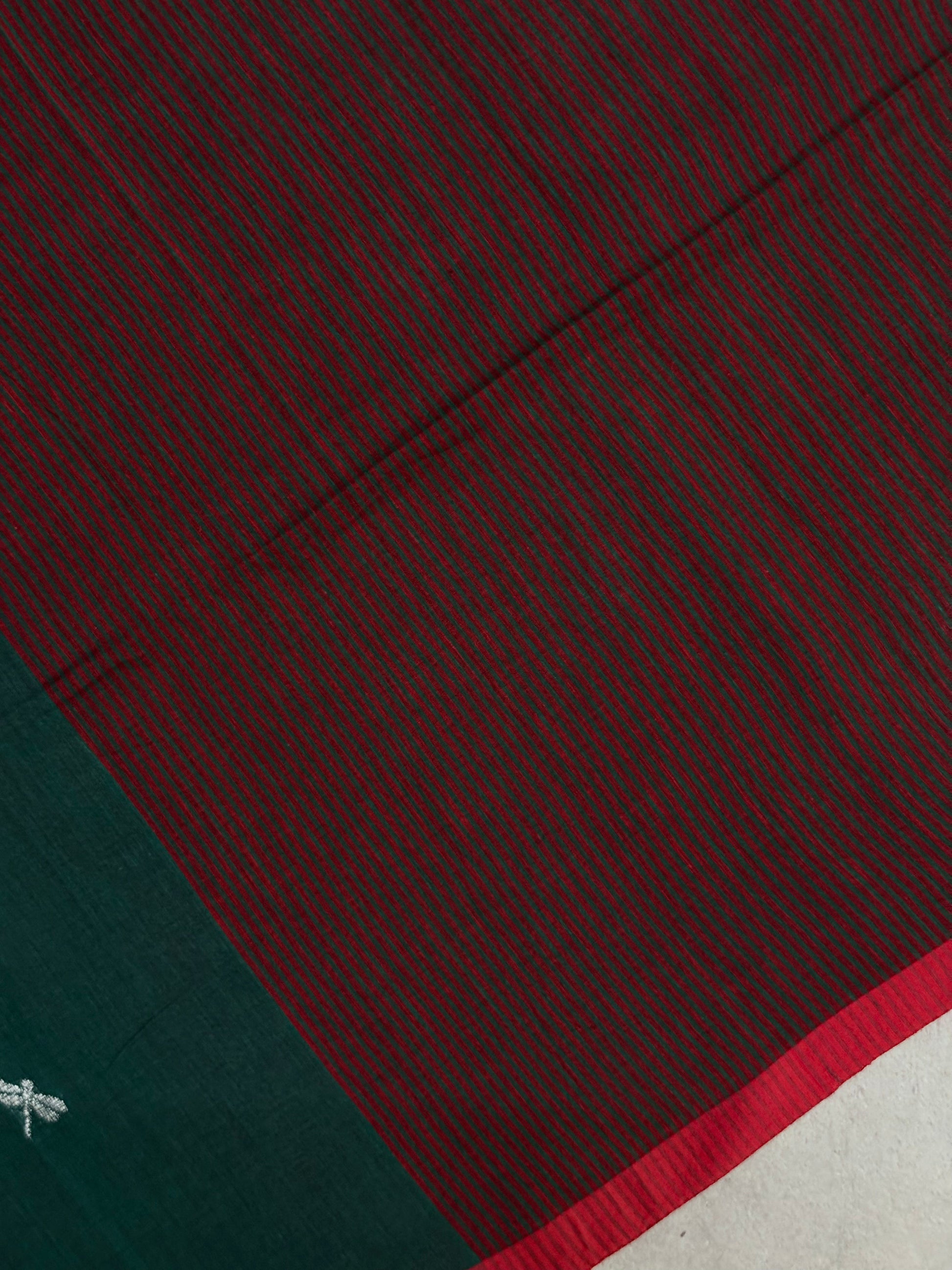 Uthaara | Green and Red Jamdani Bengal Cotton Saree