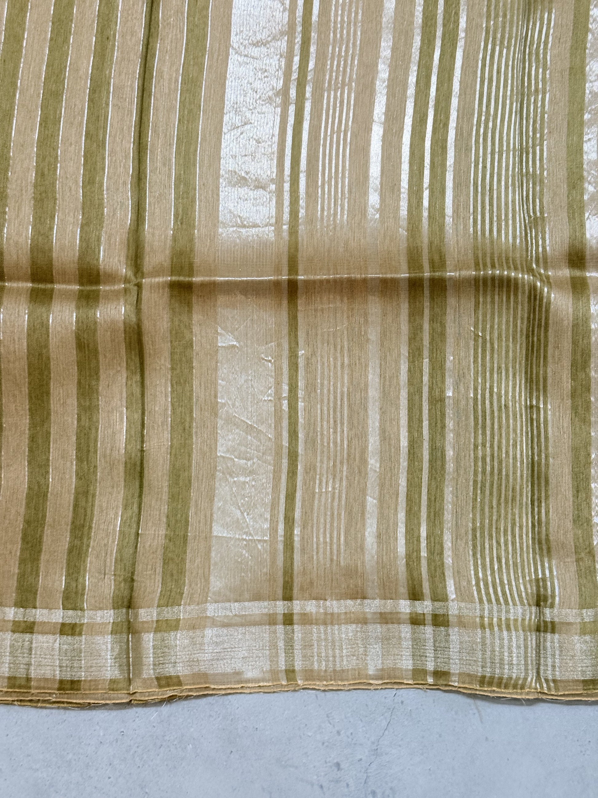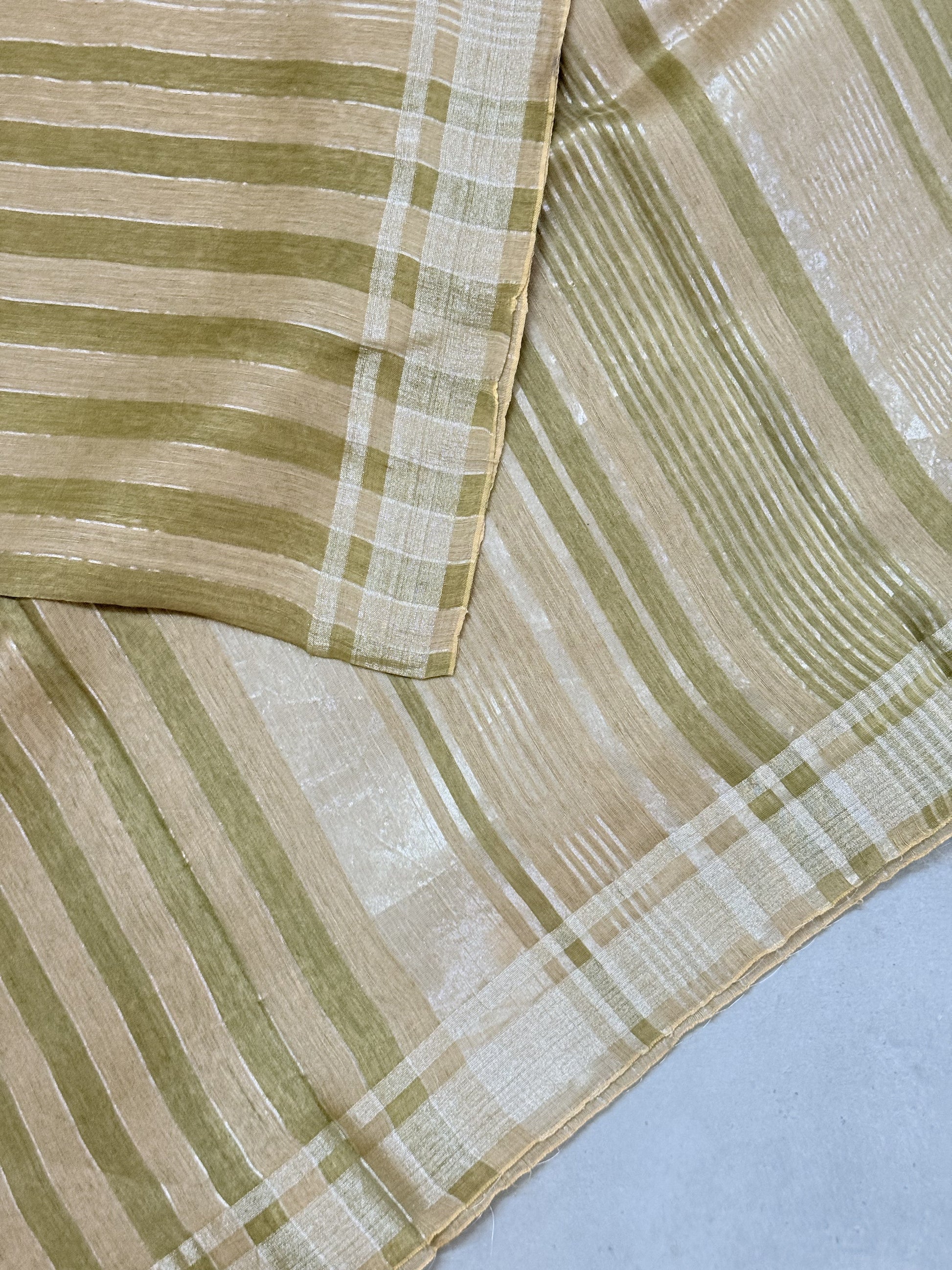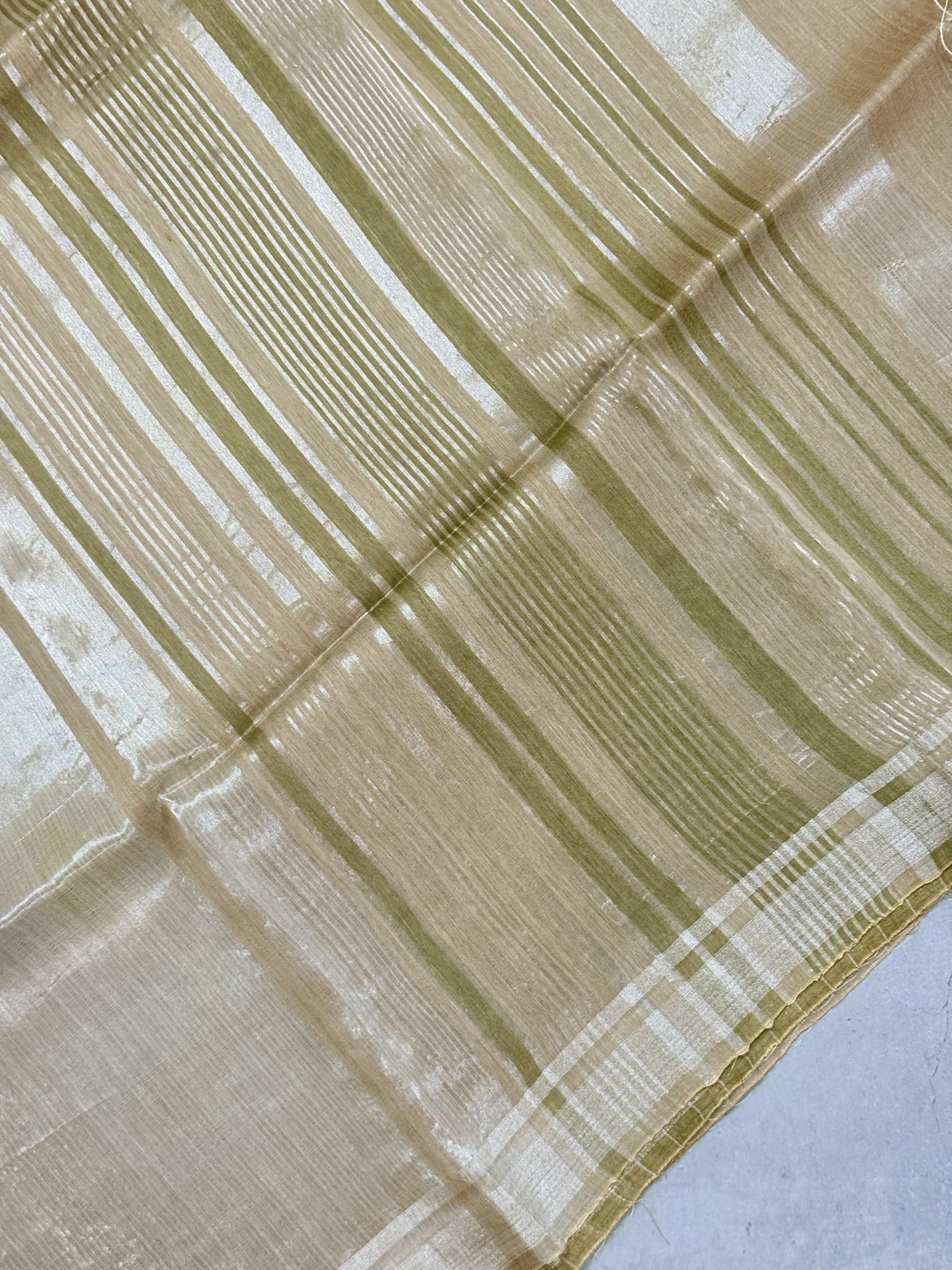 Vaarnika | Green Beige and Silver Pure Linen Silk Saree