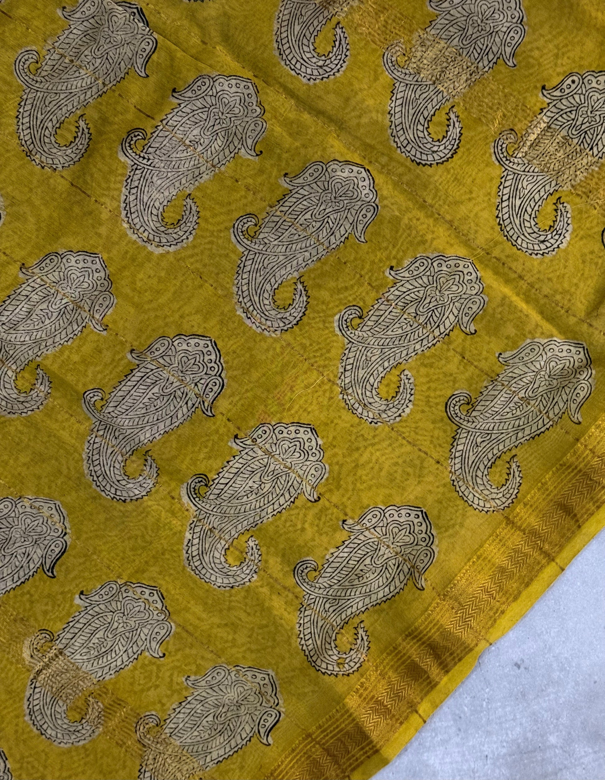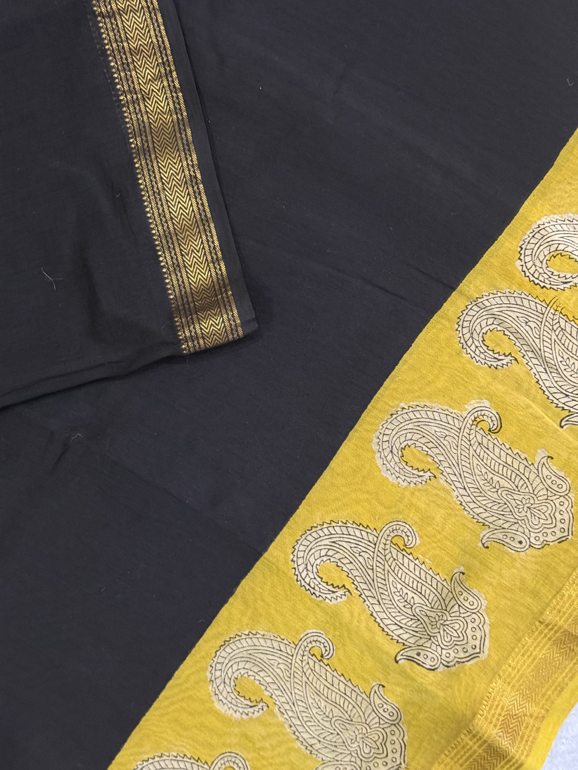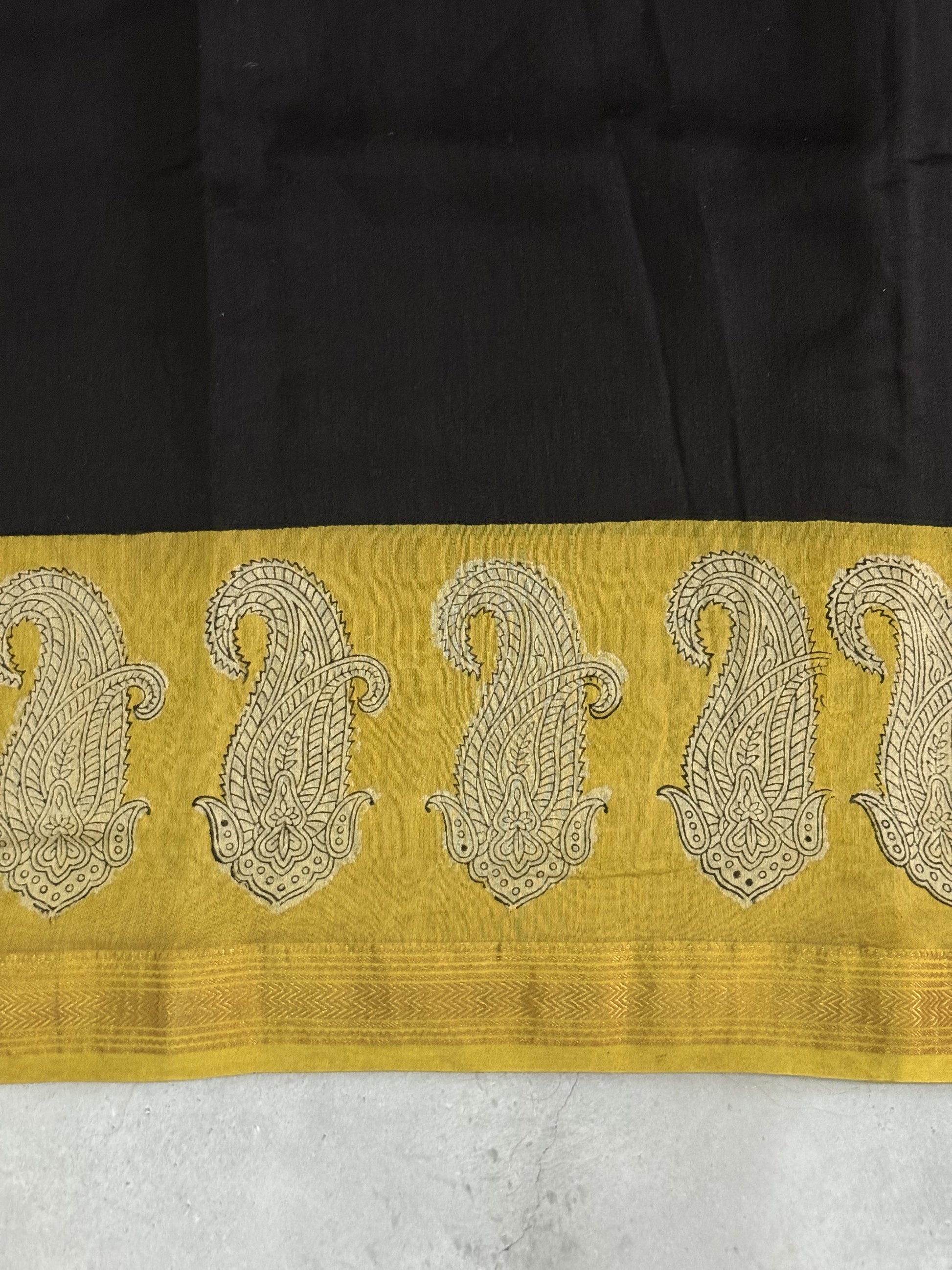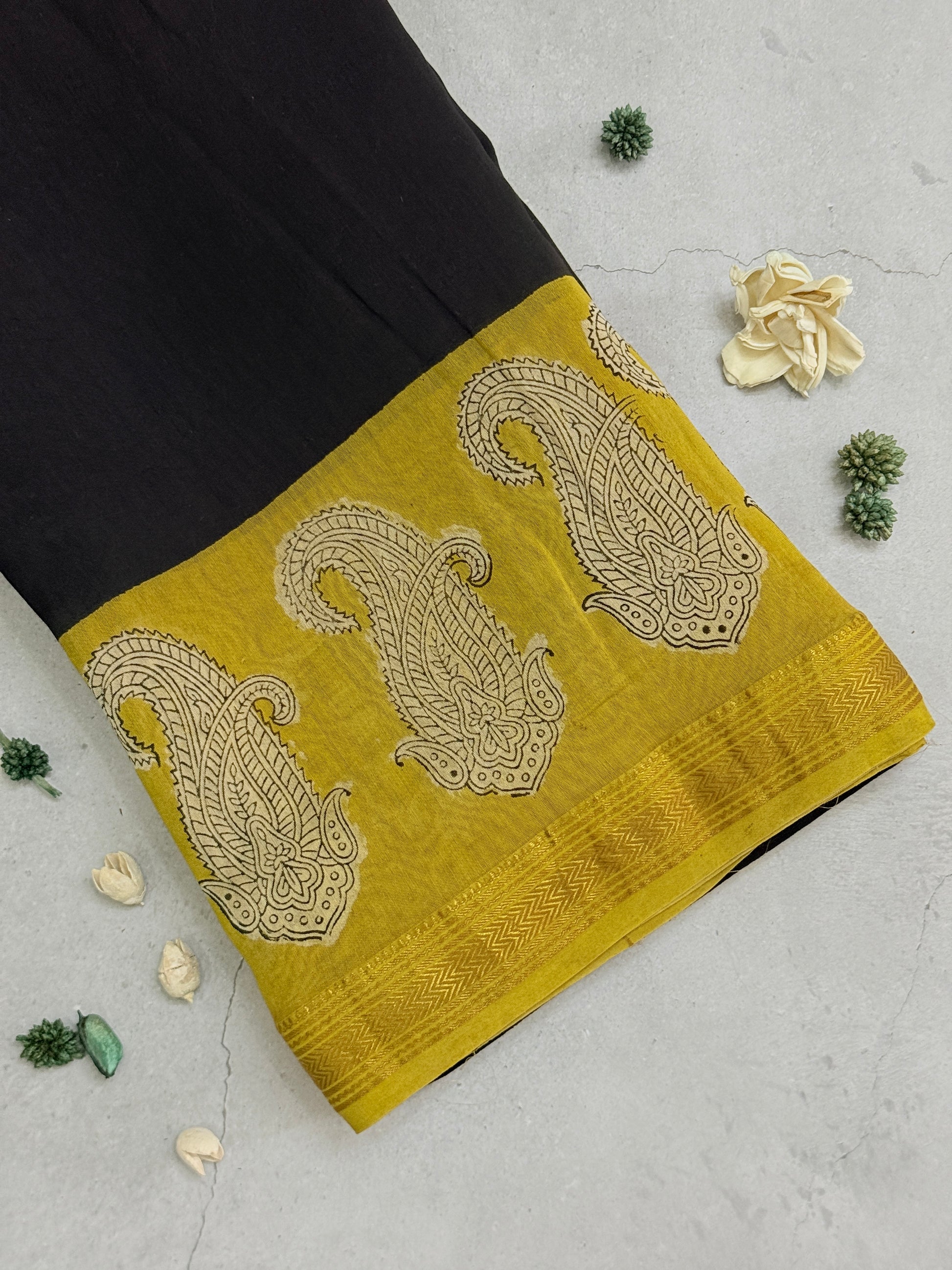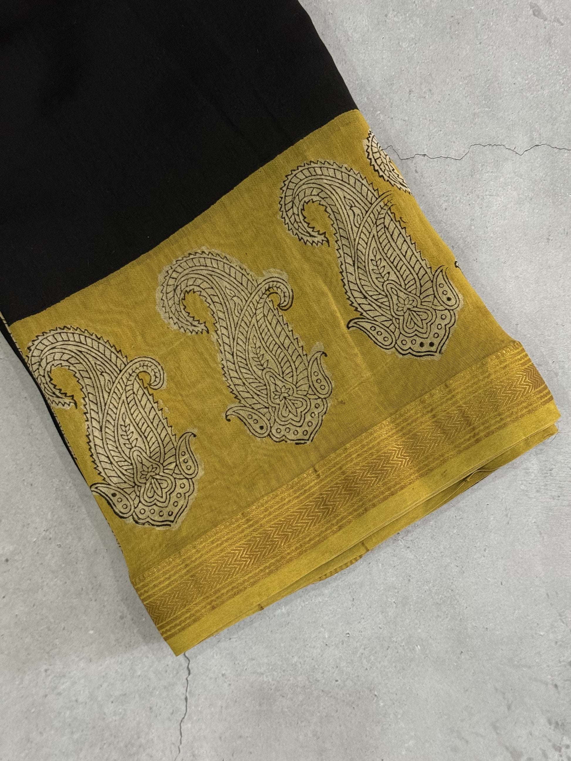 Vanshi | Black and Yellow Block Printed Maheshwari Saree