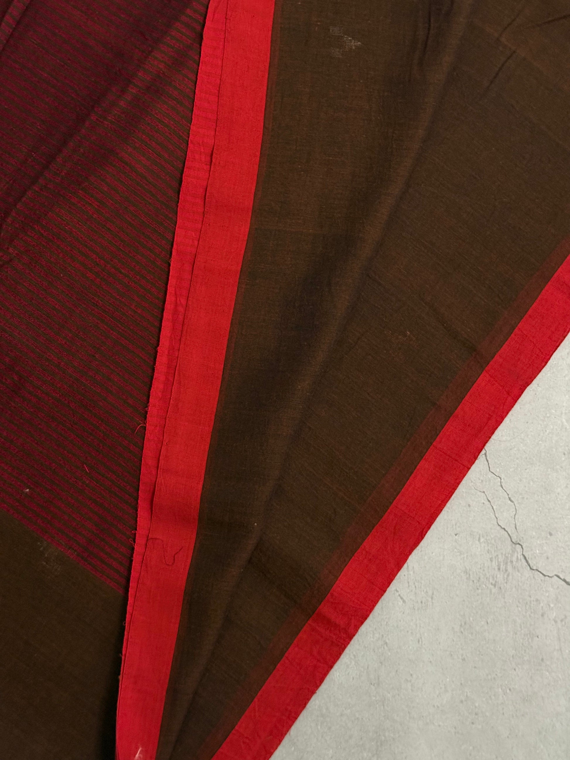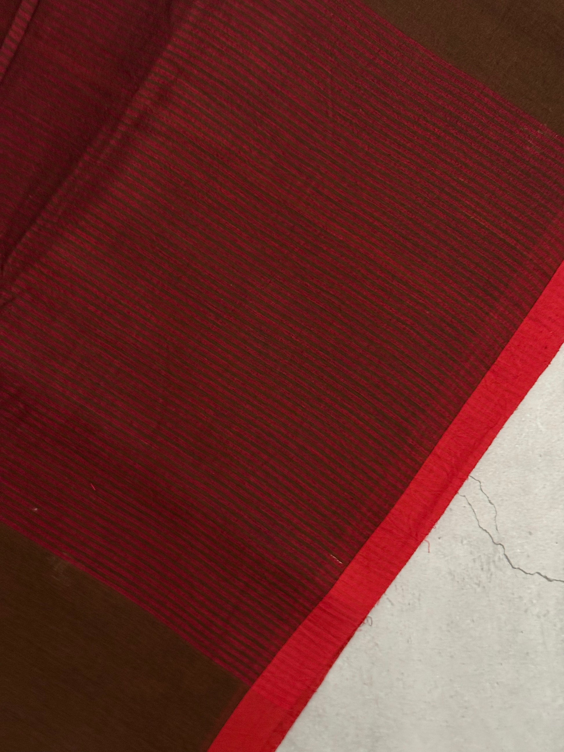 Vibha | Brown and Red Jamdani Bengal Cotton Saree