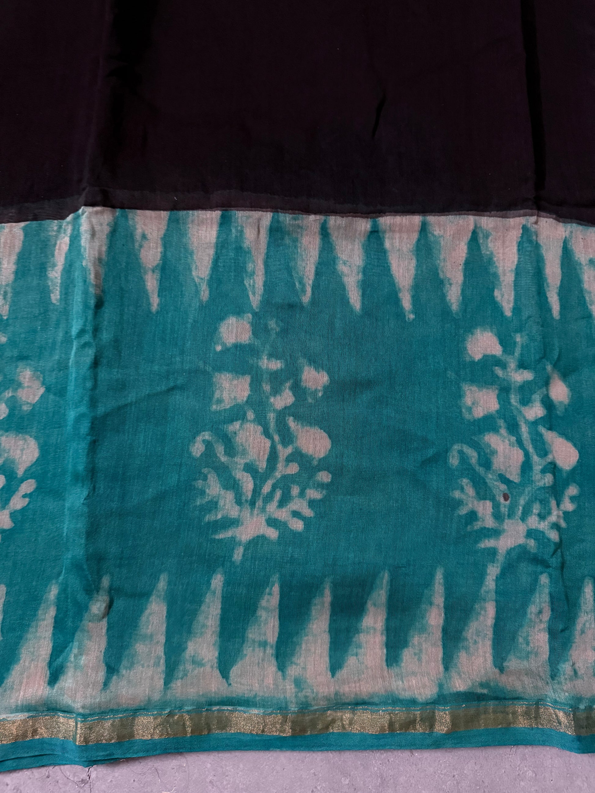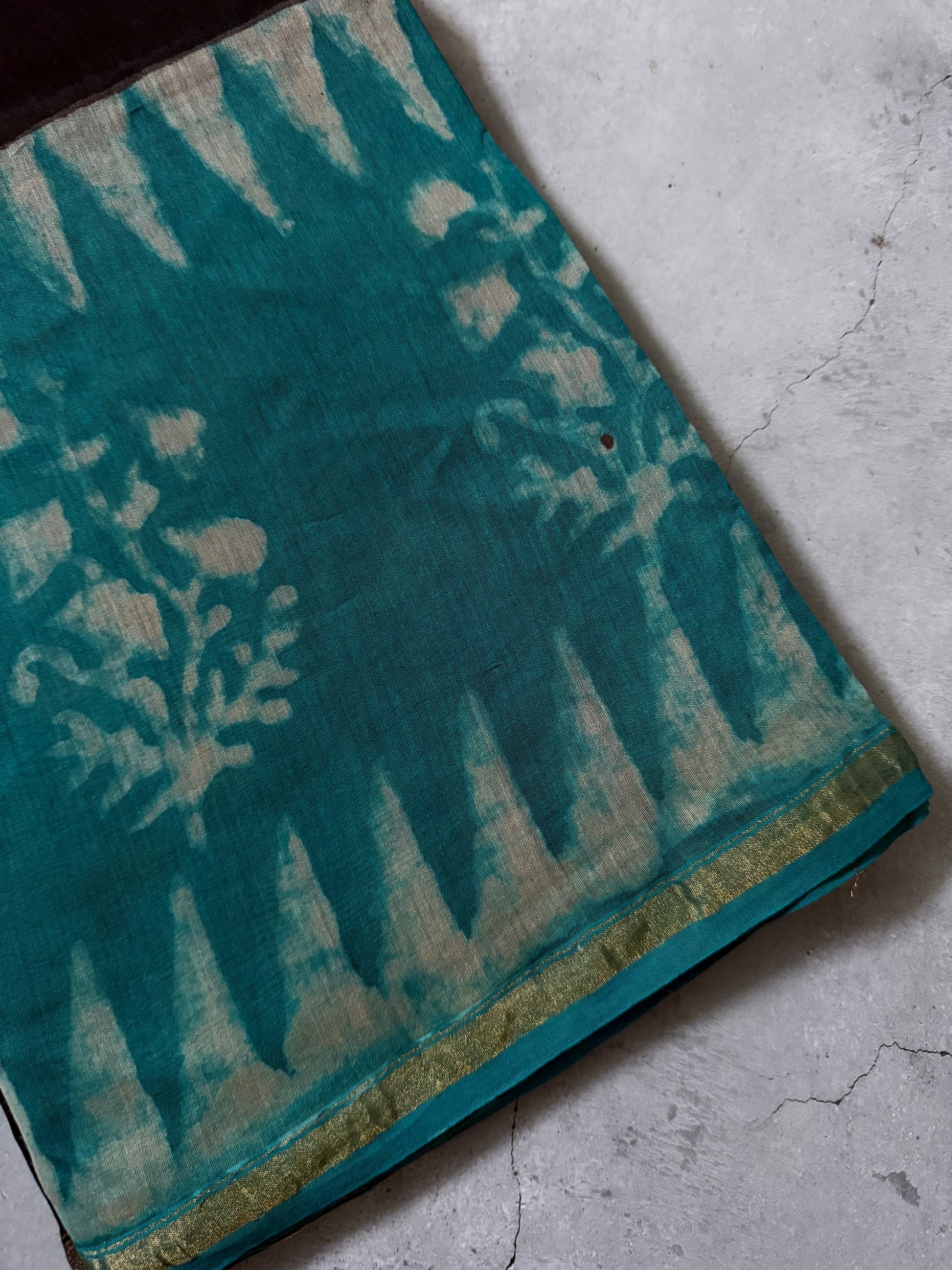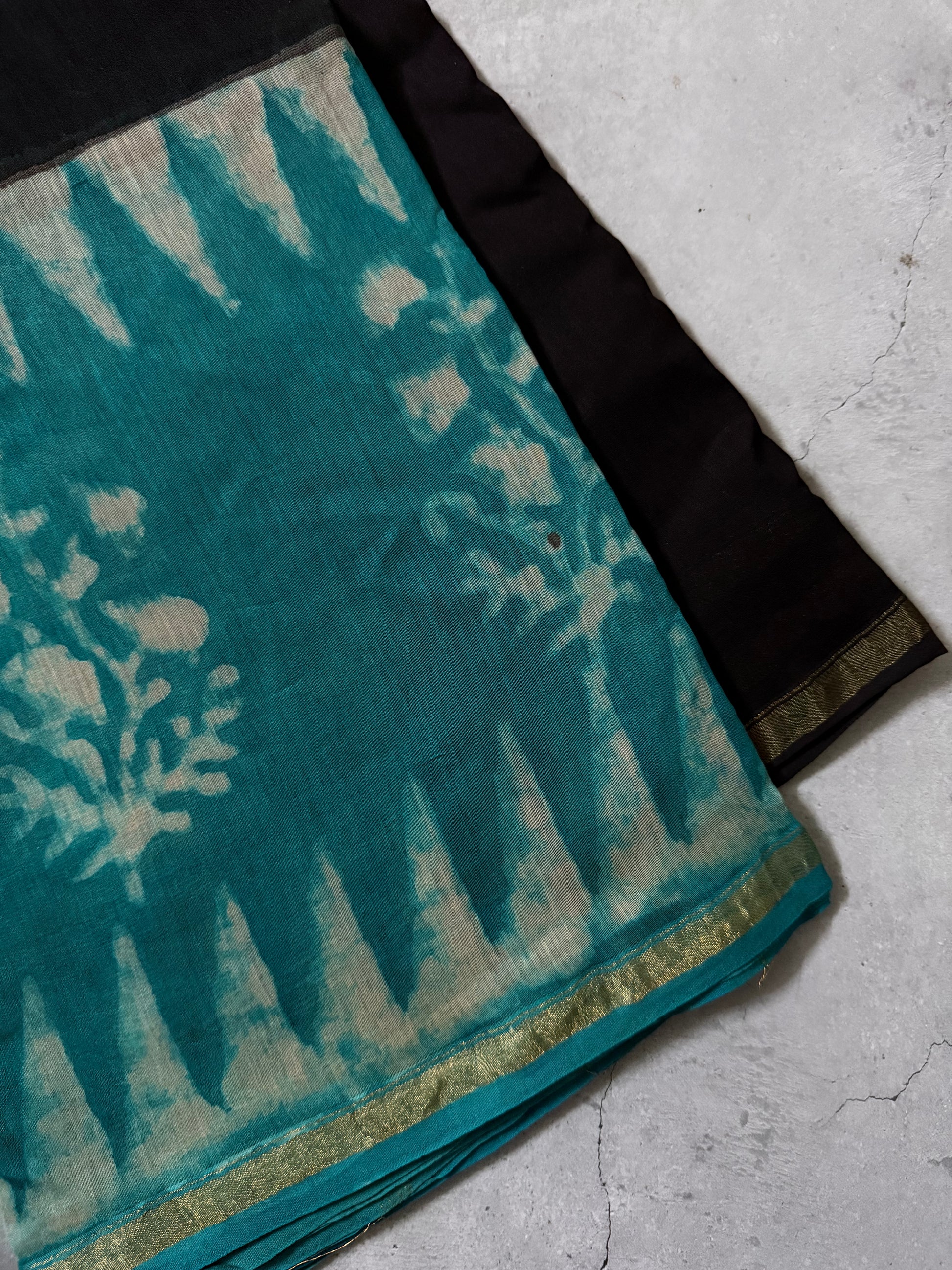 Vishaya | Black and Teal Block Printed Chanderi Saree
