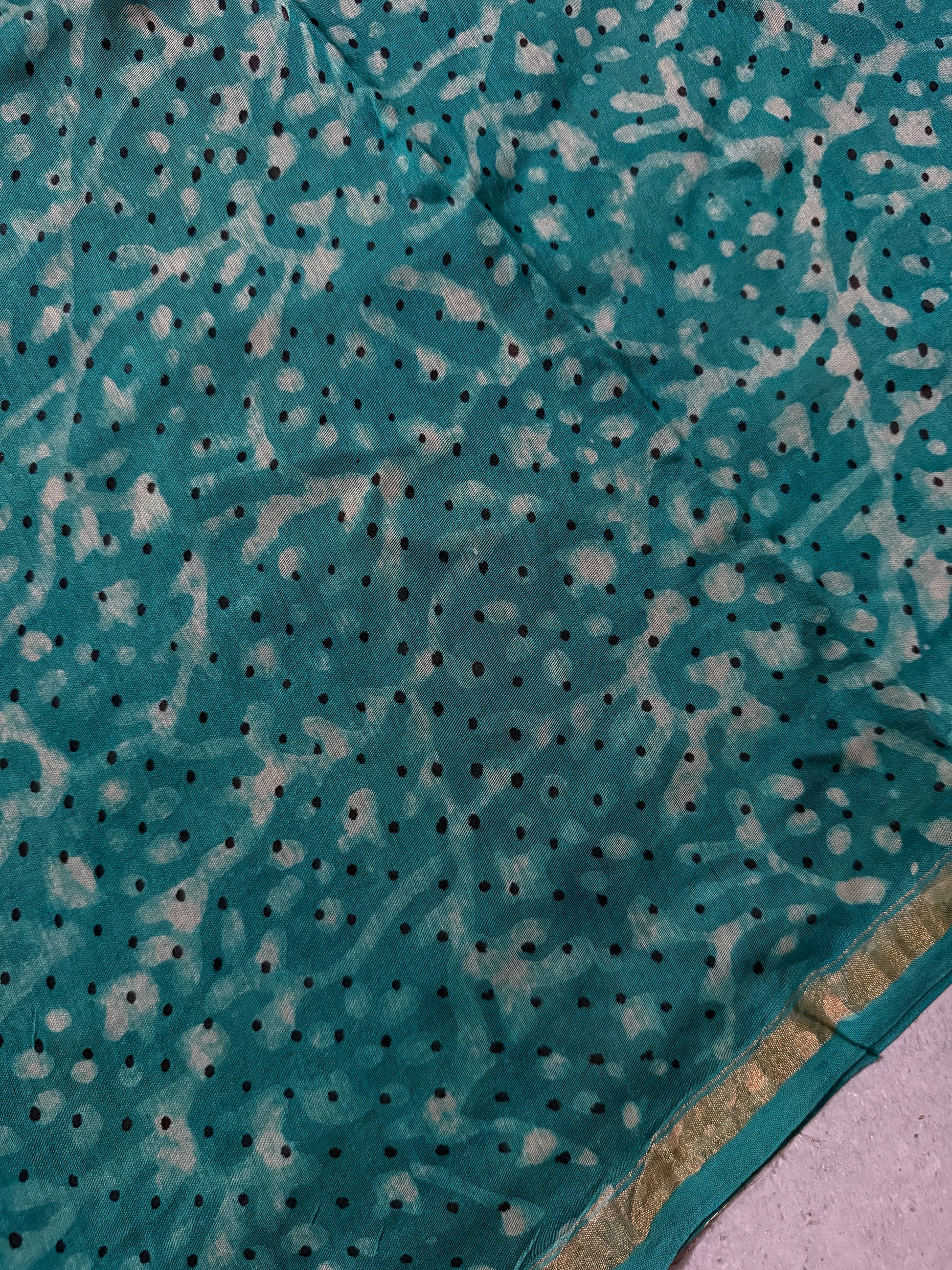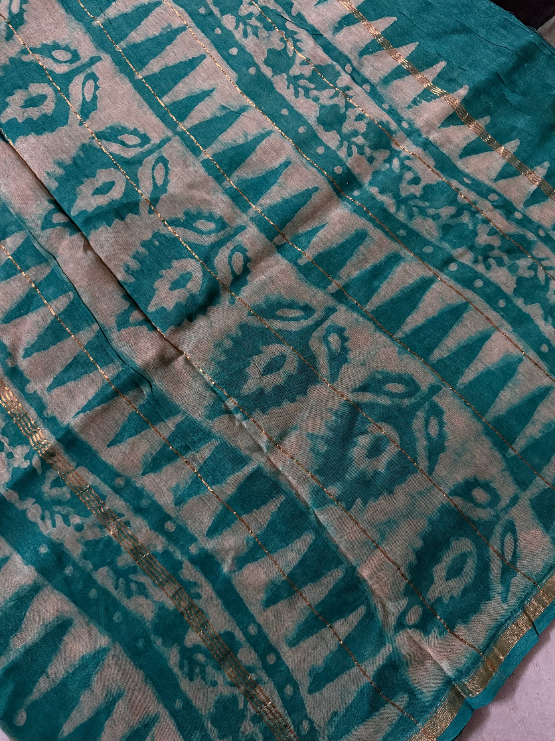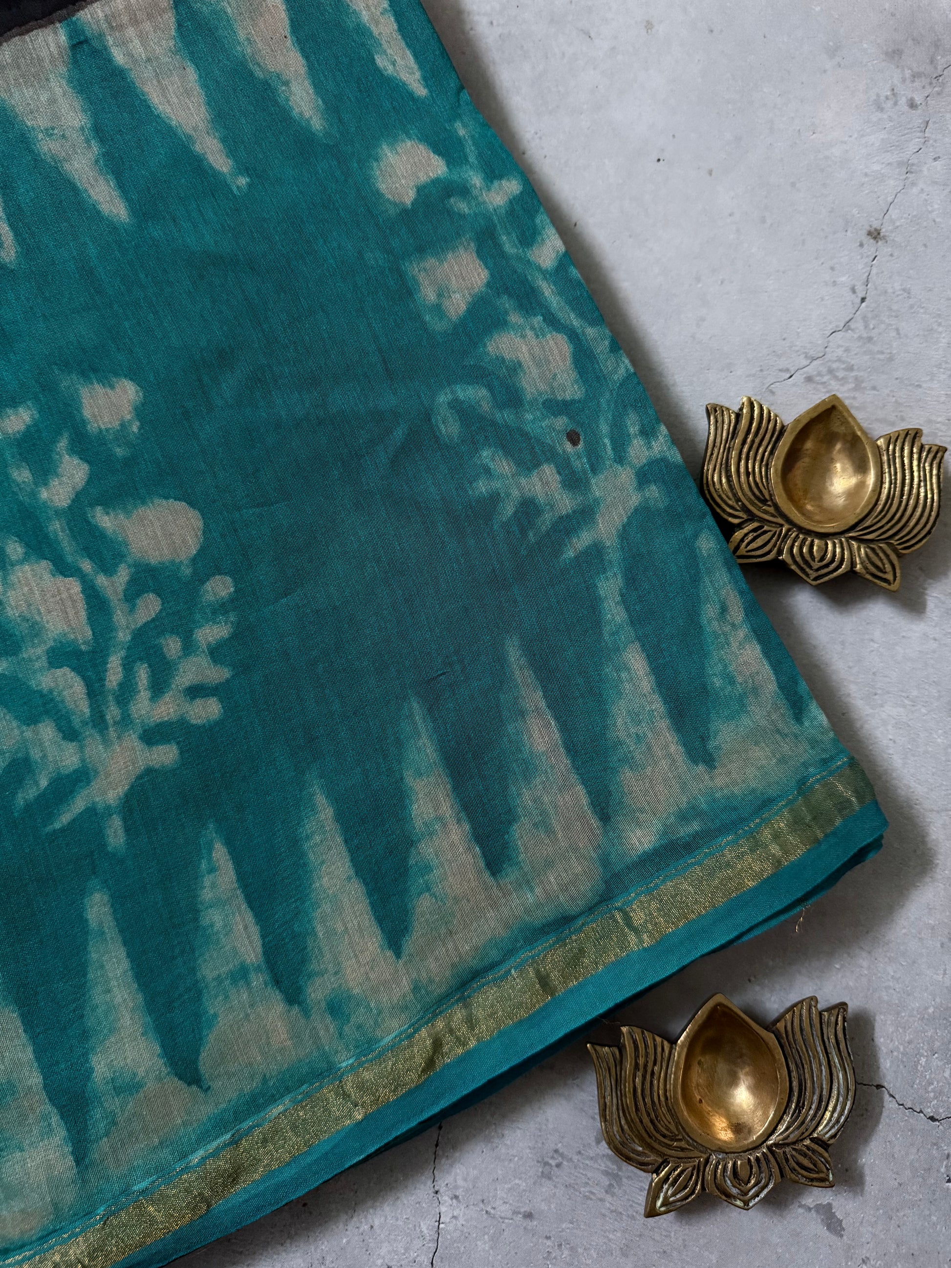 Vishaya | Black and Teal Block Printed Chanderi Saree
