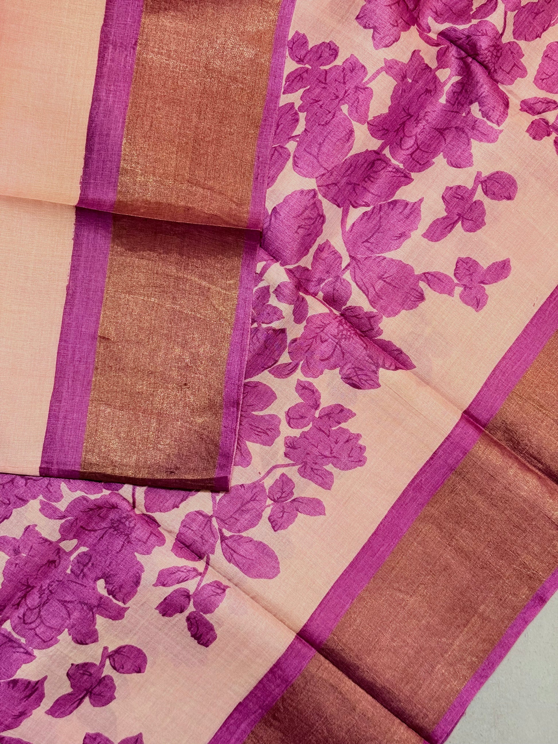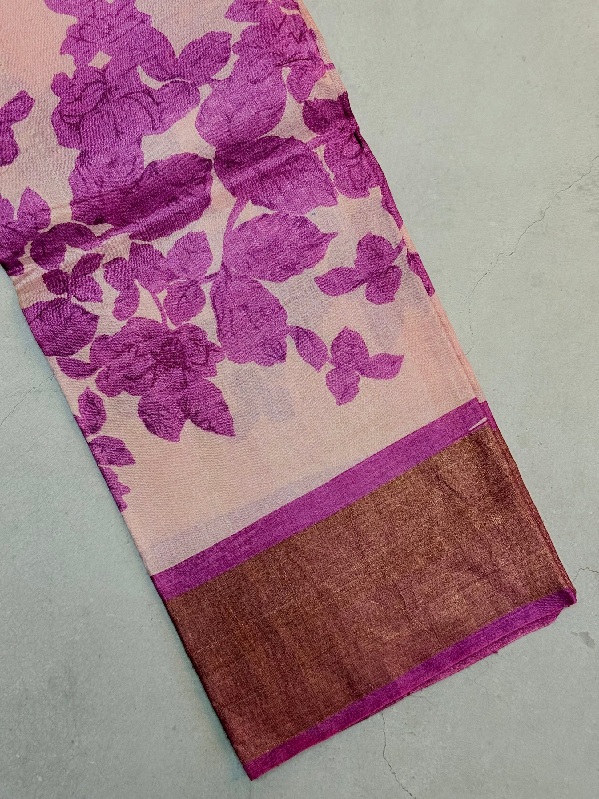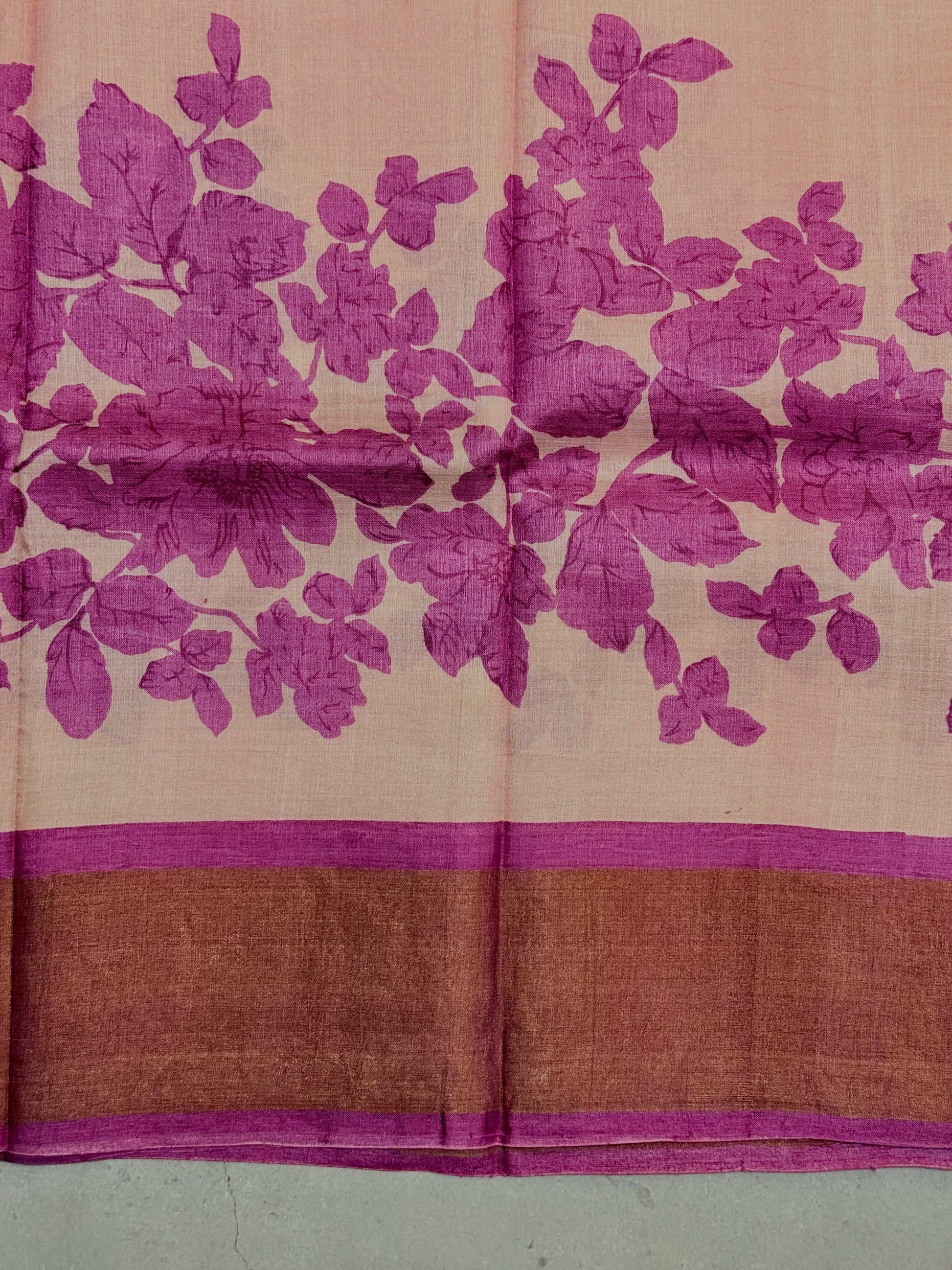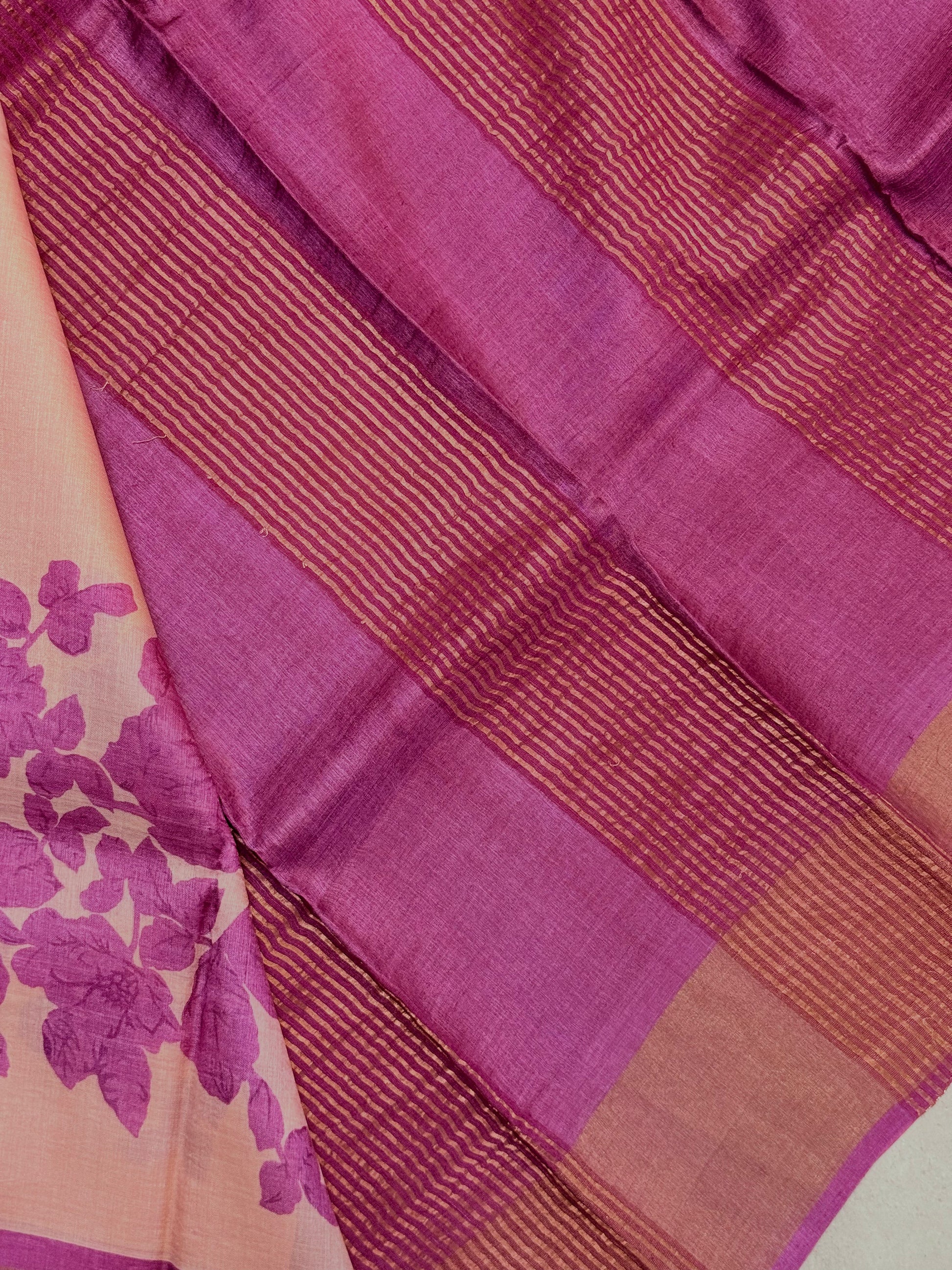 Yashna | Pink Floral Printed Tussar Silk Saree