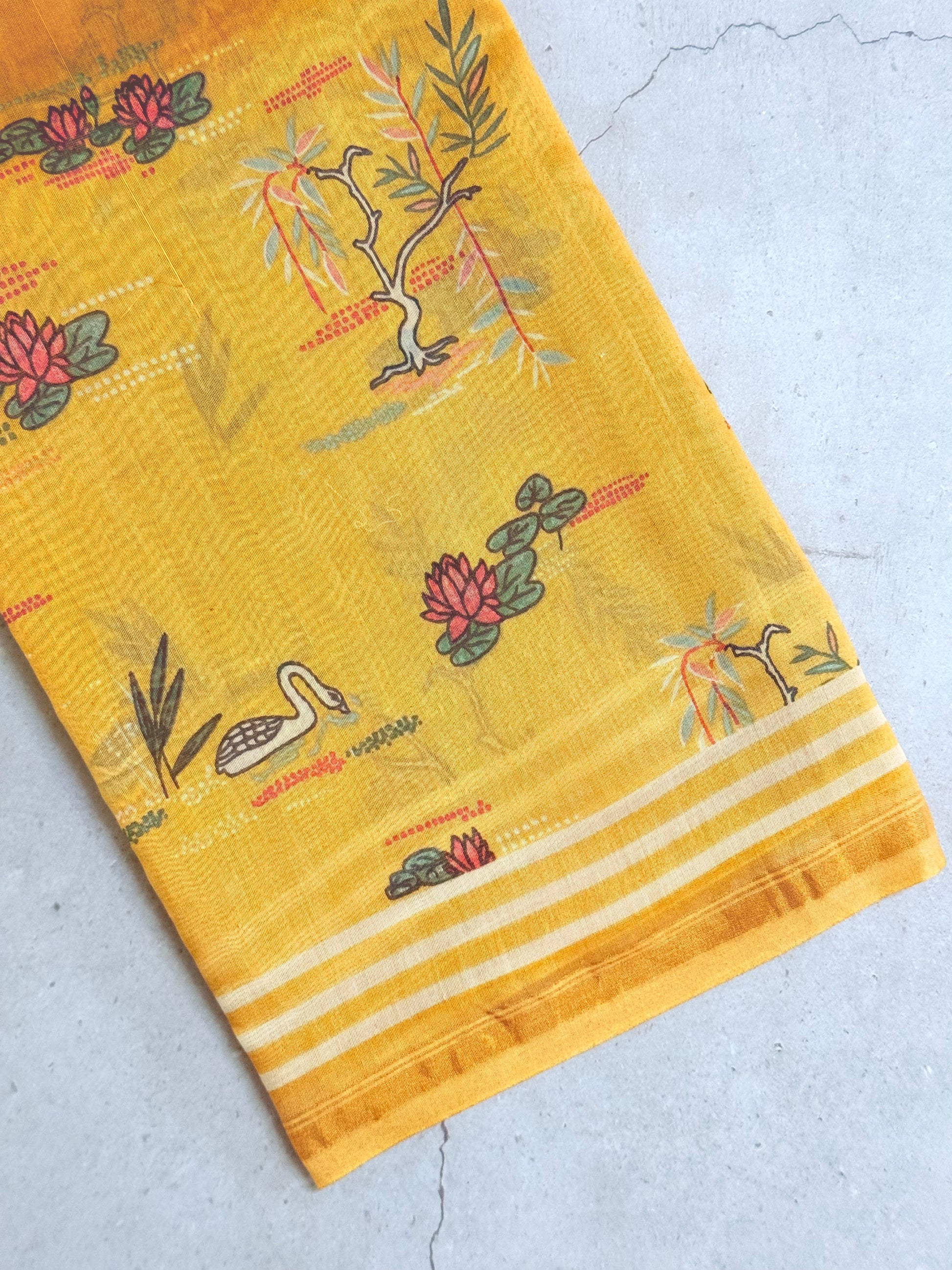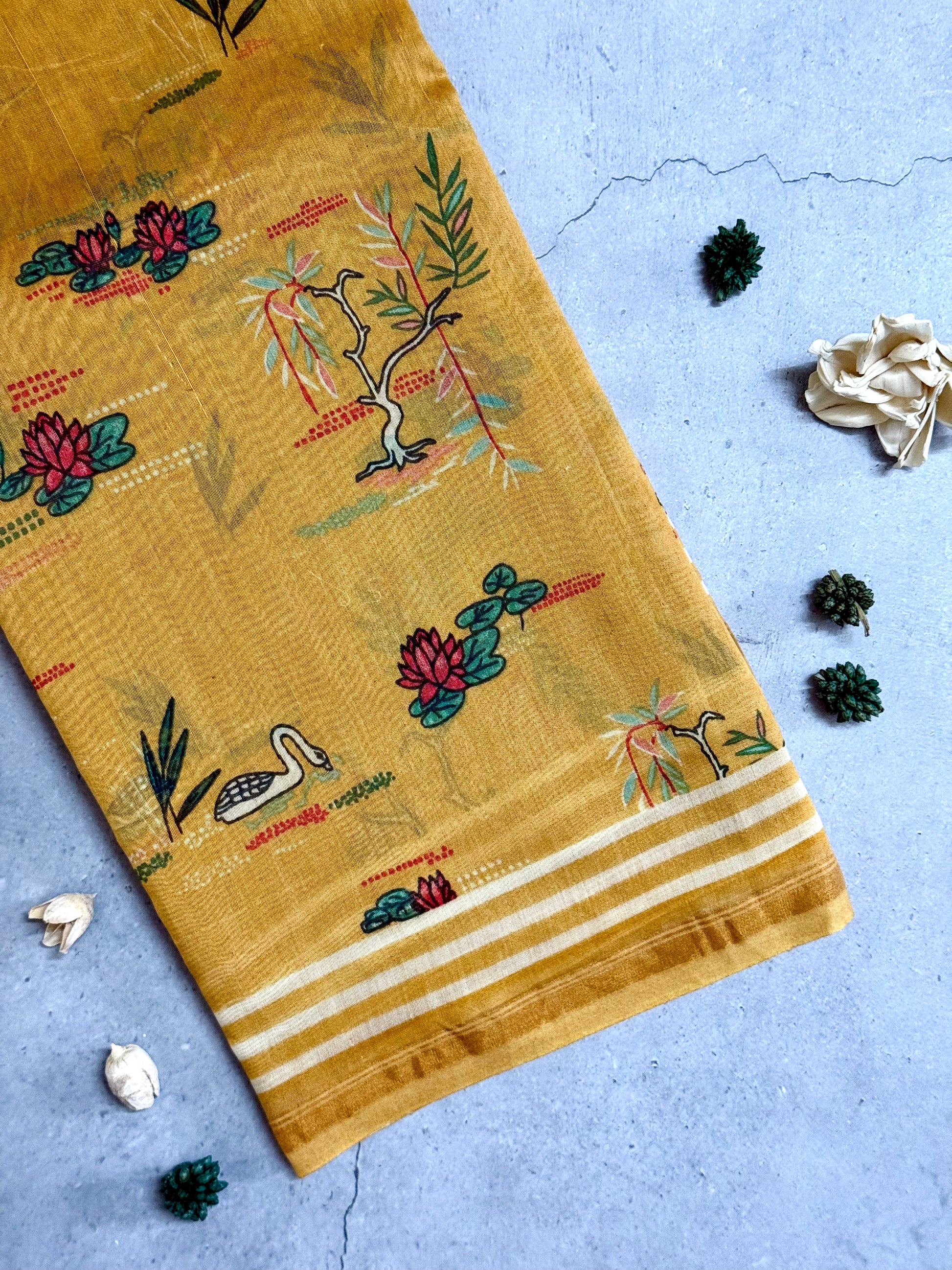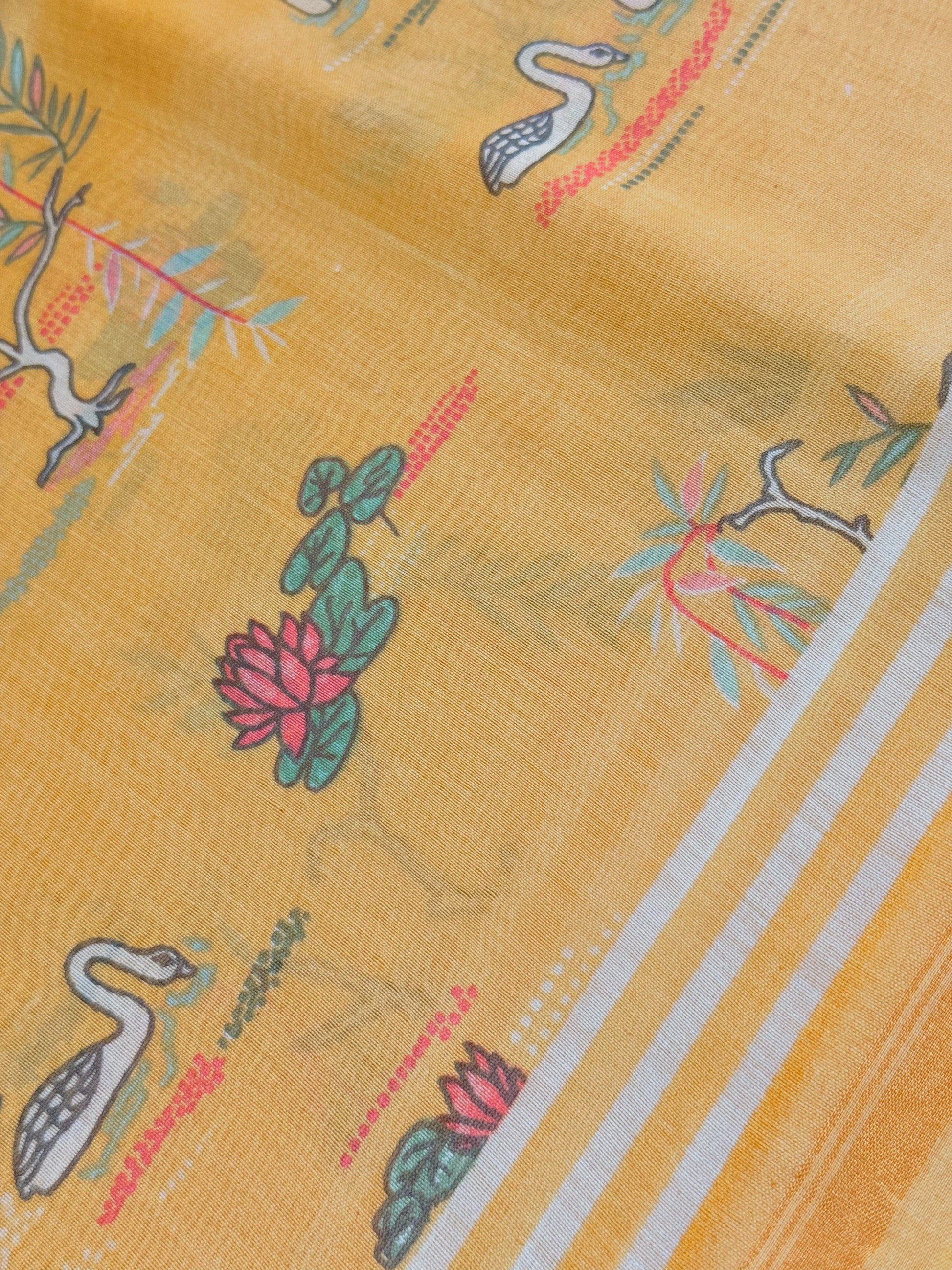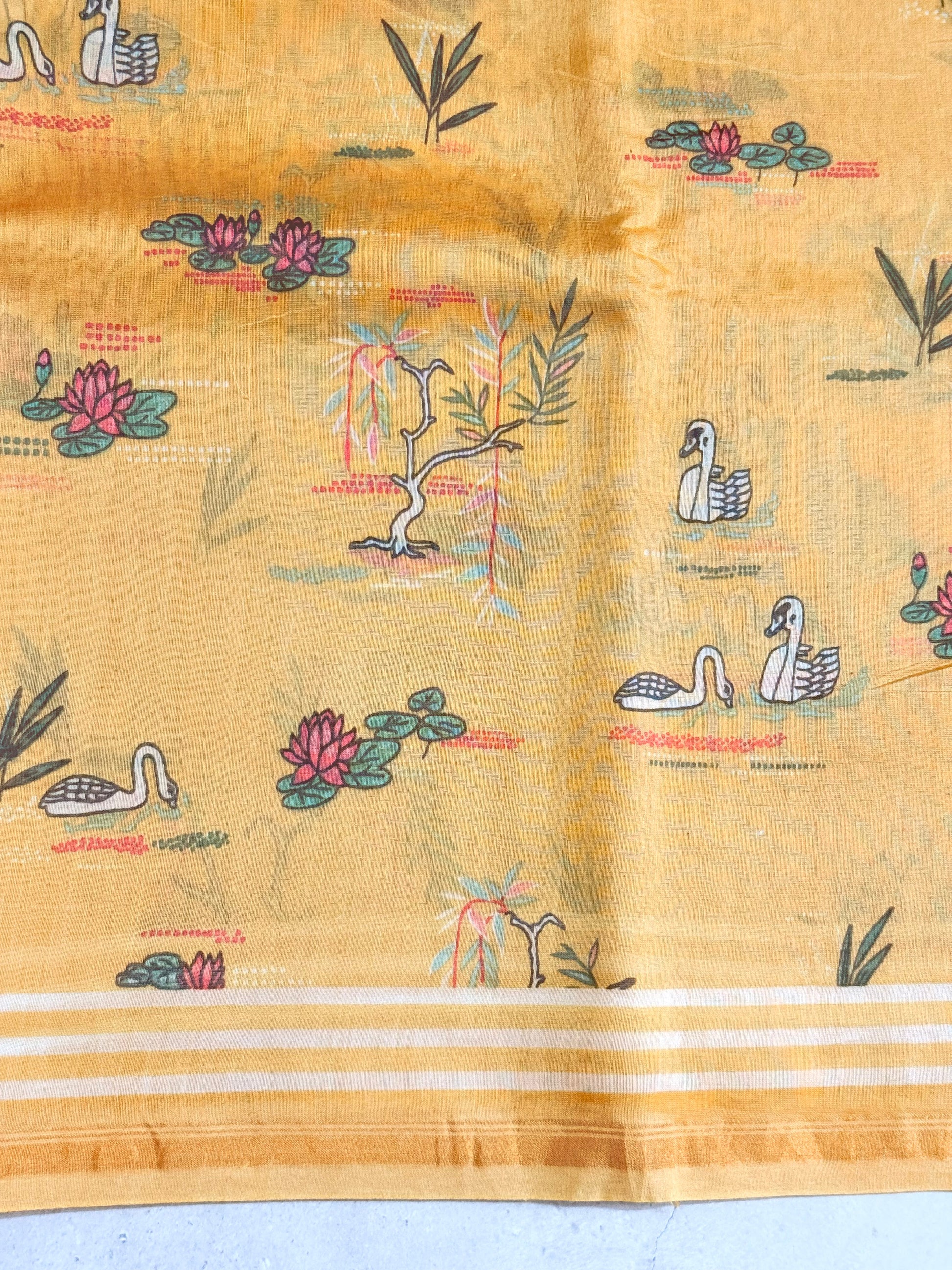 This Chanderi Butter Silk Saree combines the luxurious feel of butter-soft silk with the elegance of traditional Chanderi fabric. Featuring vibrant digital prints, the saree adds a modern twist to its classic appeal. The lightweight, airy texture and rich sheen make it perfect for both daytime and evening events, offering a seamless blend of contemporary design and timeless elegance.